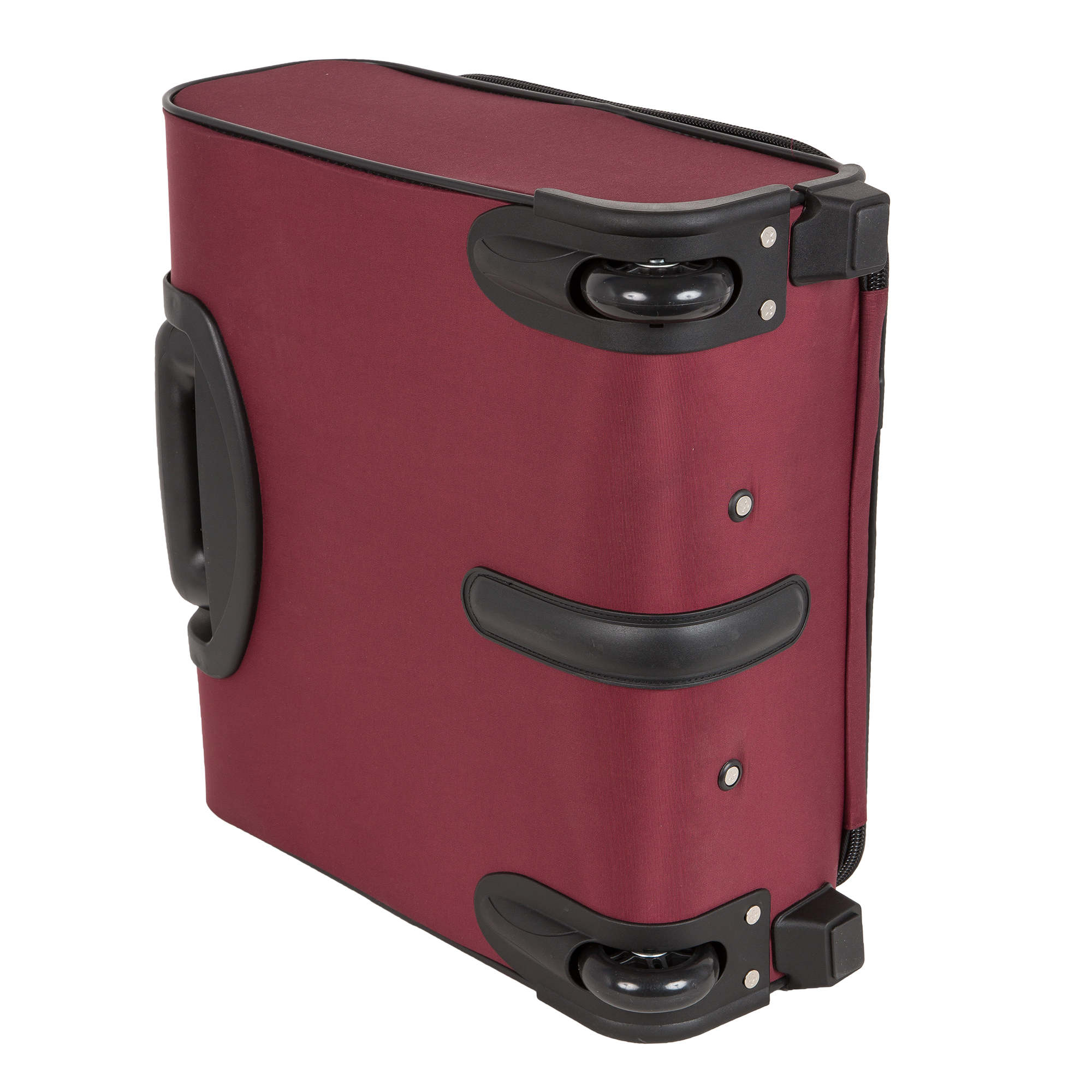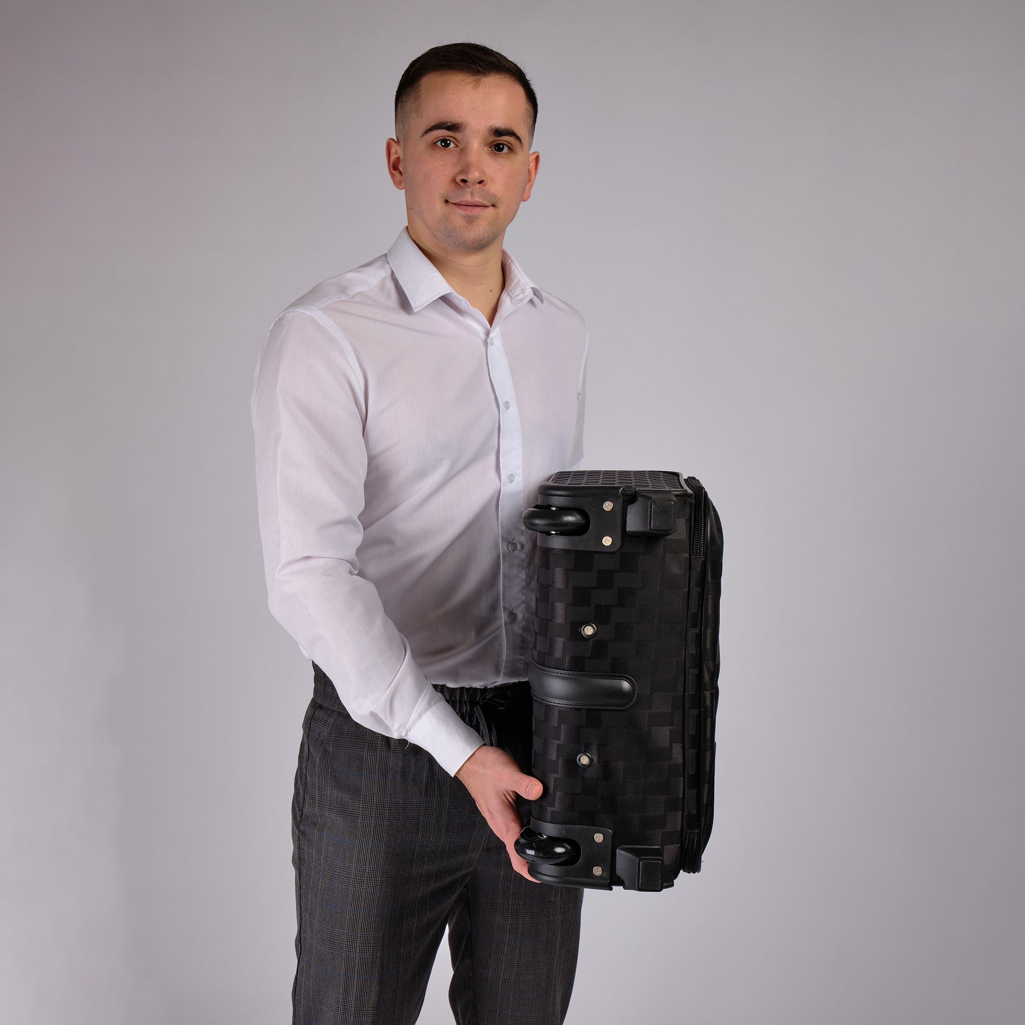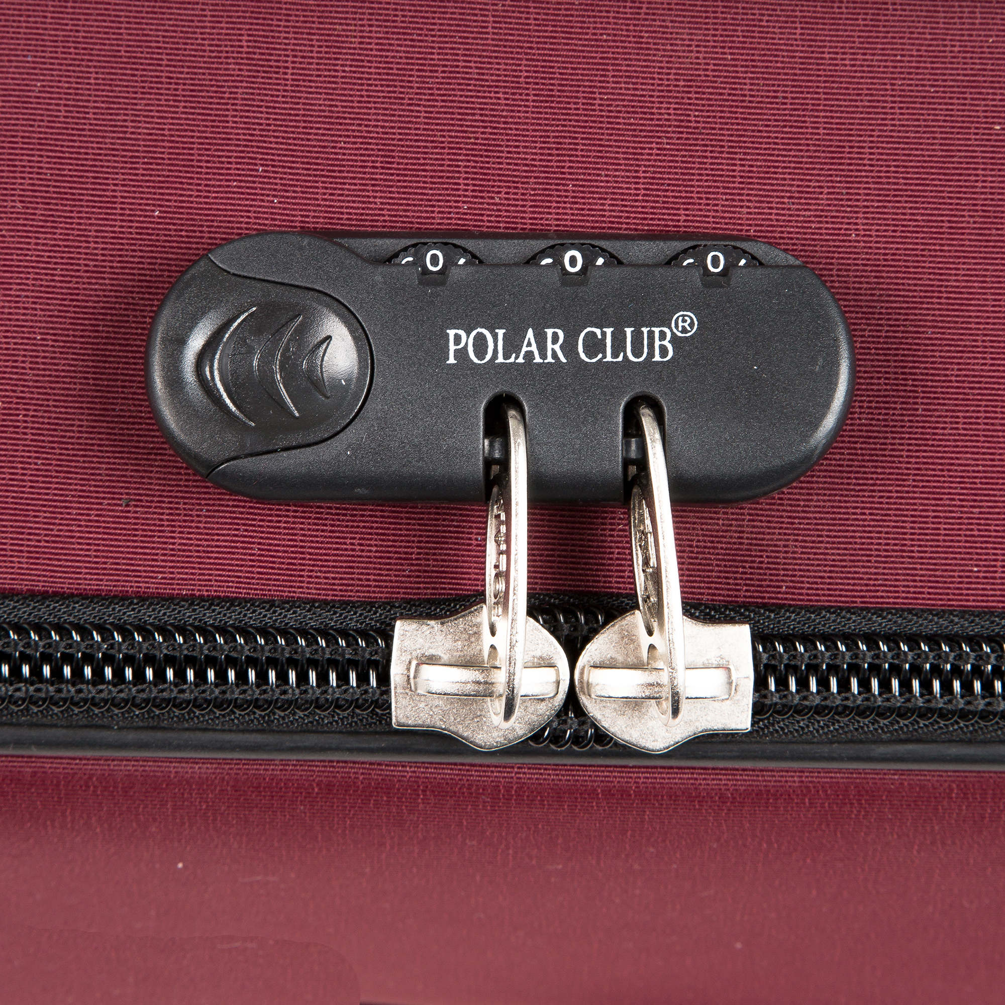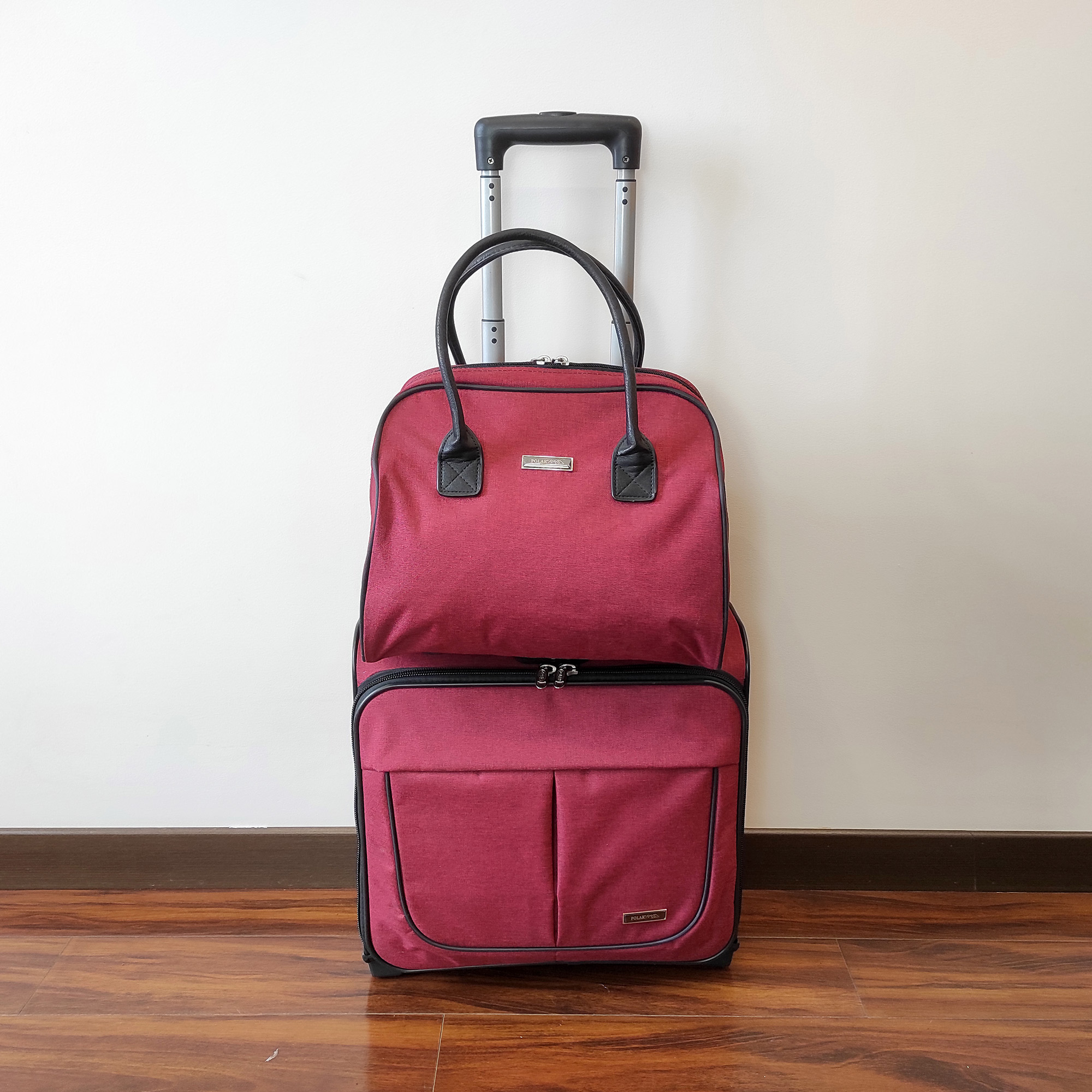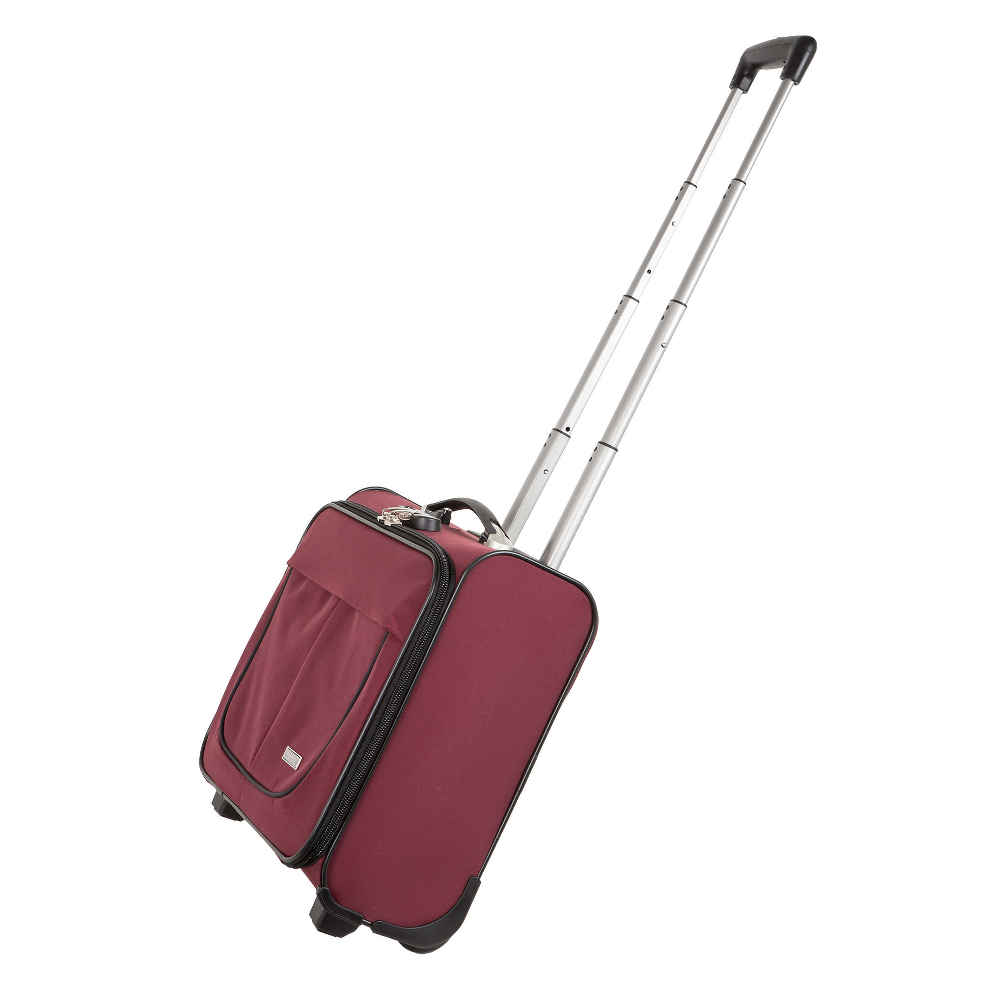 Чемодан от компании "Polar" на двух колёсах выполнен из прочного материала (нейлона и полиэстера). Подходит как ручная кладь. Чемодан закрывается на молнию, присутствует также встроенный кодовый замок.Внутри есть одно большое отделение , в котором присутствуют ремни для фиксации вещей, отделение для ноутбука и маленький карман на молнии для документов. Снаружи расположен объёмный карман на молнии для мелких вещей. У чемодана есть небольшая ручка для переноски и металлическая ручка, которая выдвигается на 67 см.