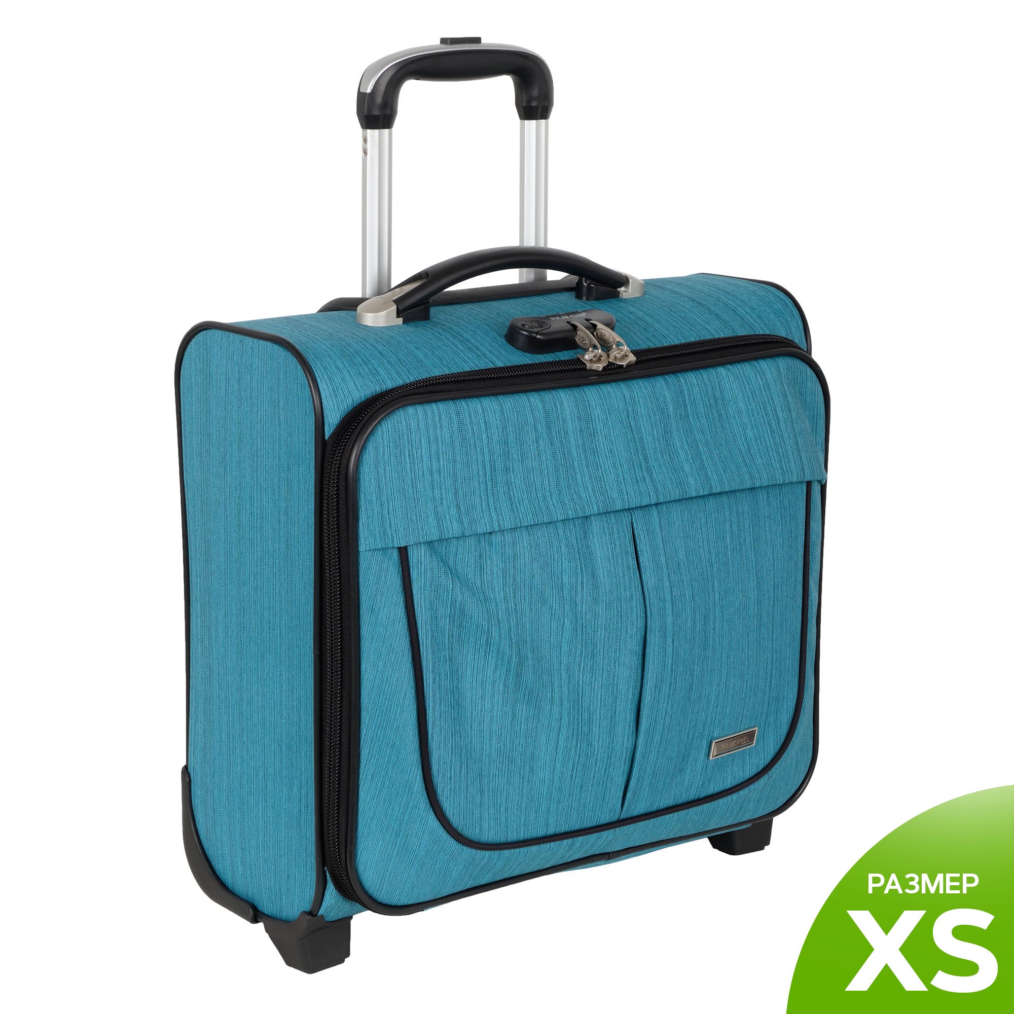 Чемодан от компании "Polar" на двух колёсах выполнен из прочного материала (нейлона и полиэстера). Подходит как ручная кладь. Чемодан закрывается на молнию, присутствует также встроенный кодовый замок.Внутри есть одно большое отделение , в котором присутствуют ремни для фиксации вещей, отделение для ноутбука и маленький карман на молнии для документов. Снаружи расположен объёмный карман на молнии для мелких вещей. У чемодана есть небольшая ручка для переноски и металлическая ручка, которая выдвигается на 67 см.