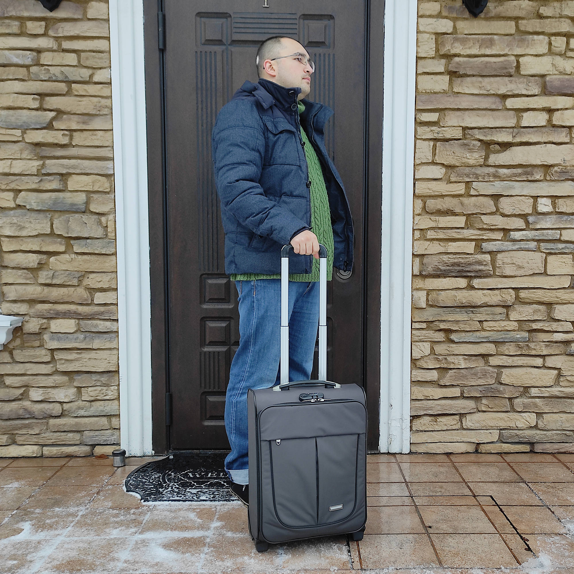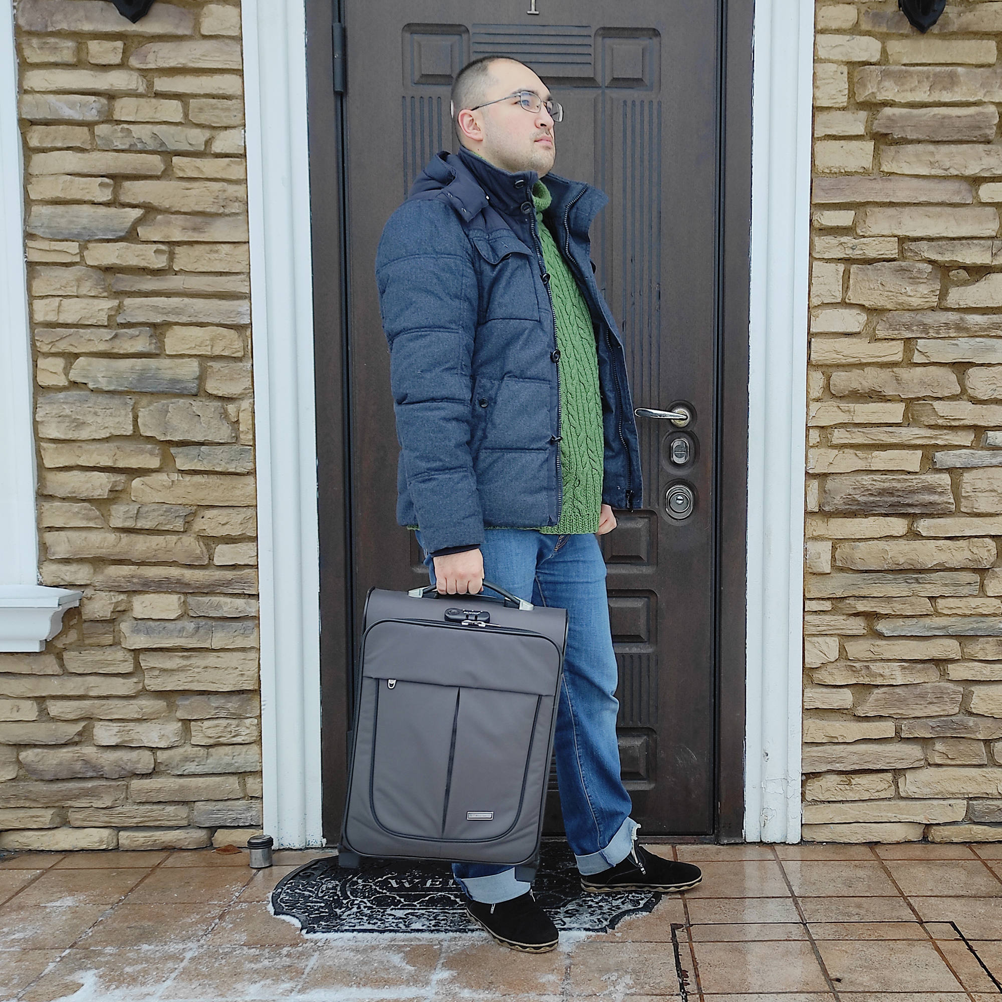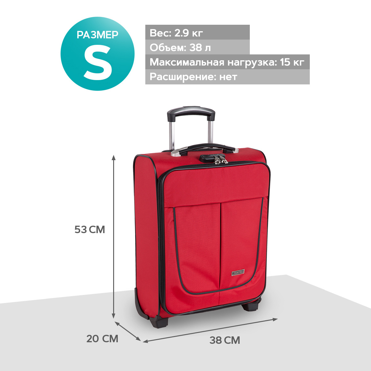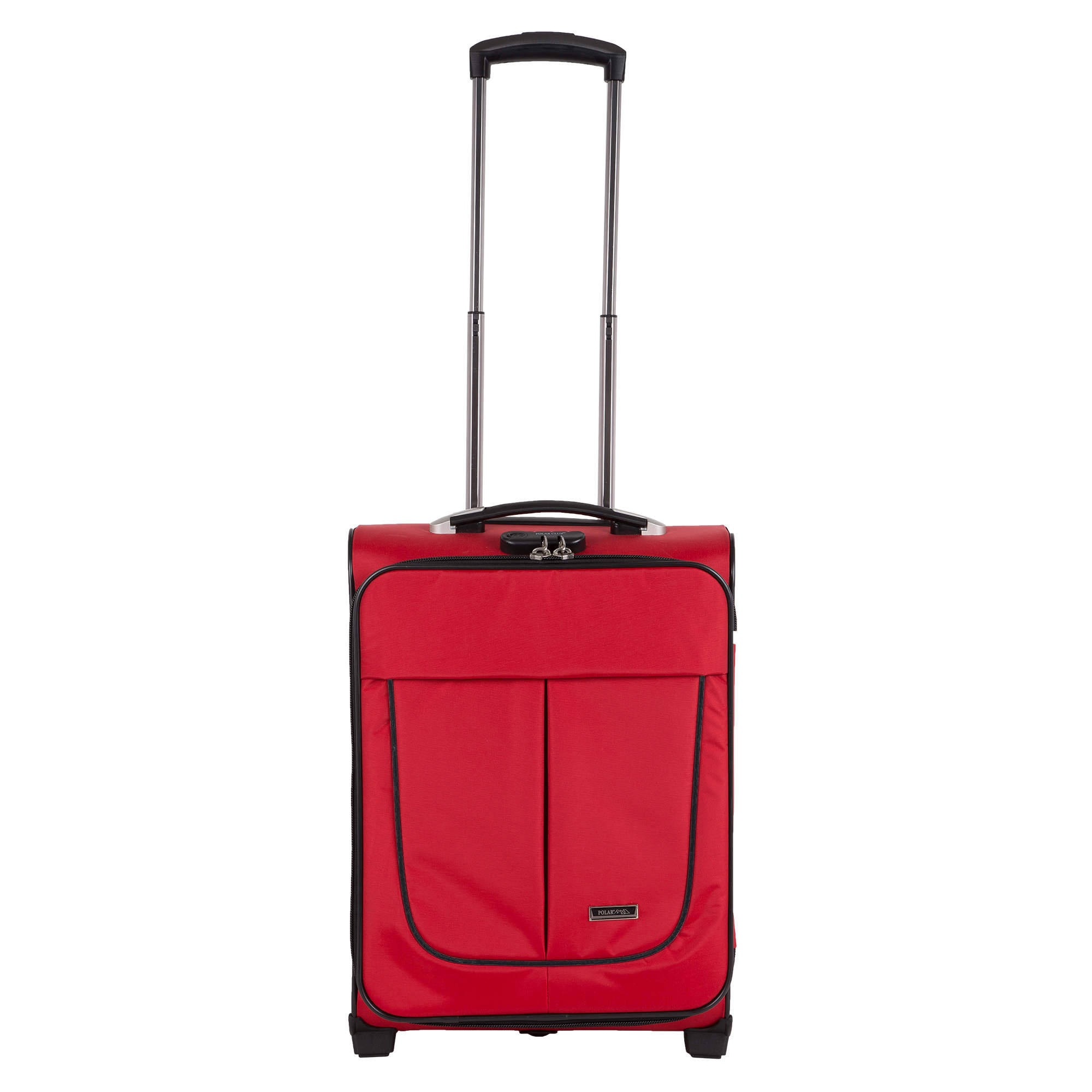 Чемодан от компании "Polar" на двух колёсах выполнен из прочного материала (нейлона и полиэстера). Чемодан закрывается на молнию, присутствует также встроенный кодовый замок.Внутри есть одно большое отделение , в котором присутствуют ремни для фиксации вещей, отделение для ноутбука и маленький карман на молнии для документов. Снаружи расположен объёмный карман на молнии для мелких вещей. У чемодана есть небольшая ручка для переноски и металлическая ручка, которая выдвигается на 50см.
