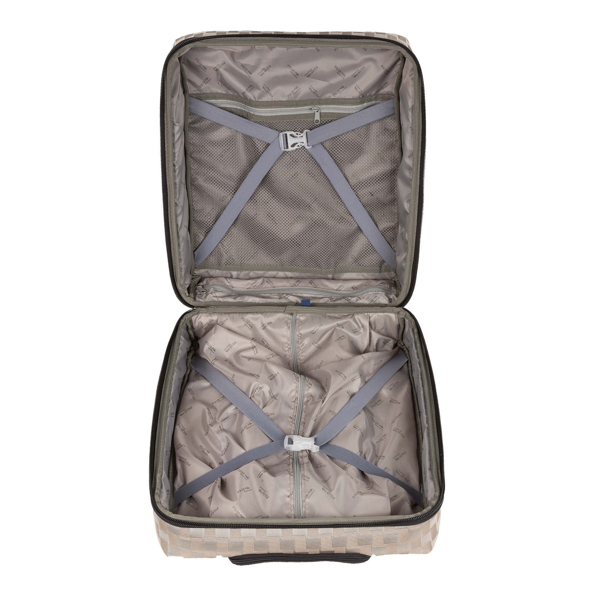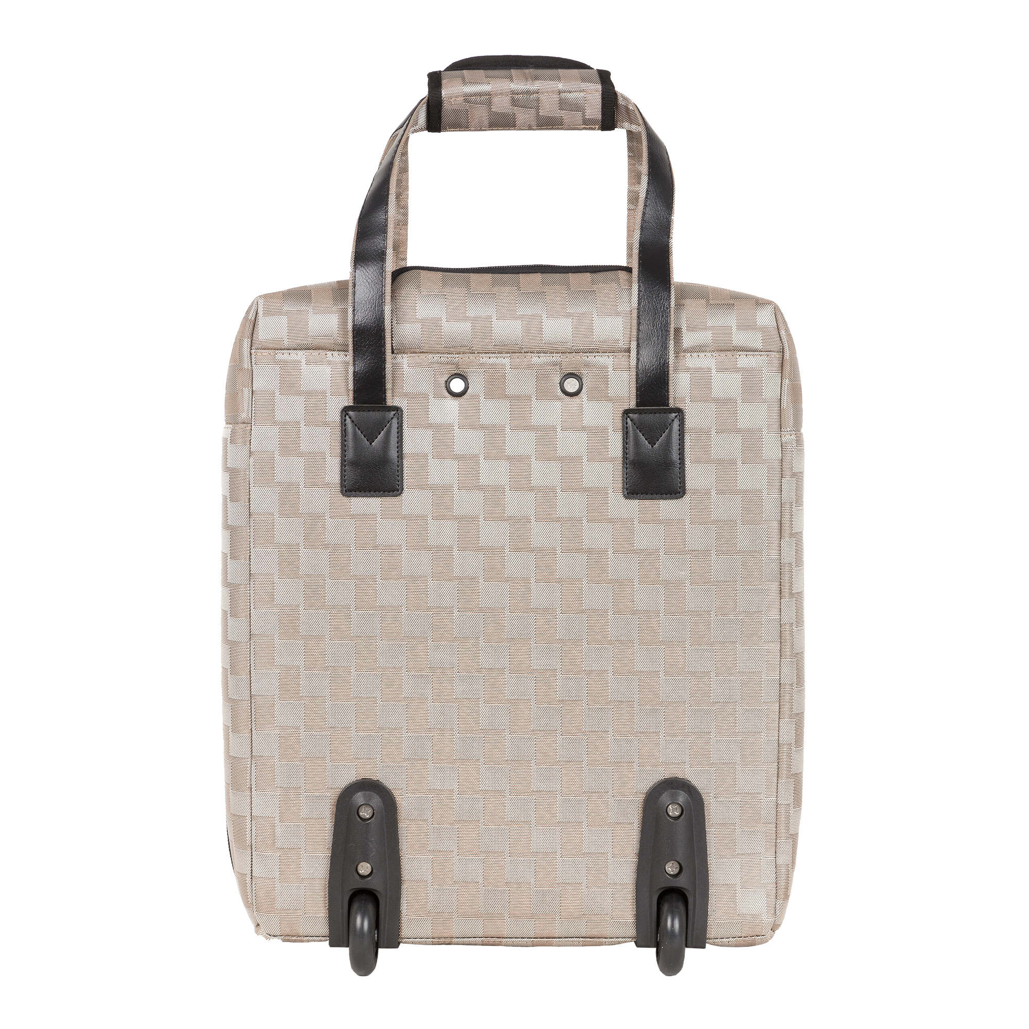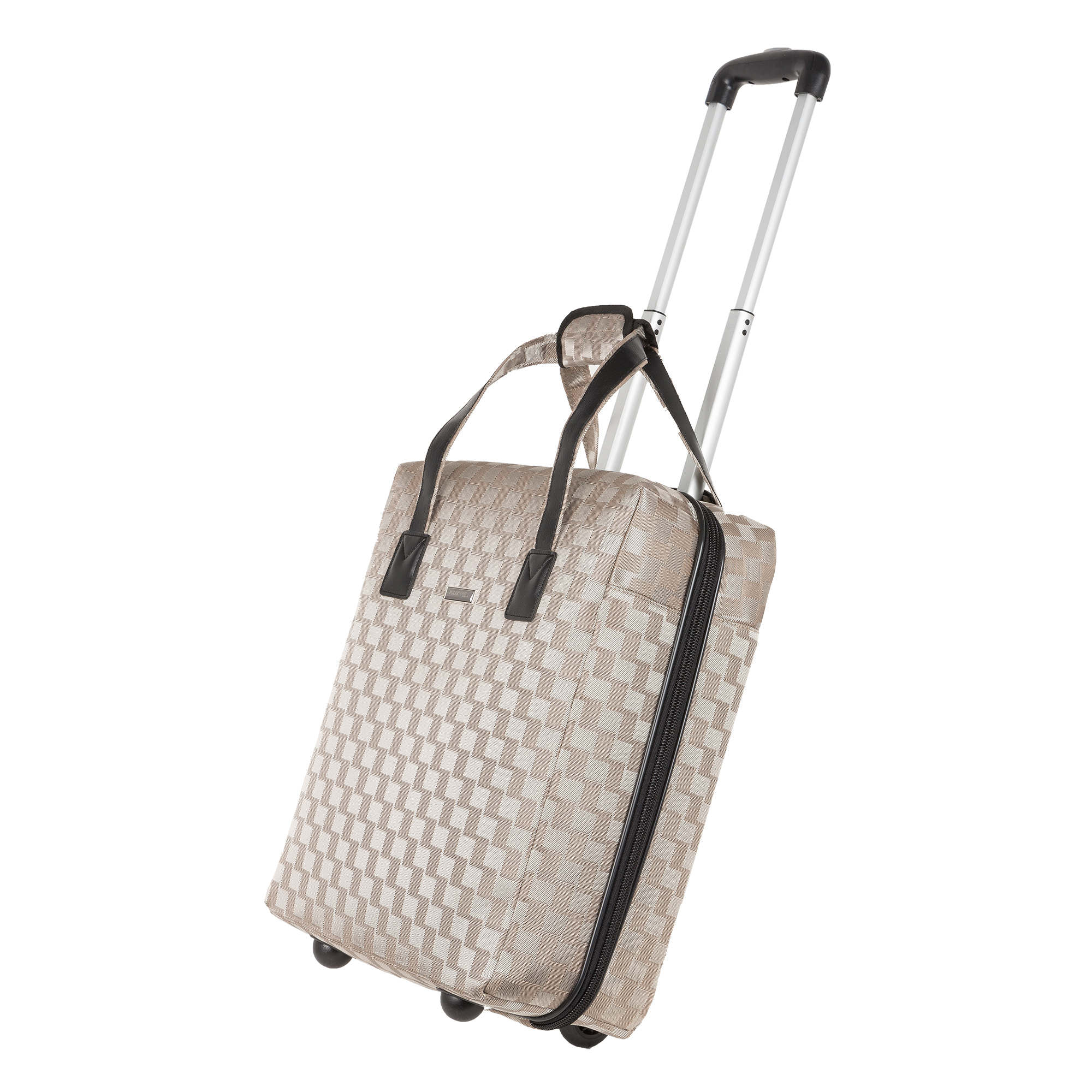 Чемодан имеет прочный проволочный каркас и закрывается на молнию. У чемодана есть два колеса утопленных в корпус, выдвижная ручка и две ручки сверху сумки. Внутри- одно основное отделение с ремнями-фиксаторами для вещей и карман-сетка на молнии.