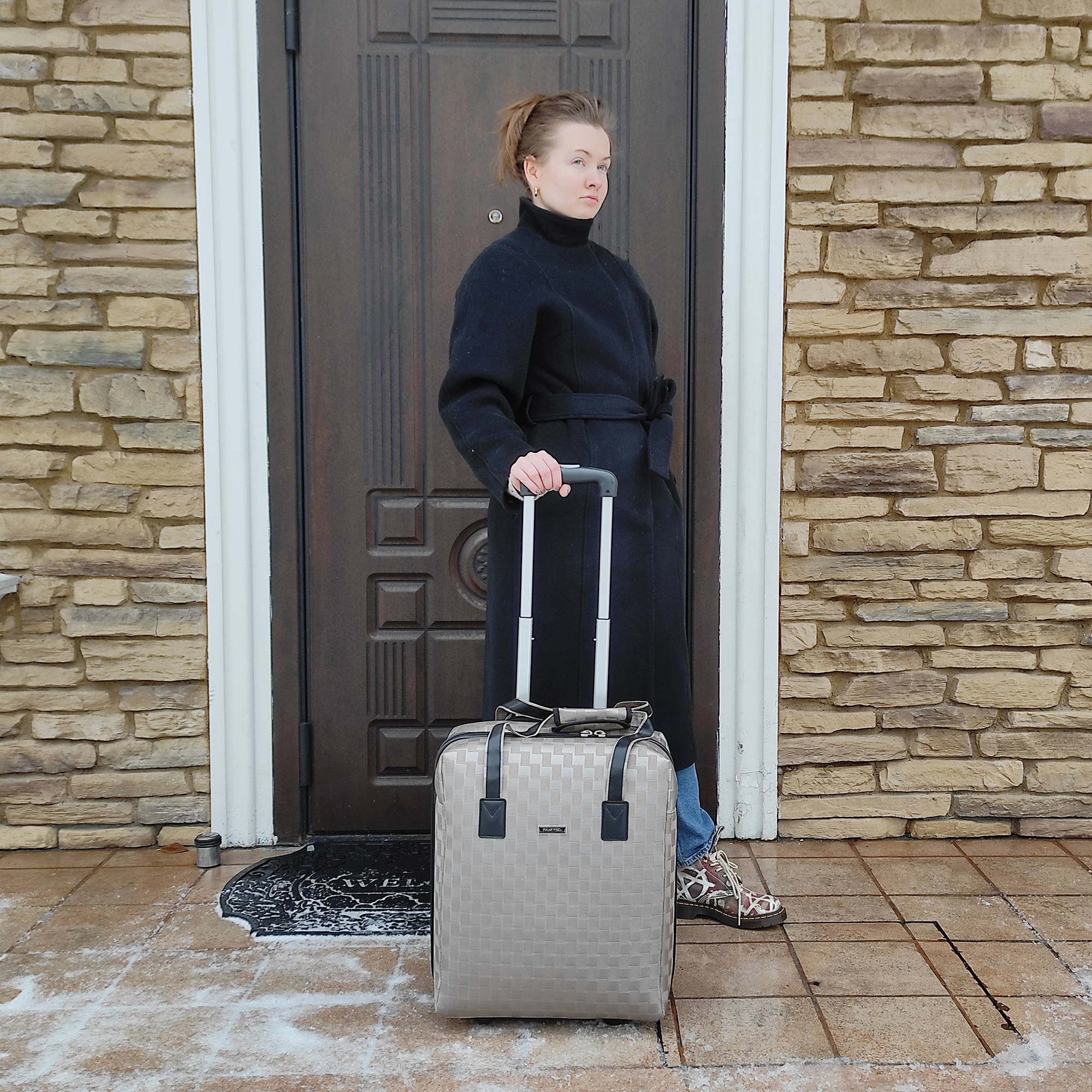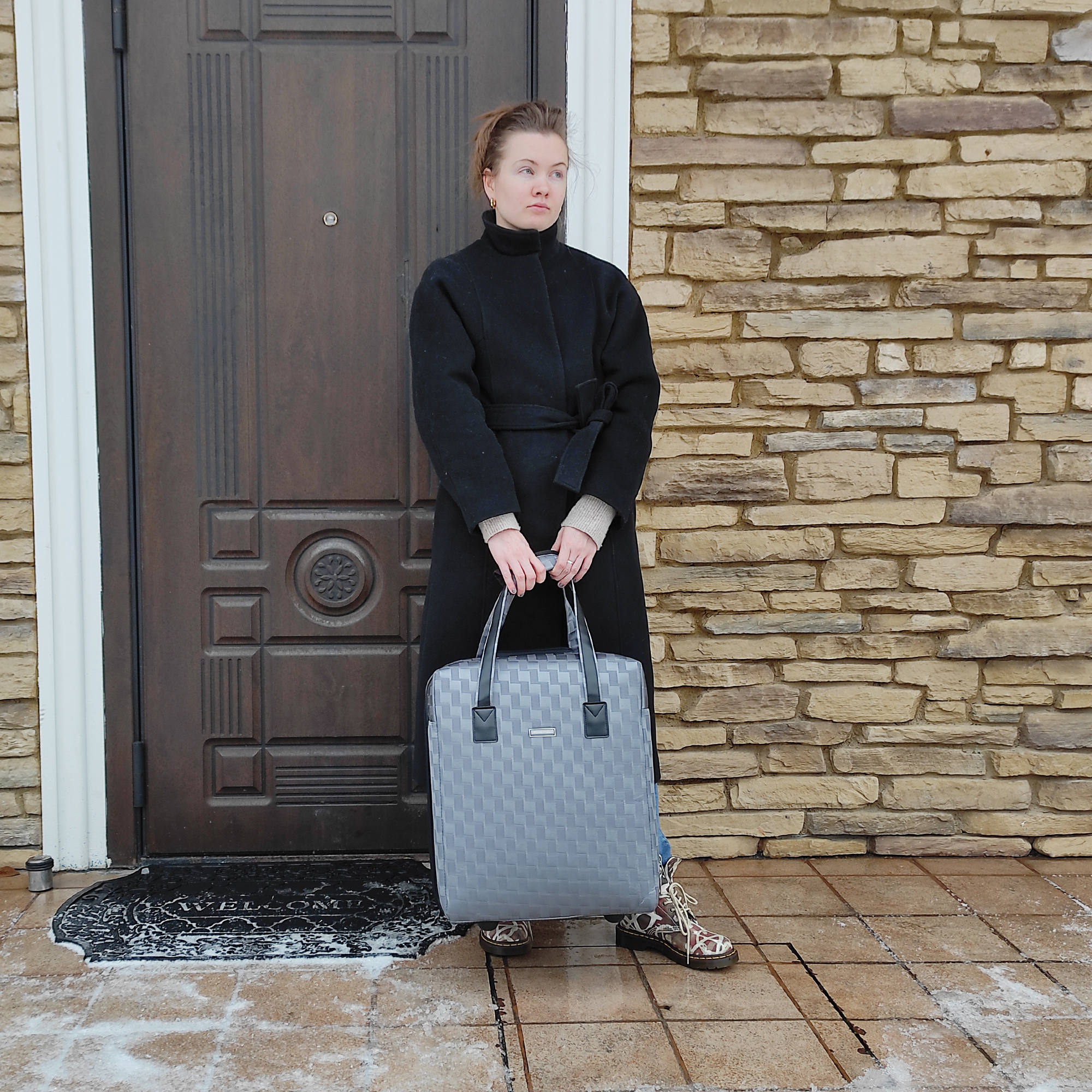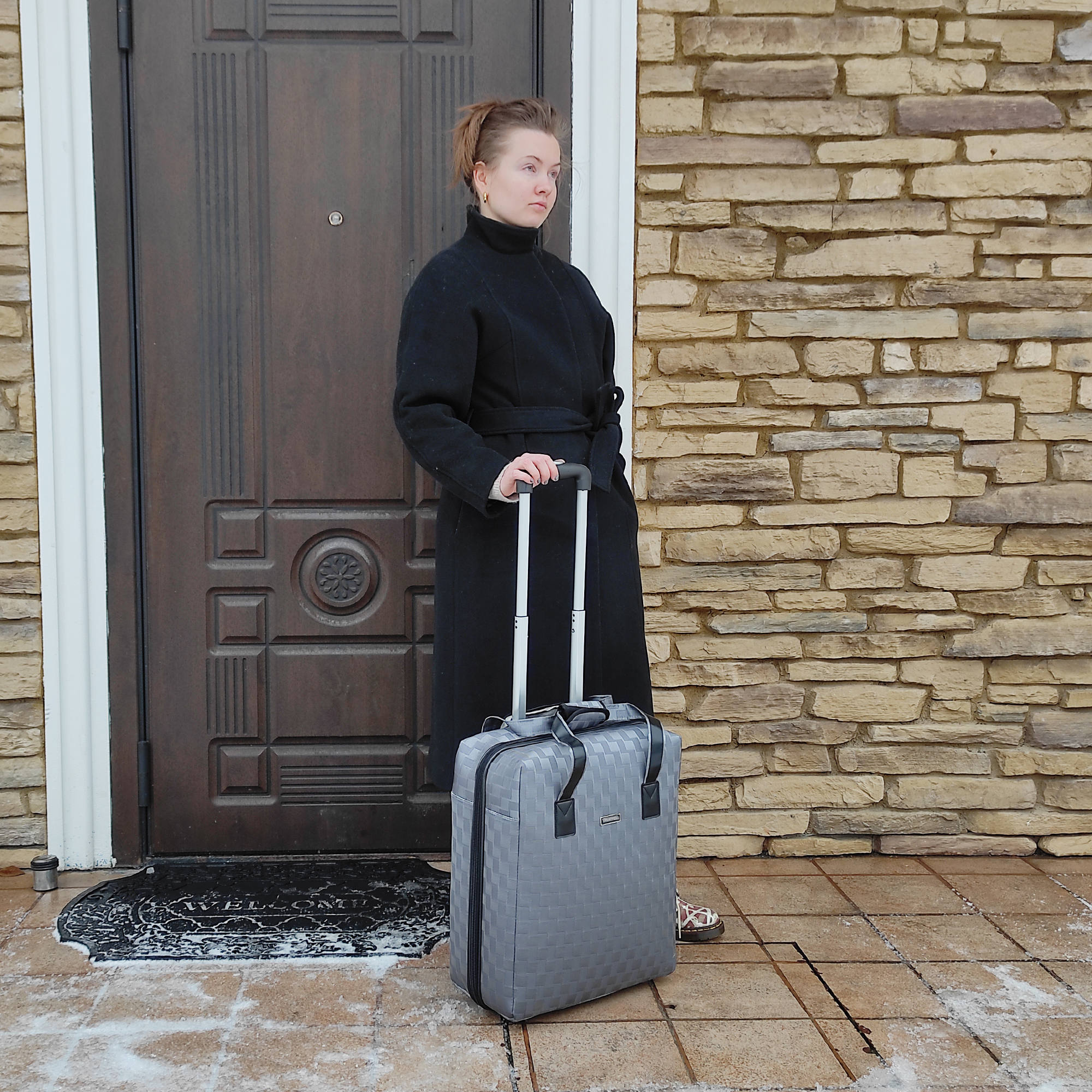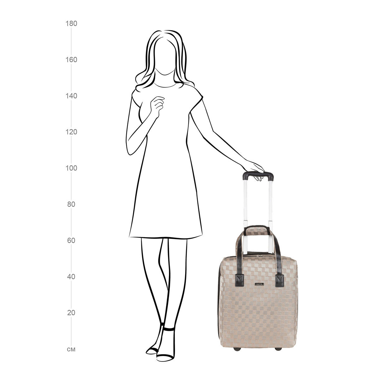 Размер чемодана подходит для провоза багажа в салоне самолёта и проходит в рамку-калибратор 50x40x20.