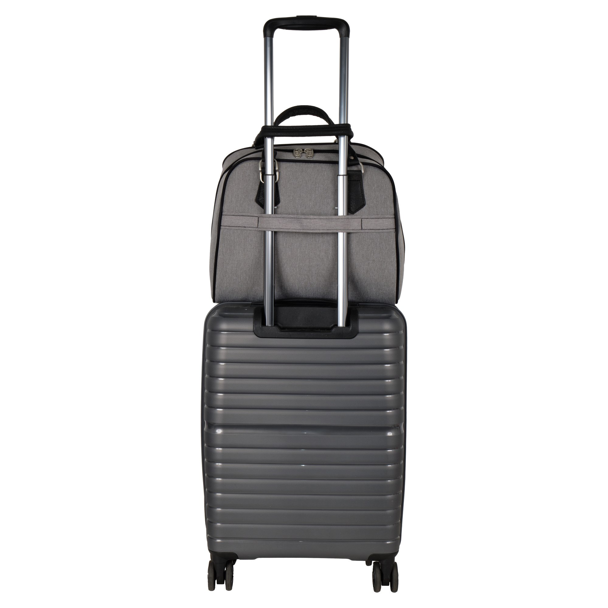 На задней стенке сумки предусмотрено крепление на ручку чемодана, но если вы застегнете молнию, то получите дополнительный карман.