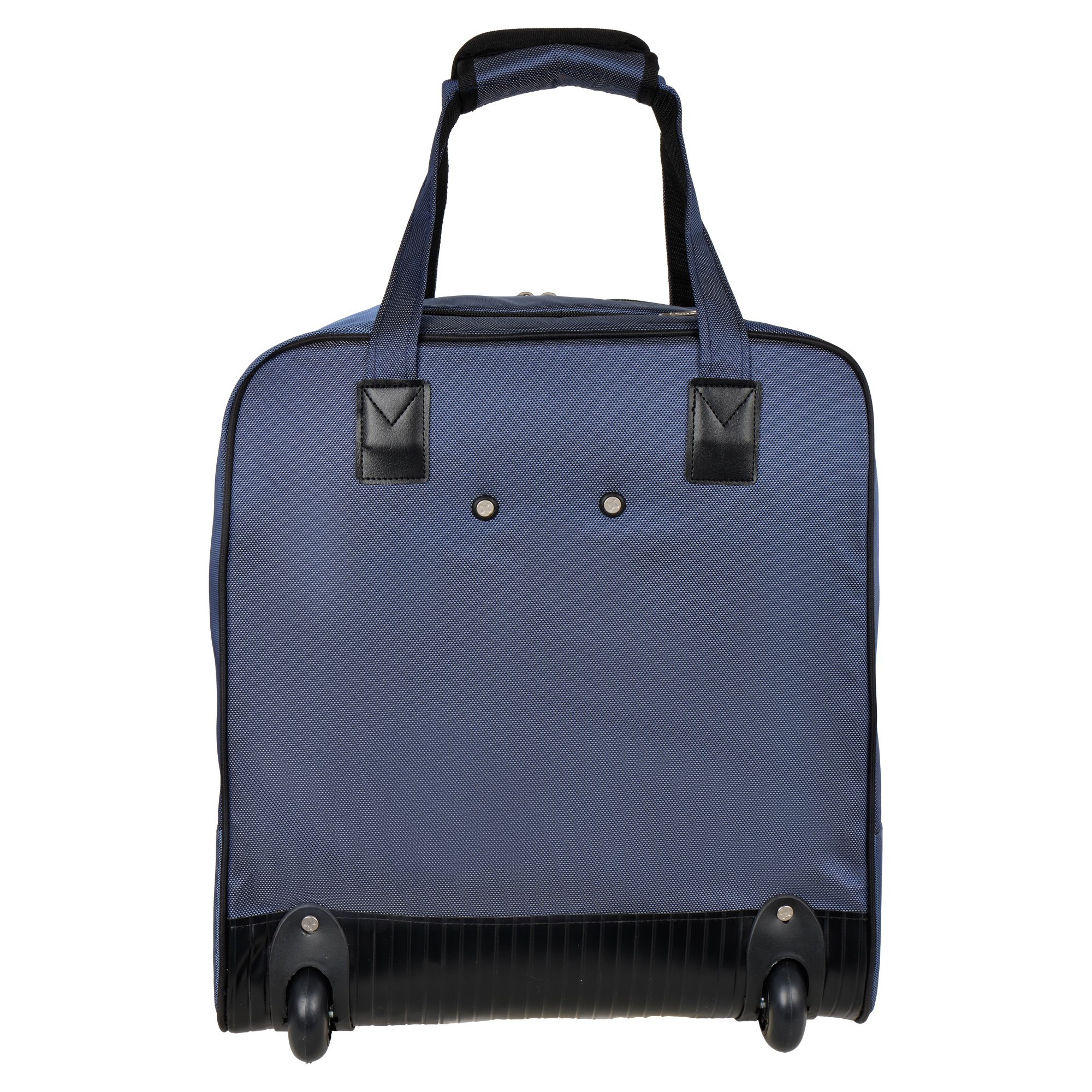 Колеса прорезиненные диаметр 7 см, дно дополнительно защищено от истирания. Сумка устойчиво стоит на ножках. Модель подходит под требования для ручной клади в большинство авиакомпаний с ограничениями по размерам 41 x 47 x 22 см.