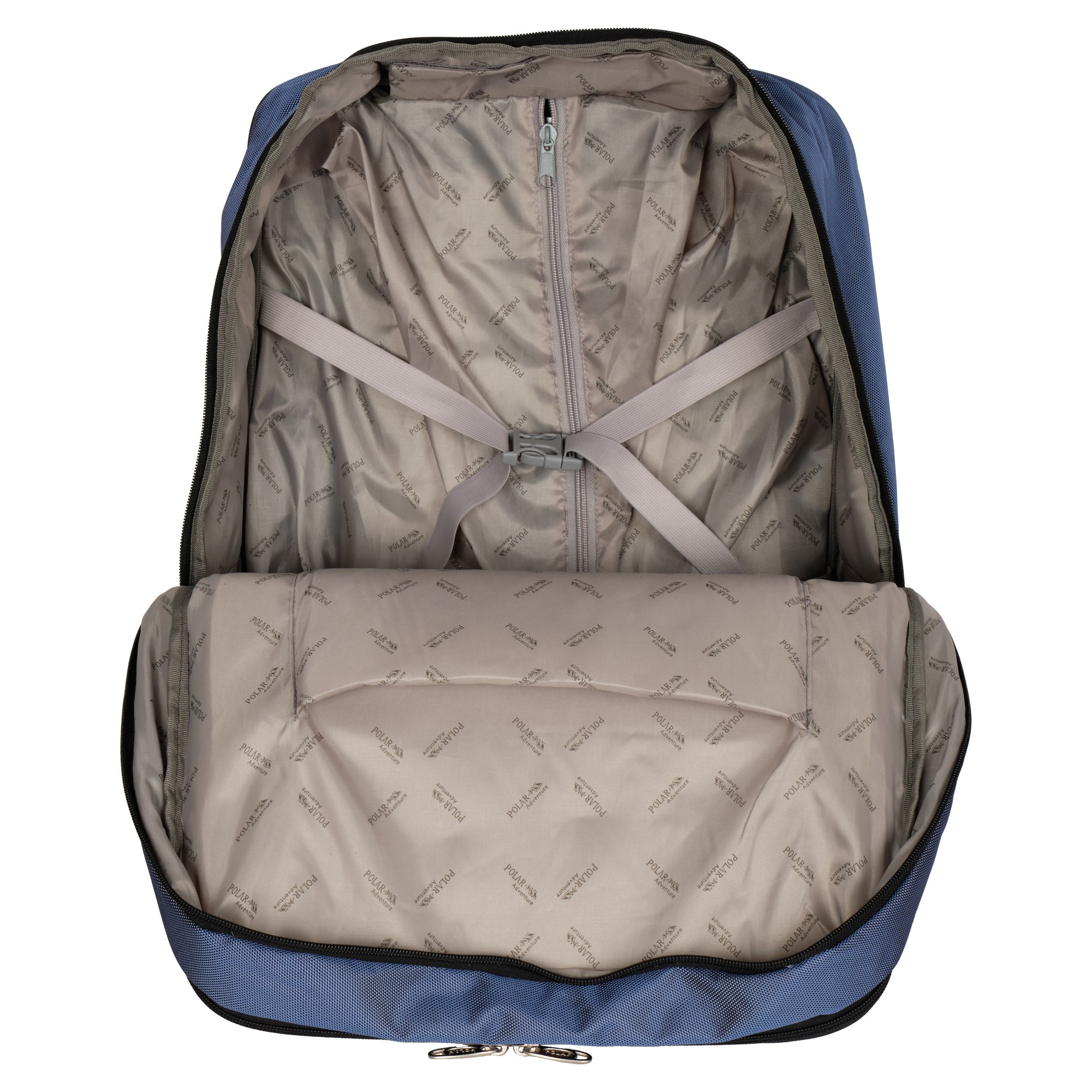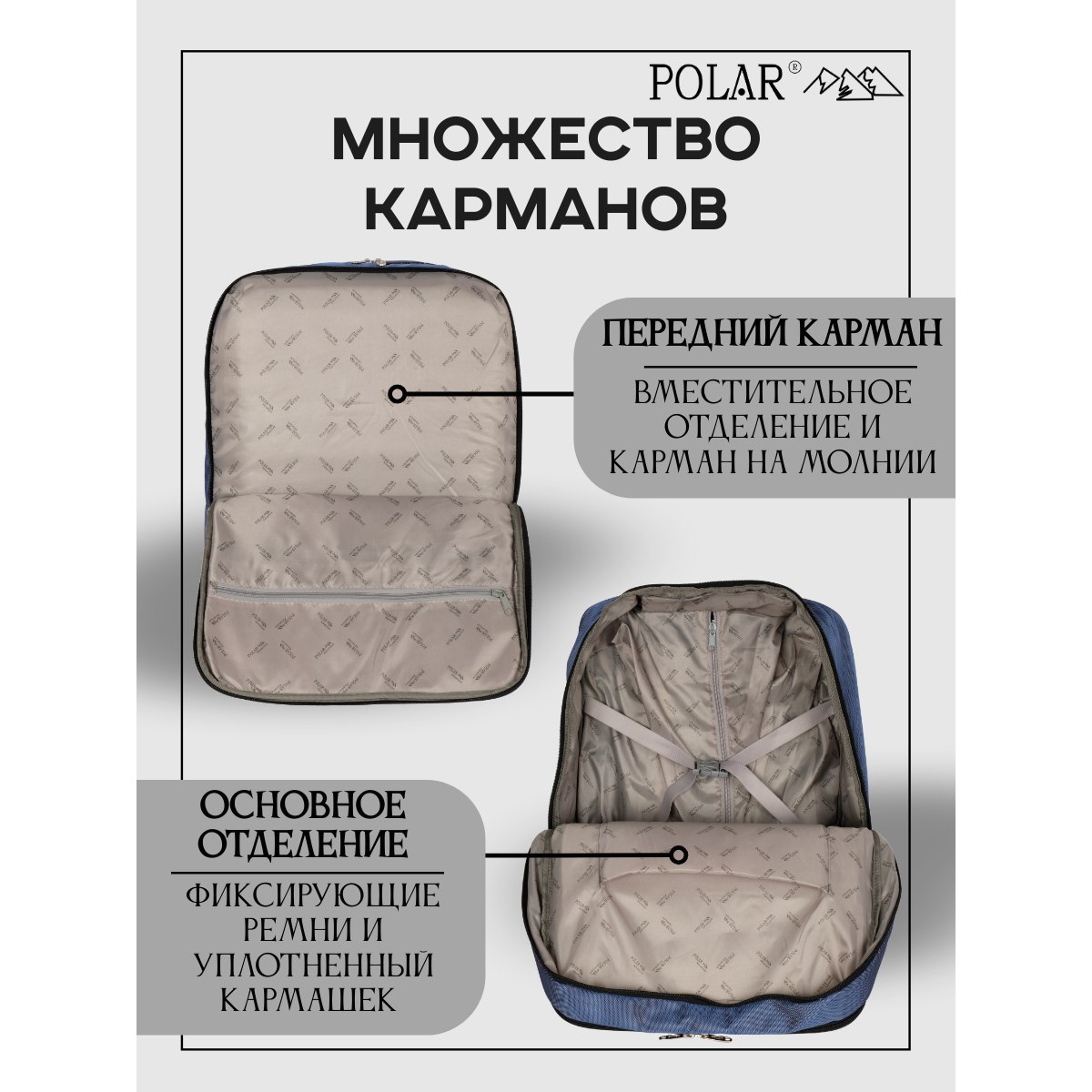 Эта модель дорожной сумки от компании POLAR отлично подойдет для краткосрочных путешествий или командировок. Сумка- чемодан состоит из двух независимых отделений, которые закрываются на двухсторонние молнии. Первое основное просторное отделение для ваших вещей, во втором отделении есть открытый уплотненный карман, в который можно положить документы или планшет, и карман на молнии. Также на передней стенке есть глубокий врезной карман на молнии и накладной карман на молнии, внутри которого два открытых сетчатых кармашка для мелочей.
