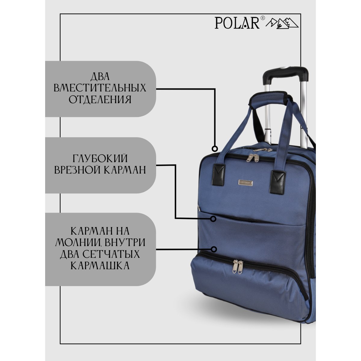 Сумка на колесах с тележкой, ручная кладь POLAR.
