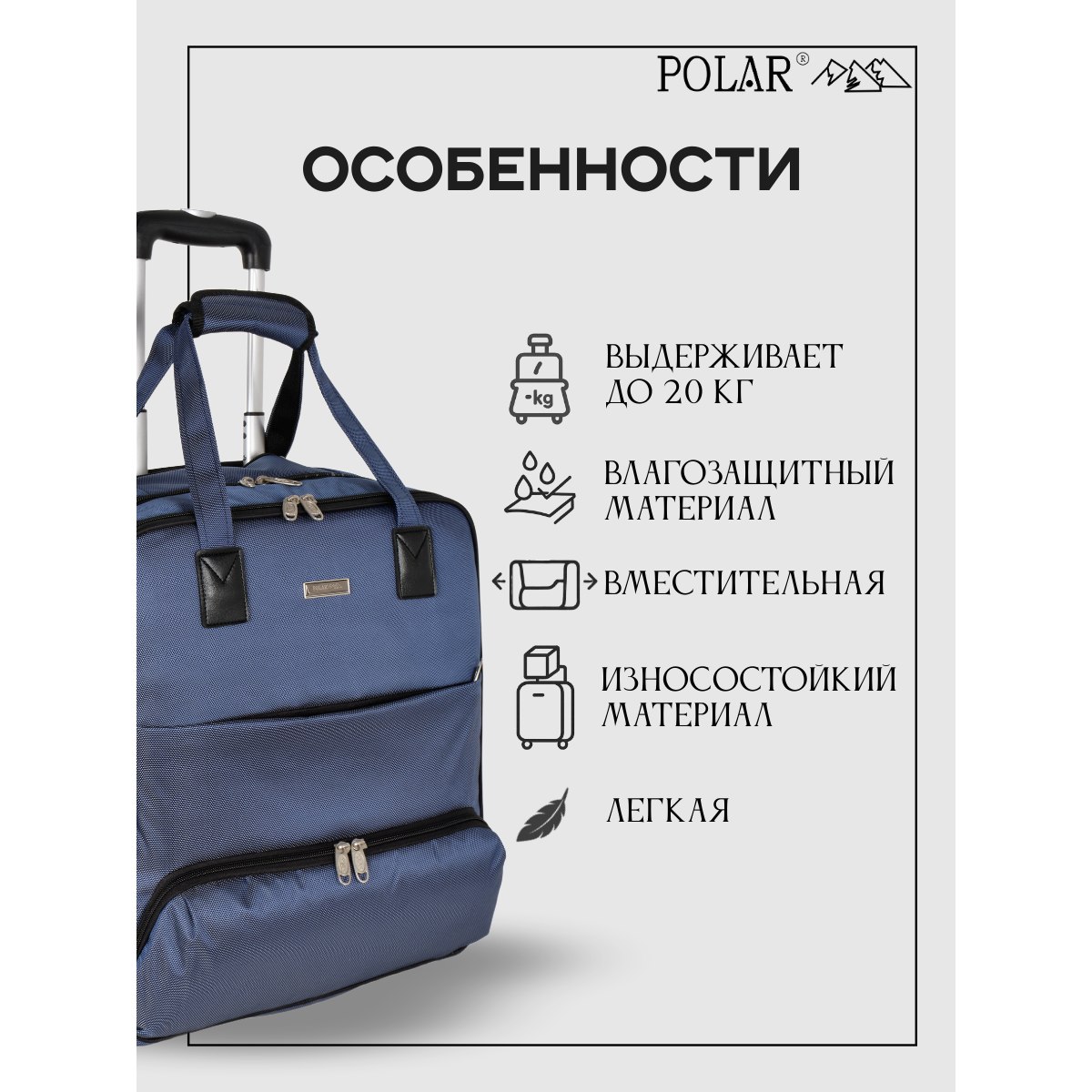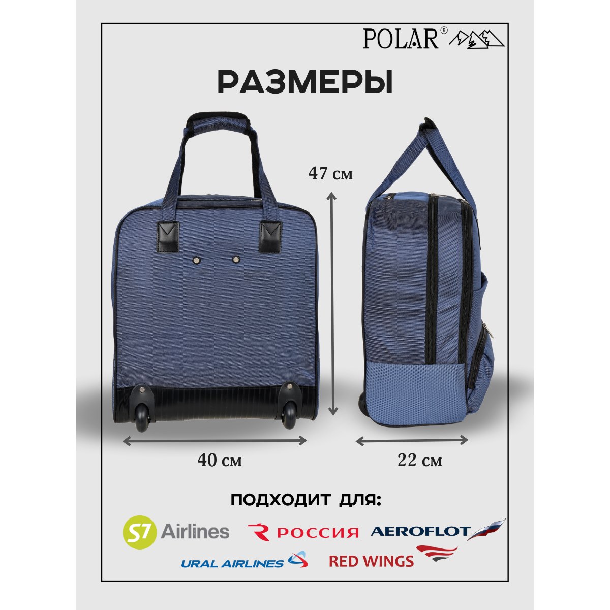 Сумка на колесах с тележкой, ручная кладь POLAR.