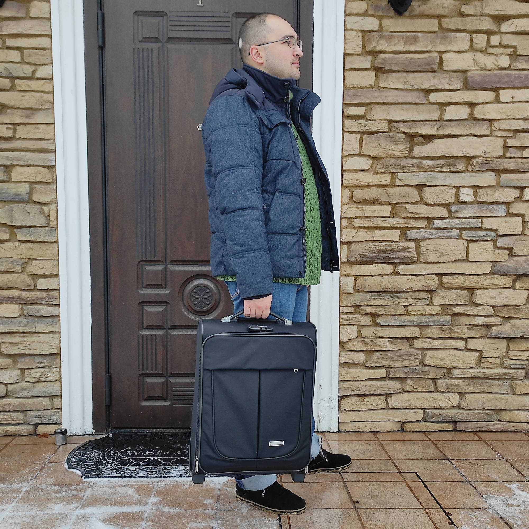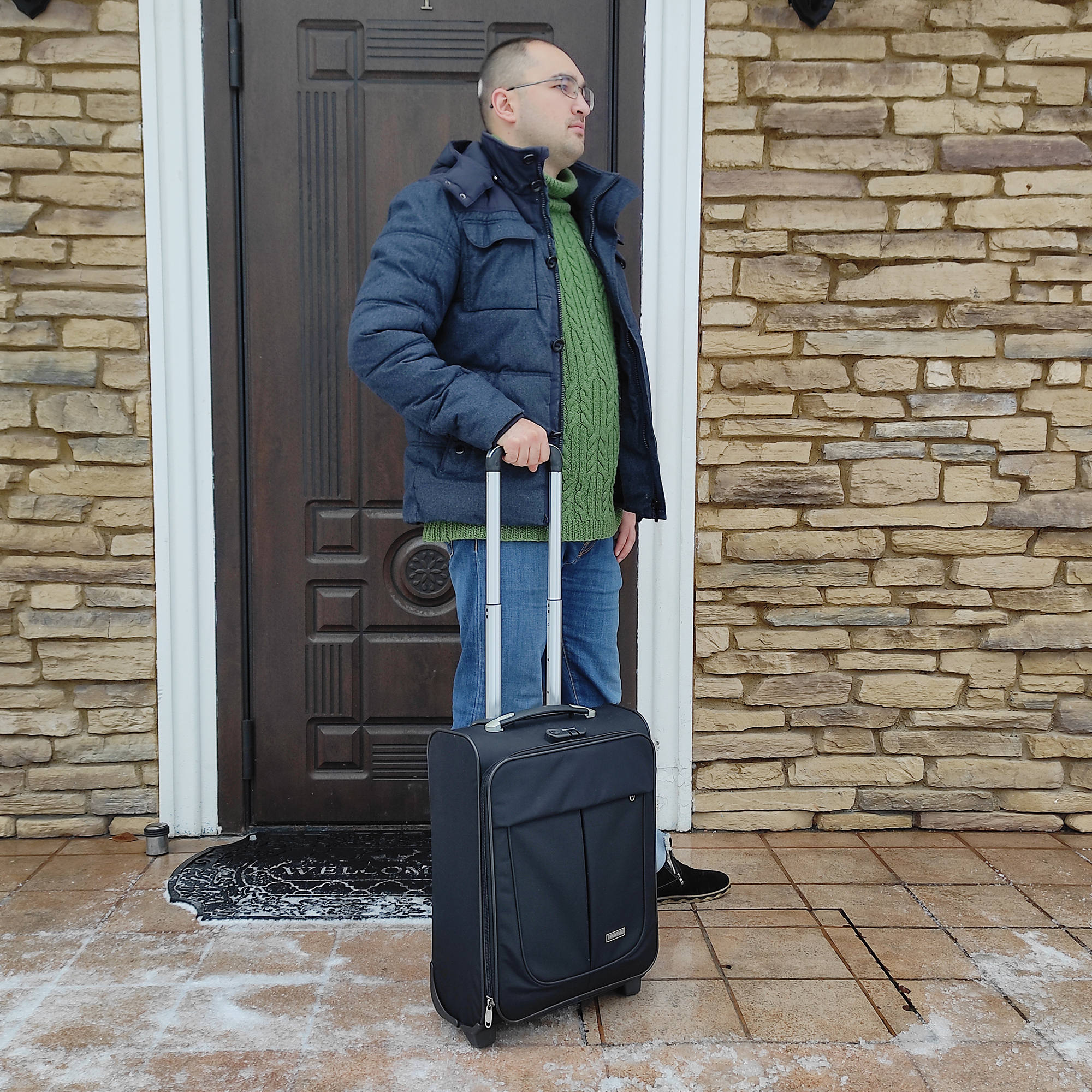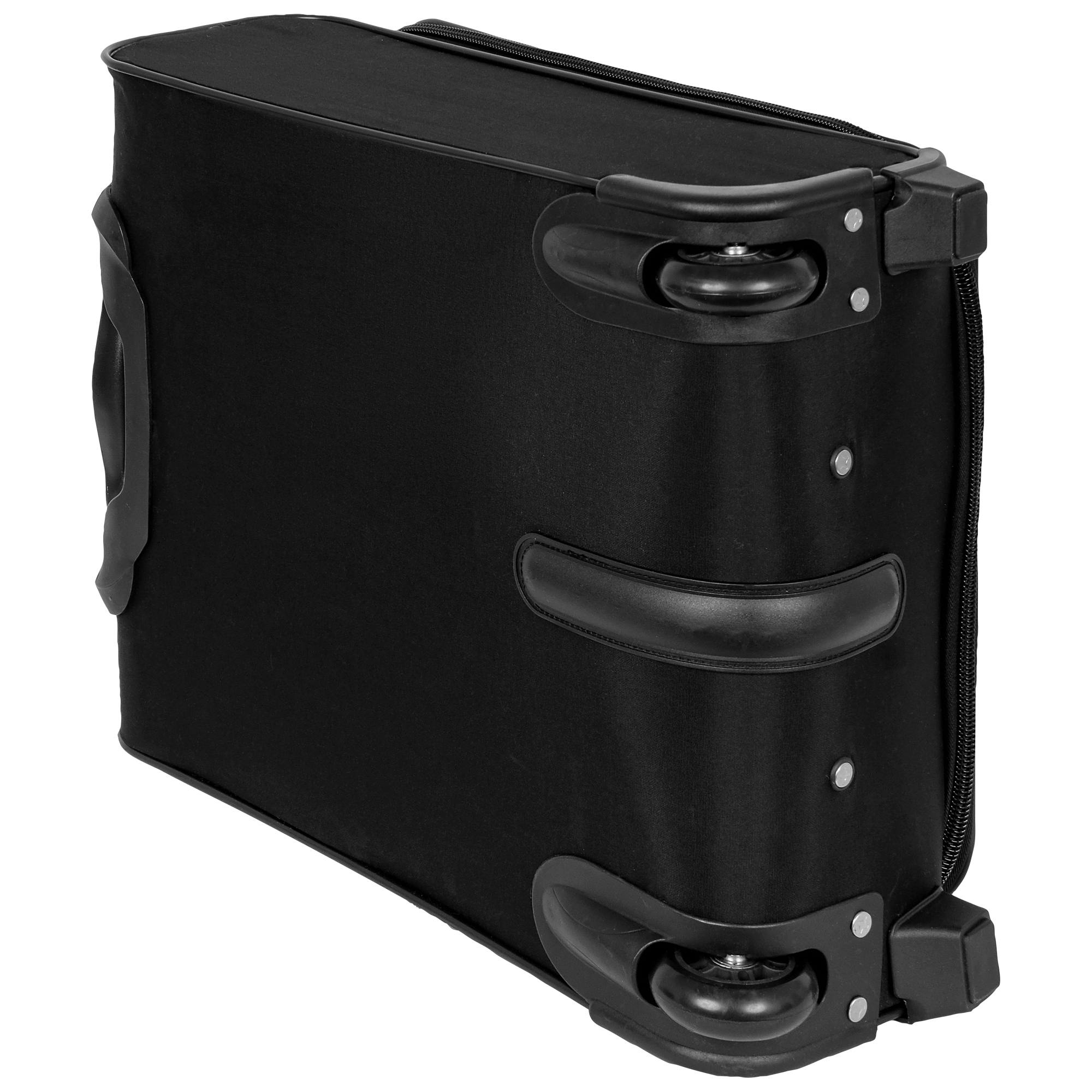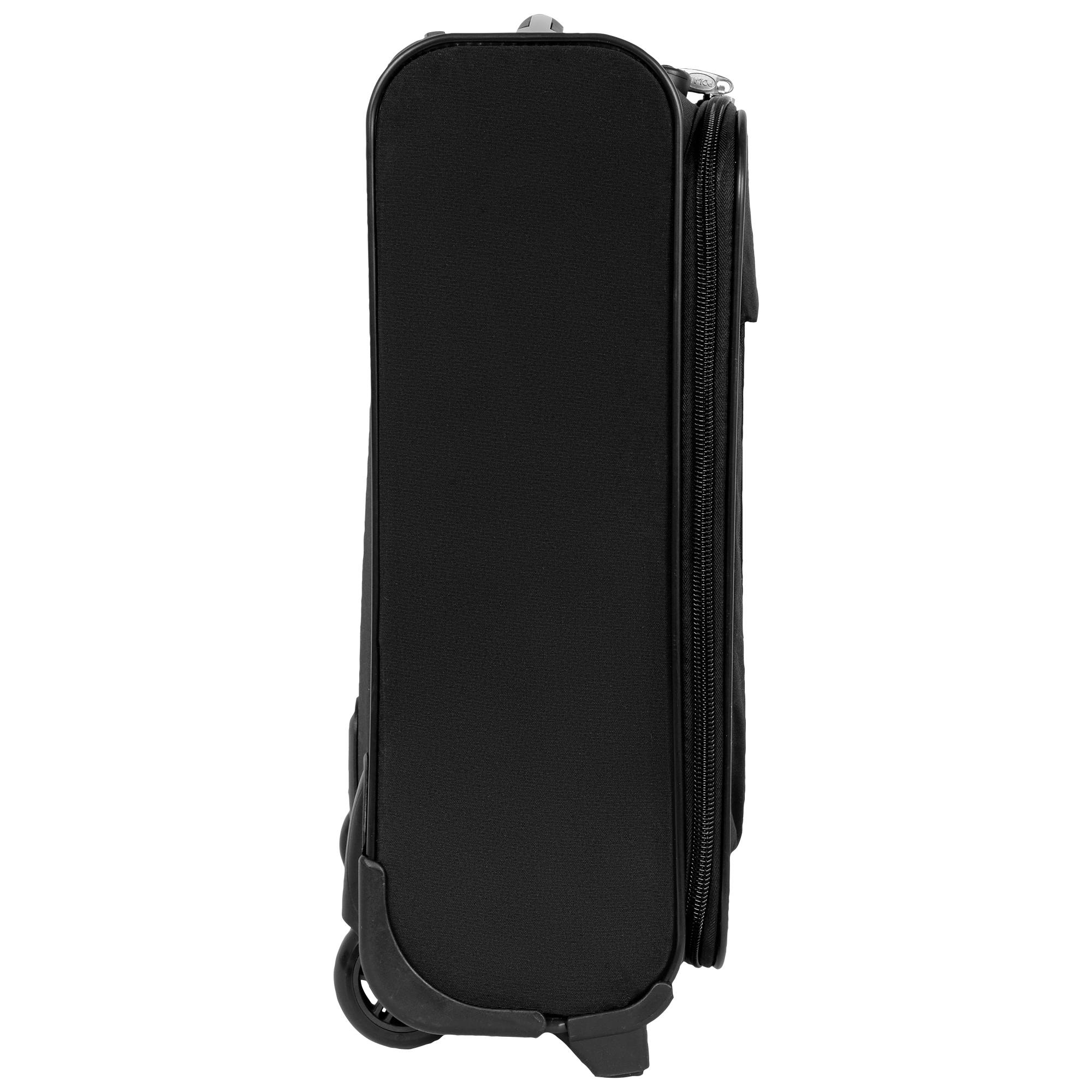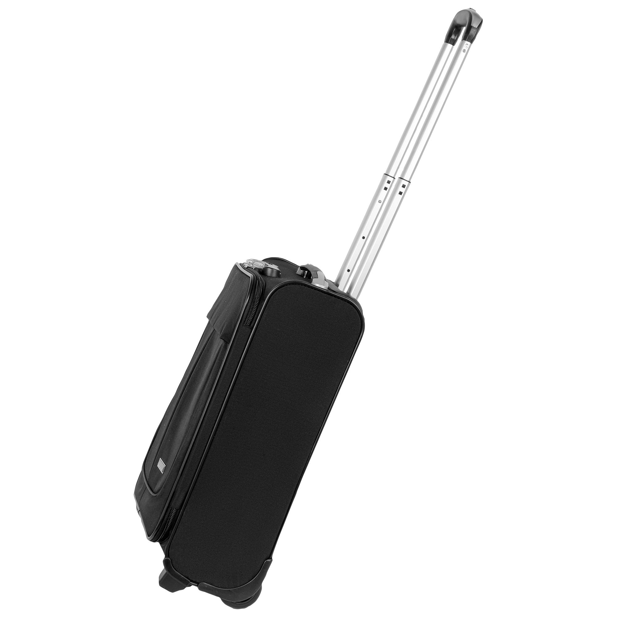 Чемодан от компании "Polar" на двух колёсах выполнен из прочного материала (нейлона и полиэстера). Чемодан закрывается на молнию, присутствует также встроенный кодовый замок.Внутри есть одно большое отделение , в котором присутствуют ремни для фиксации вещей, отделение для ноутбука и маленький карман на молнии для документов. Снаружи расположен объёмный карман на молнии для мелких вещей. У чемодана есть небольшая ручка для переноски и металлическая ручка, которая выдвигается на 50см.