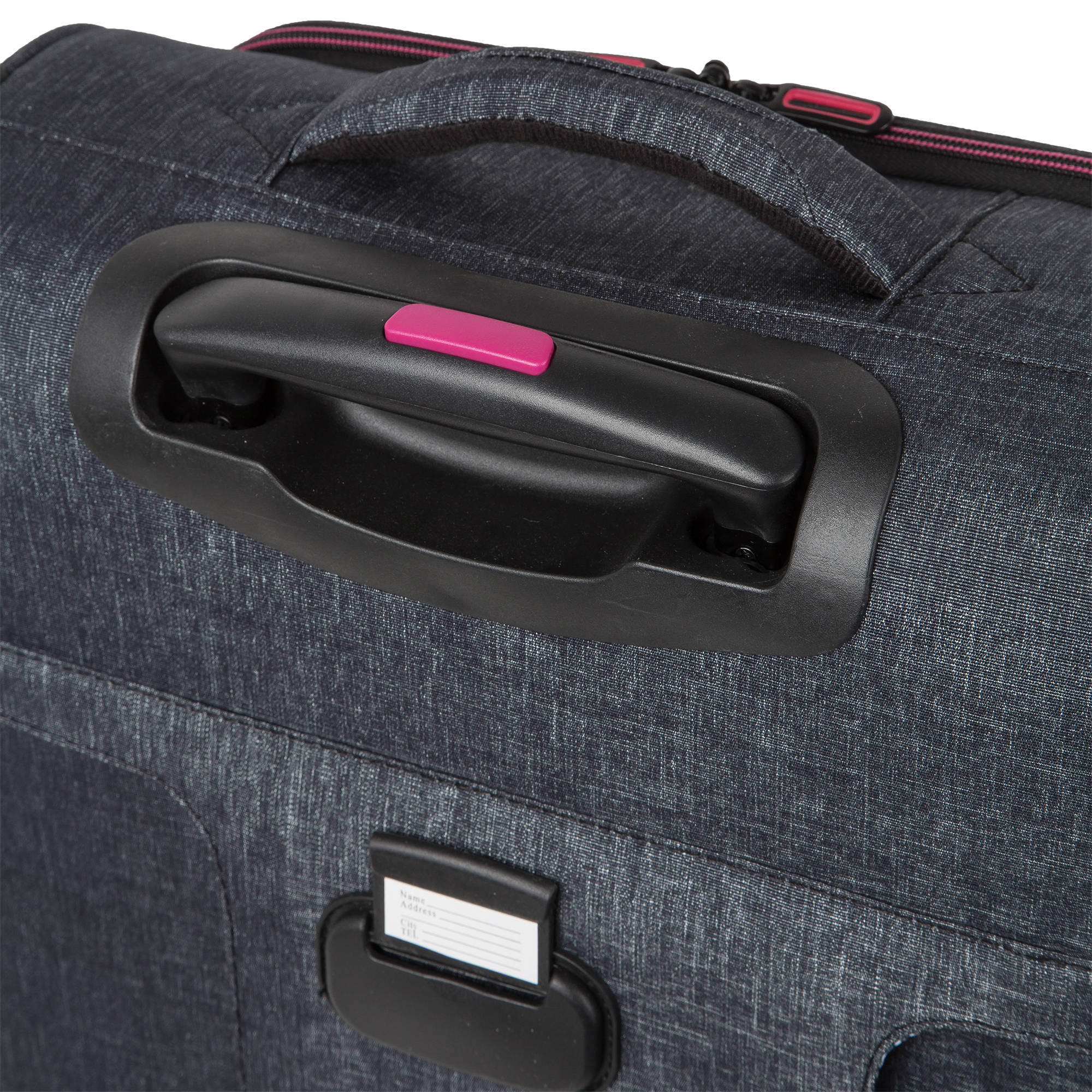 Стильный чемодан модной расцветки имеет в наличии две ручки для переноски сбоку и сверху чемодана, а также выдвижную ручку, максимальная высота которой составляет 105 см. Кодовый замок в комплект не входит.