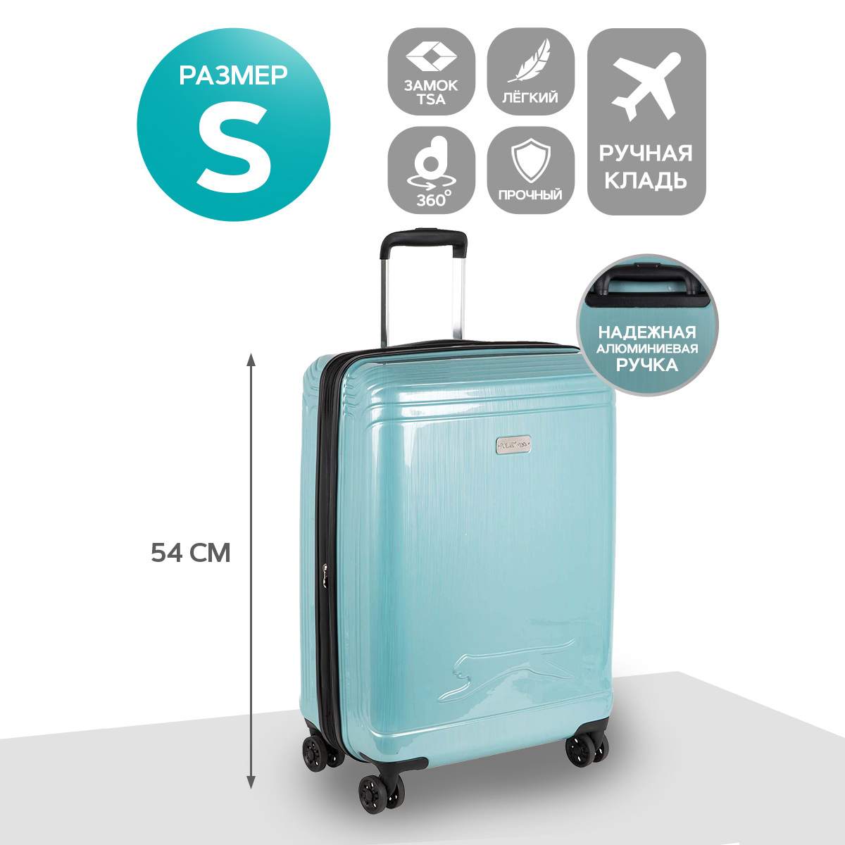 Маленький пластиковый чемодан Спиннер 19". Основное отделение разделено на две части. Одно имеет фиксирующие ремни, второе на молнии. Выдвигающаяся ручка расположена внутри корпуса чемодана, что способствует большей прочности и защите от ударов при разгрузке/погрузке чемодана. Выдвигающаяся ручка фиксируется в двух положениях. Есть встроенный кодовый замок с таможенным ключом TSA. Надежные 4 колеса диаметром 4.8 см.