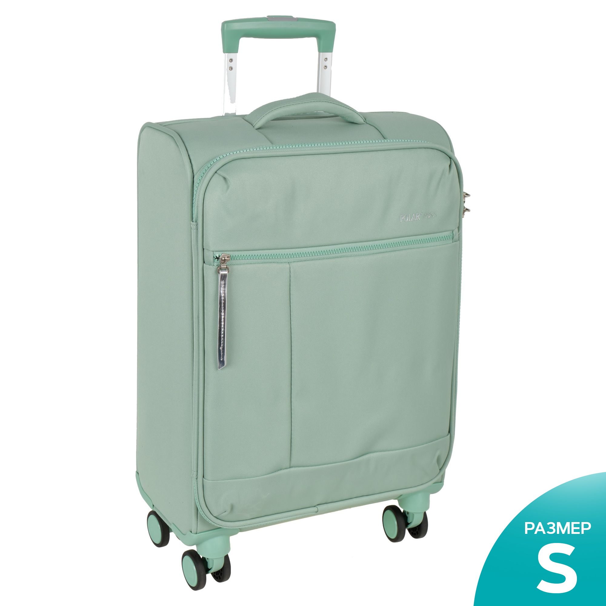 Новый облегченный чемодан фирмы Polar с отделкой колес, тележки , молнии в цвете. Чемодан закрывается по периметру на двухстороннюю широкую молнию. Сверху удобная ручка. Бесшумные и прочные двойные вращающиеся колеса  360 градусов для легкого перемещения и хорошей балансировки. Встроенный кодовый замок TSA, снаружи на передней стенке вместительный карман на молнии. Выдвижная ручка, максимальная высота которой составляет 105 см.