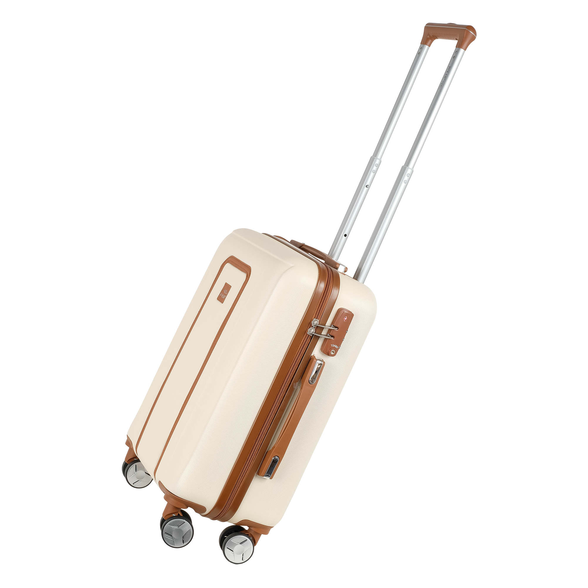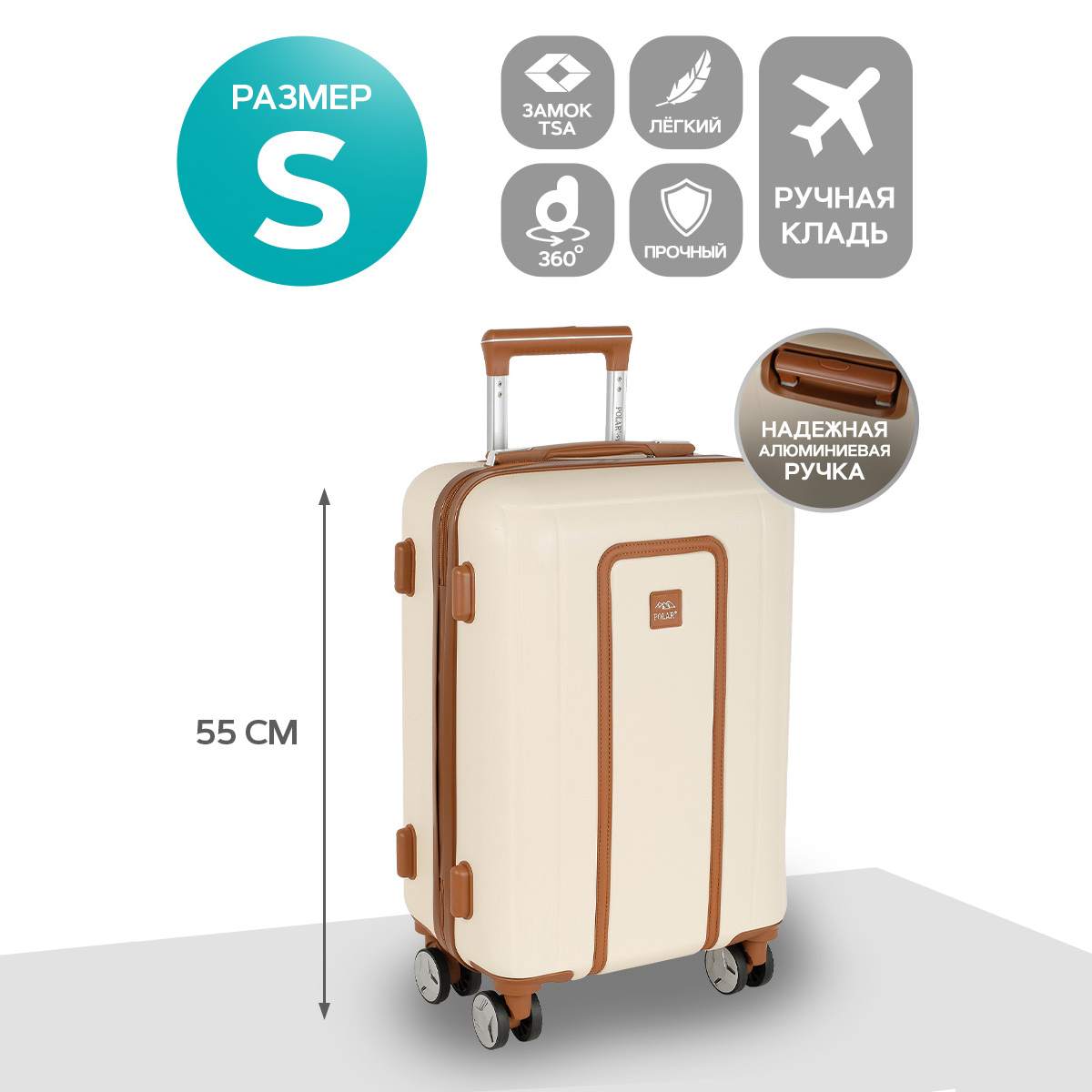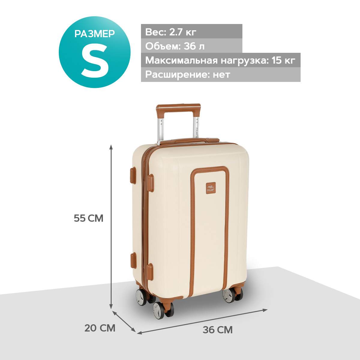 Чемодан малый 20" на четырех прорезиненных колесиках. Ч Внутри подкладка из полиэстра. Одна секция чемодана с креплением резинками для одежды. Вторая секция застегивается на молнию для удобства упаковки вещей. Есть кодовый замок TSA.