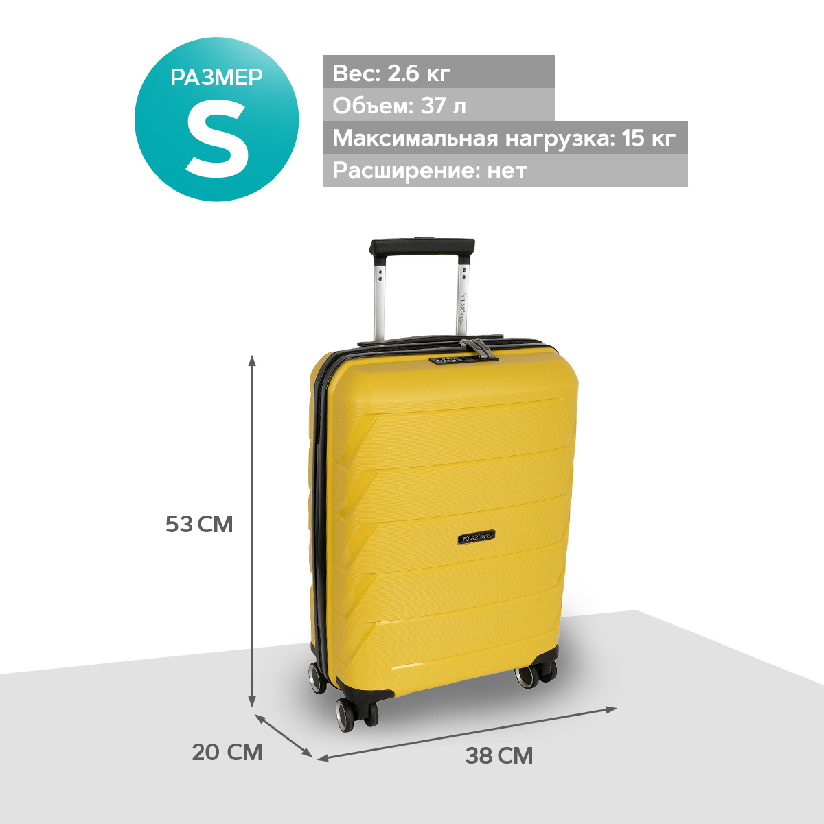 Чемодан малый фирмы POLAR, размер S, выполнен из PP (полипропилен). Основное отделение разделено на две части. Одно имеет фиксирующие ремни, второе на молнии. Выдвигающаяся ручка расположена внутри корпуса чемодана, что способствует большей прочности и защите от ударов при разгрузке/погрузке чемодана. Выдвигающаяся ручка фиксируется в двух положениях. Есть кодовый замок. Надежные 4 колеса.