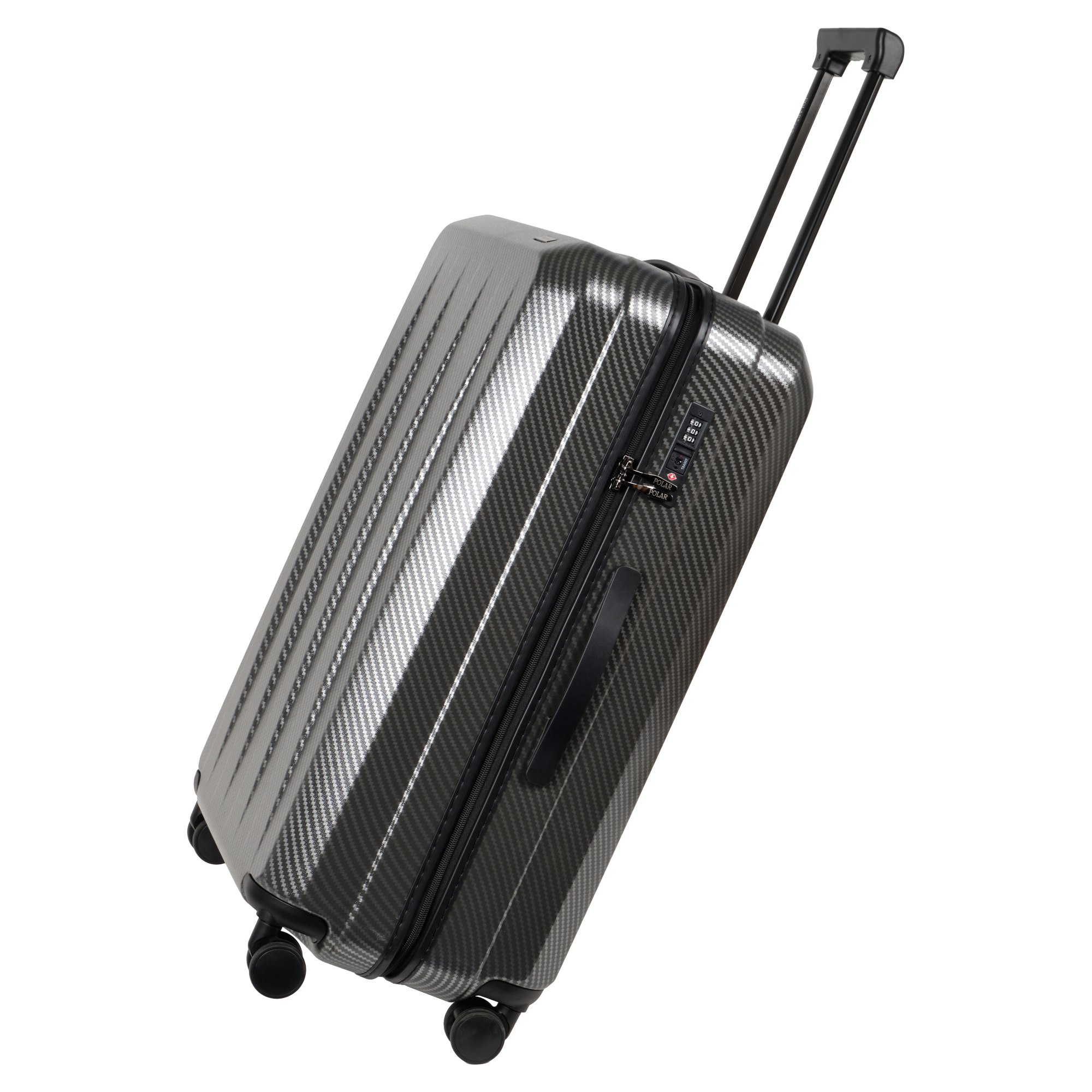 Чемодан фирмы Polar выполнен из нового легкого материал PC (Поликарбонат). В отличие от ABS-пластика чемоданы из PC можно эксплуатировать при очень низких температурах. PC (Поликарбонат) обладает высокой прочностью, эластичностью и высокой ударостойкостью. Особенностью чемоданов из PC (Поликарбонат) является малый вес. Внутри подкладка из полиэстера. Одна секция чемодана с креплением резинками для одежды. Вторая секция застегивается на молнию для удобства упаковки вещей. Есть кодовый замок TSA. Бесшумные и прочные двойные вращающиеся колеса 360 градусов для легкого перемещения.