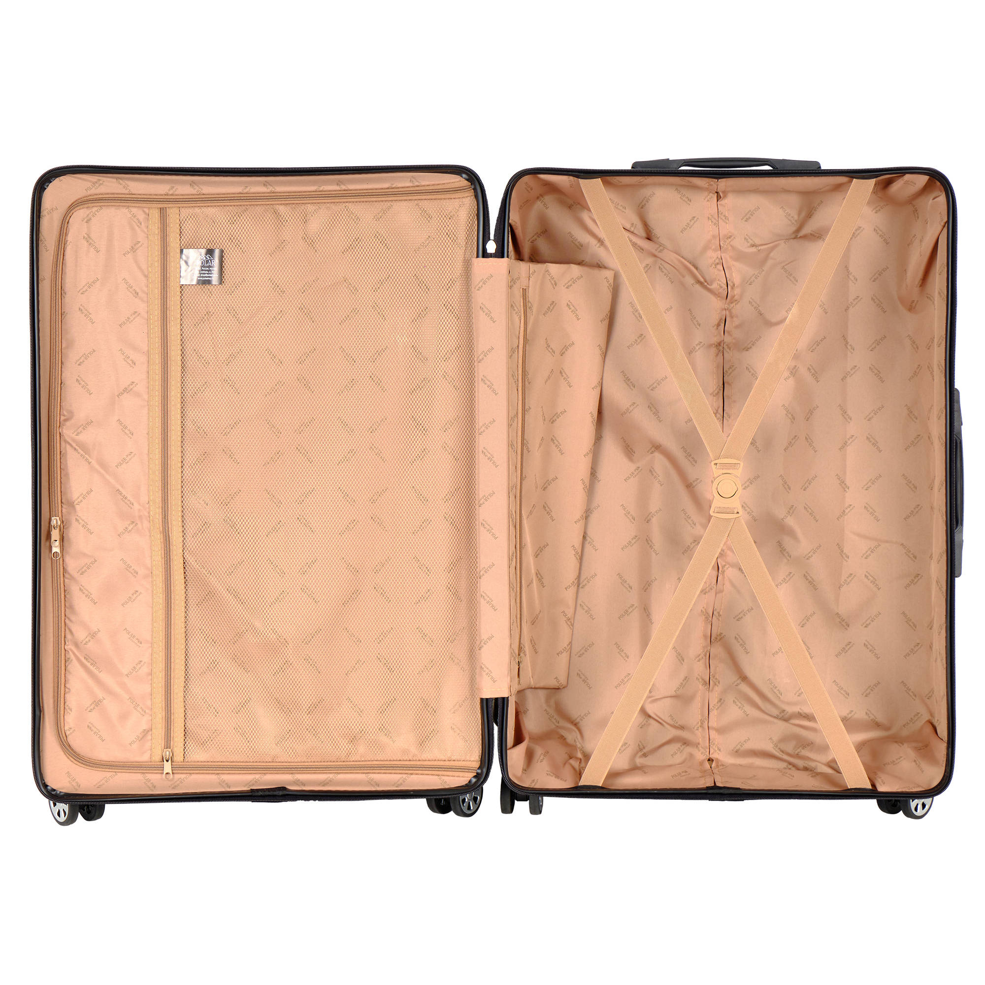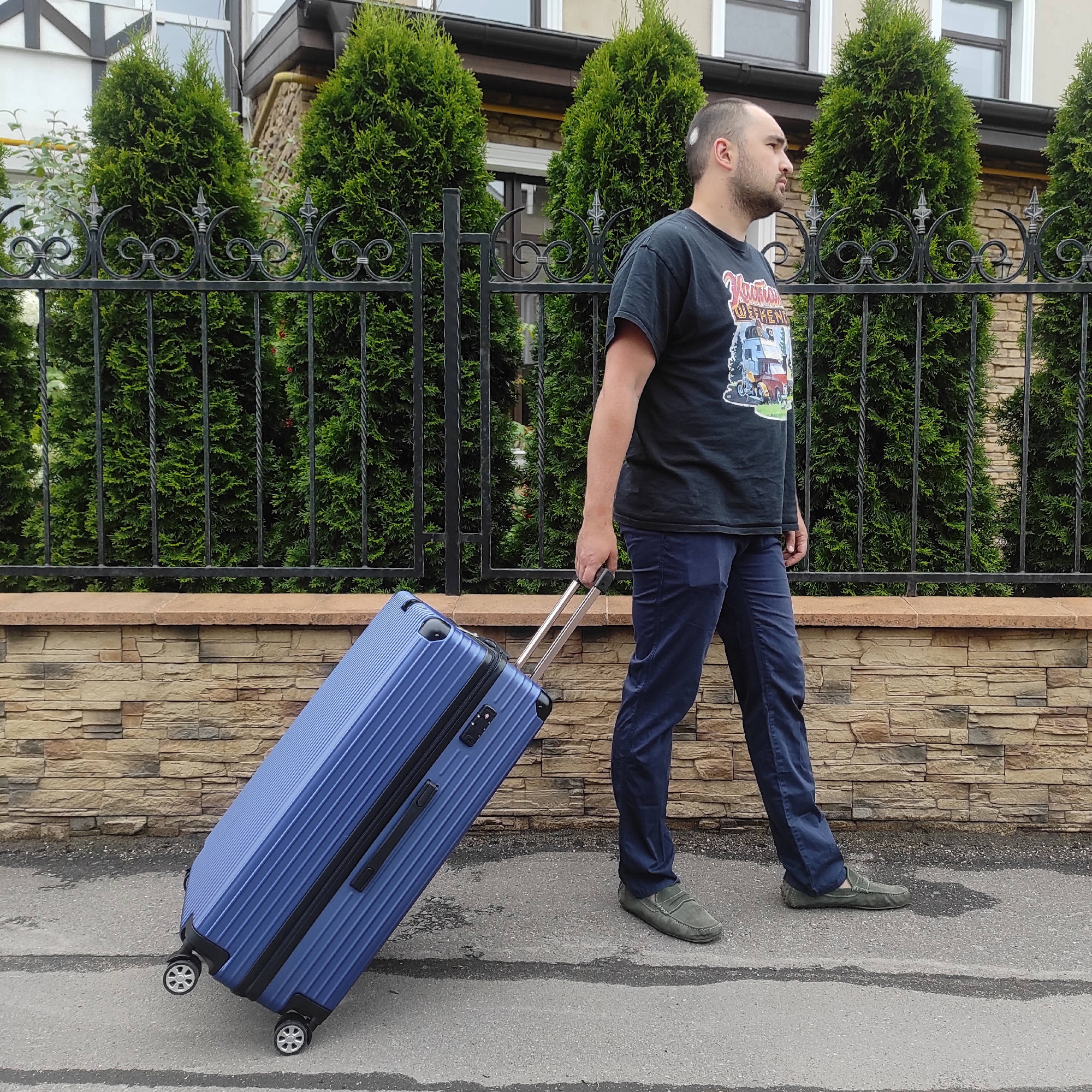 Чемодан на четырех прорезиненных колесиках. Чемодан выполнен из нового легкого материал PC (Поликарбонат). В отличие от ABS-пластика чемоданы из PC можно эксплуатировать при очень низких температурах. PC (Поликарбонат) обладает высокой прочностью, эластичностью и высокой ударостойкостью. Особенностью чемоданов из PC (Поликарбонат) является малый вес. Внутри подкладка из полиэстра. Одна секция чемодана с креплением резинками для одежды. Вторая секция застегивается на молнию для удобства упаковки вещей. Есть кодовый замок TSA.