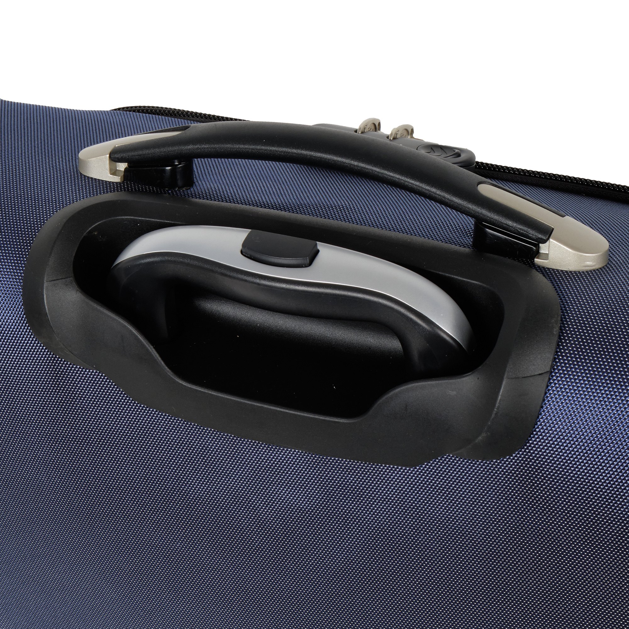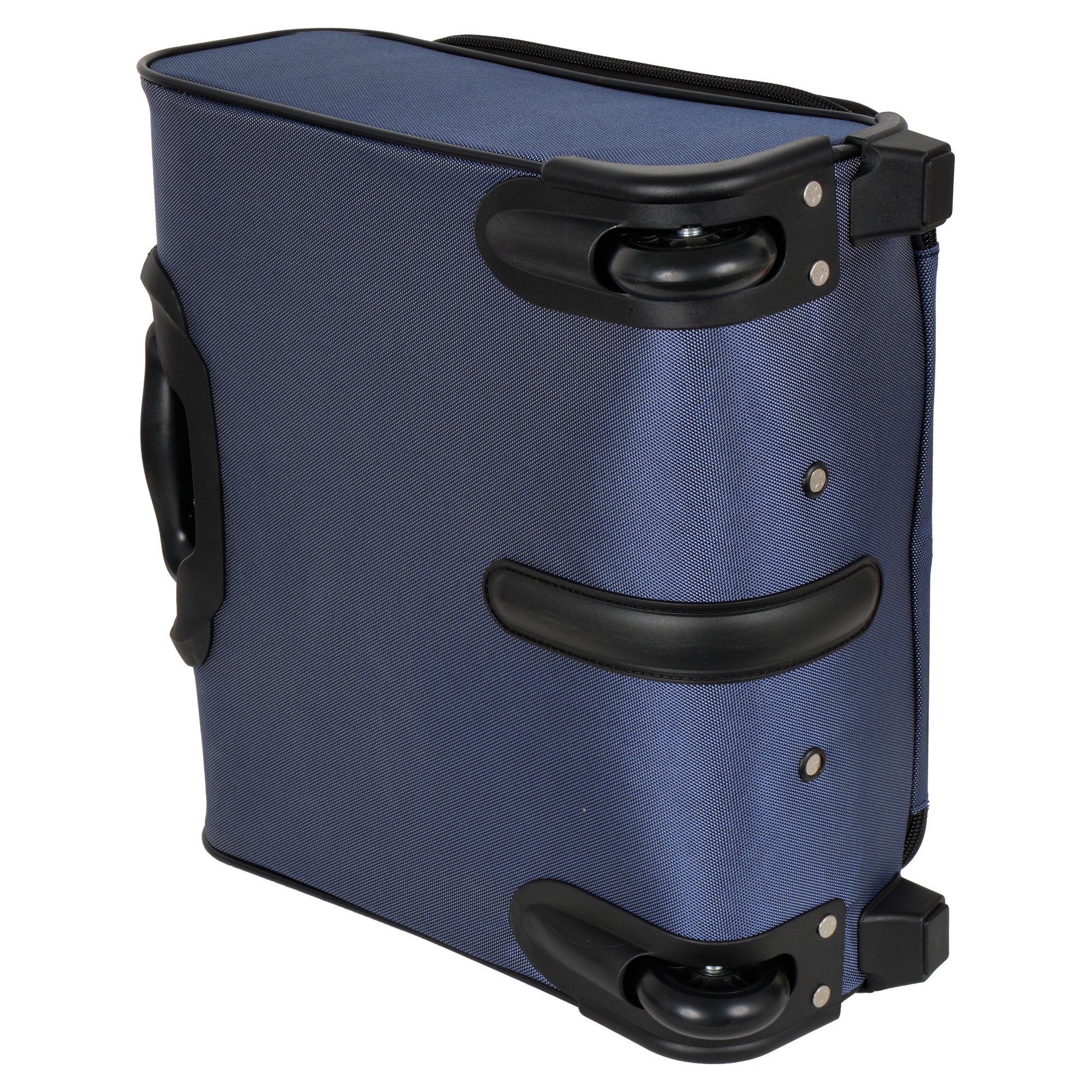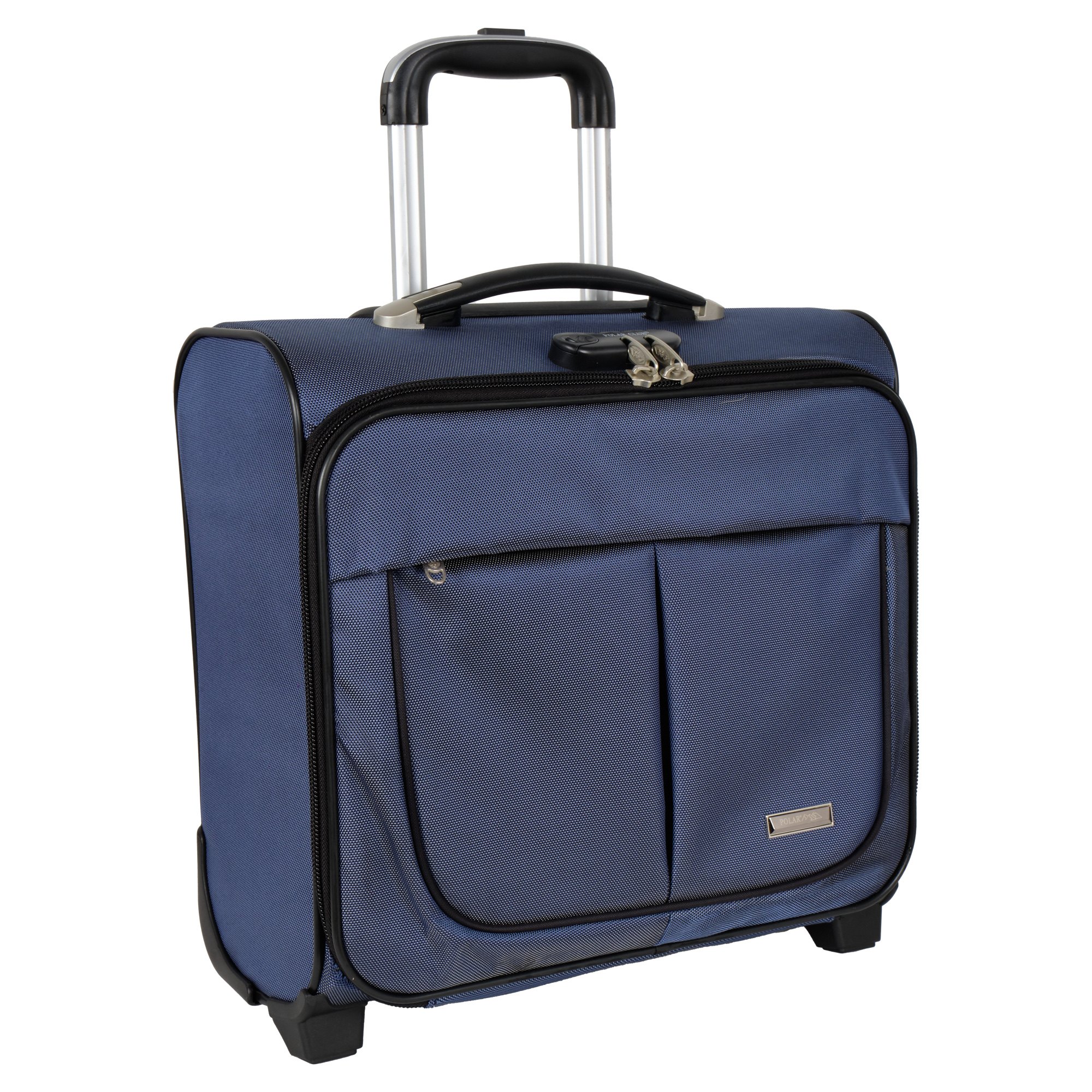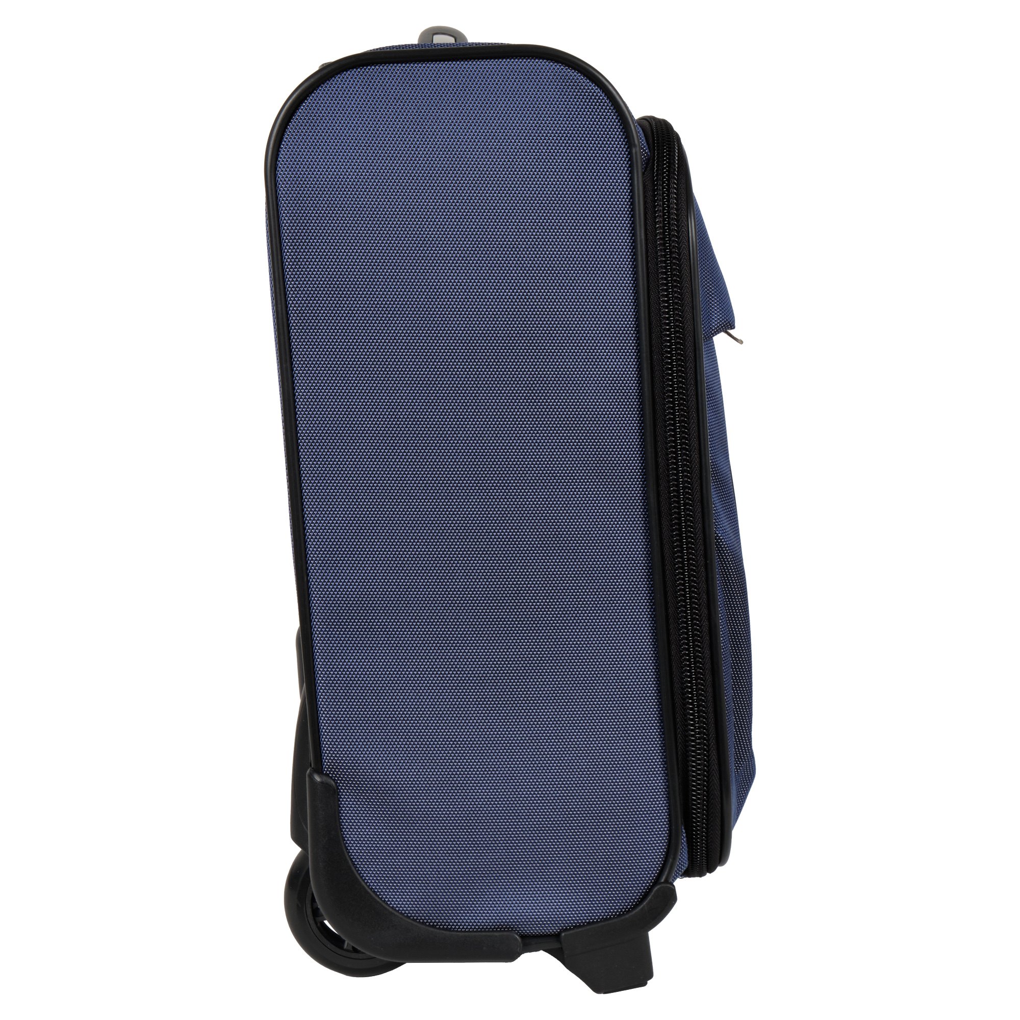 Чемодан от компании "Polar" на двух колёсах выполнен из прочного материала (нейлона и полиэстера). Подходит как ручная кладь. Чемодан закрывается на молнию, присутствует также встроенный кодовый замок.Внутри есть одно большое отделение , в котором присутствуют ремни для фиксации вещей, отделение для ноутбука и маленький карман на молнии для документов. Снаружи расположен объёмный карман на молнии для мелких вещей. У чемодана есть небольшая ручка для переноски и металлическая ручка, которая выдвигается на 67 см..