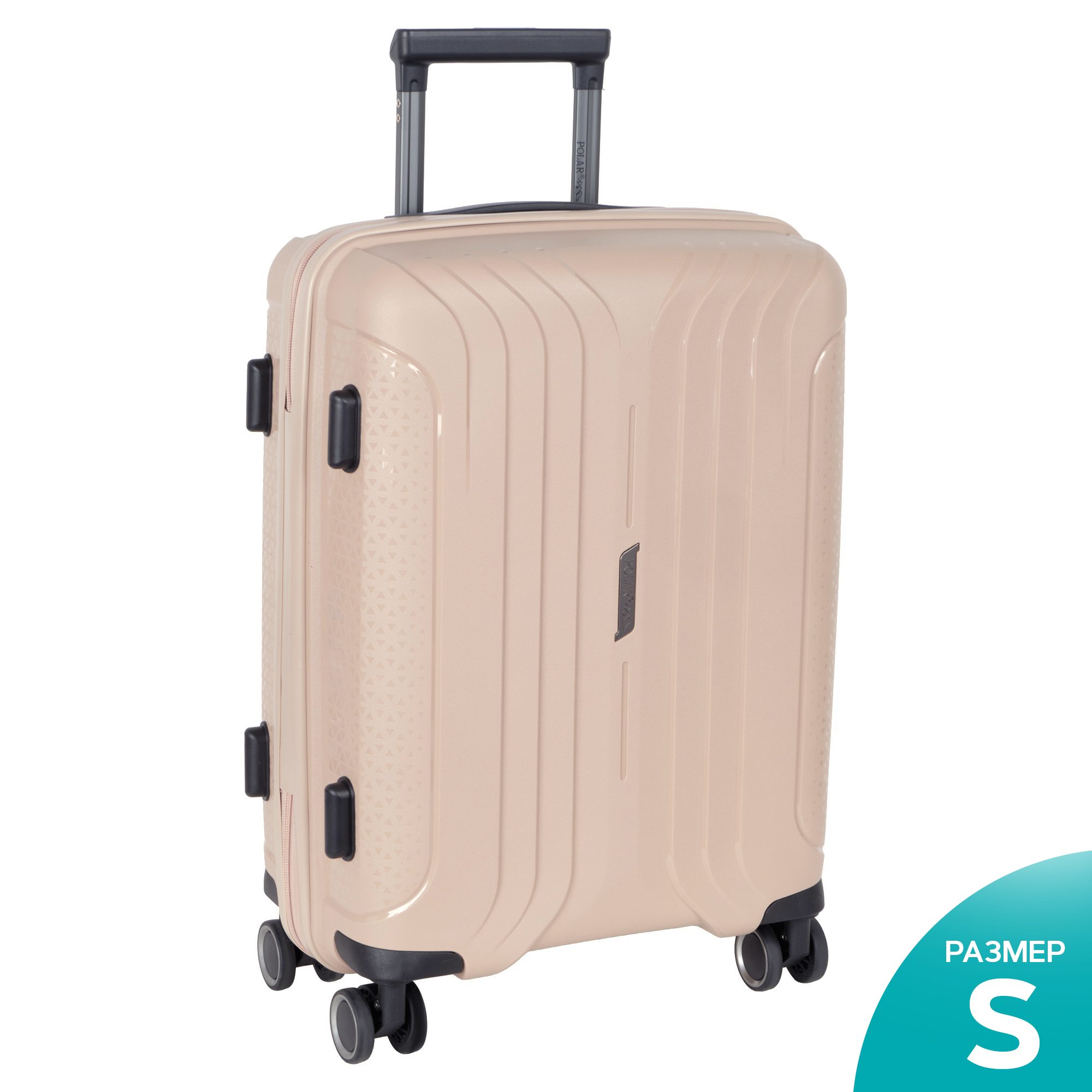 Чемодан фирмы Polar на четырех прорезиненных колесиках. Чемодан выполнен из PP-пластика (Полипропилен). Полипропилен обладает высокой прочностью, эластичностью и высокой ударостойкостью. Внутри подкладка из полиэстра. Одна секция чемодана с креплением резинками для одежды. Вторая секция застегивается на молнию для удобства упаковки вещей. Есть кодовый замок TSA.