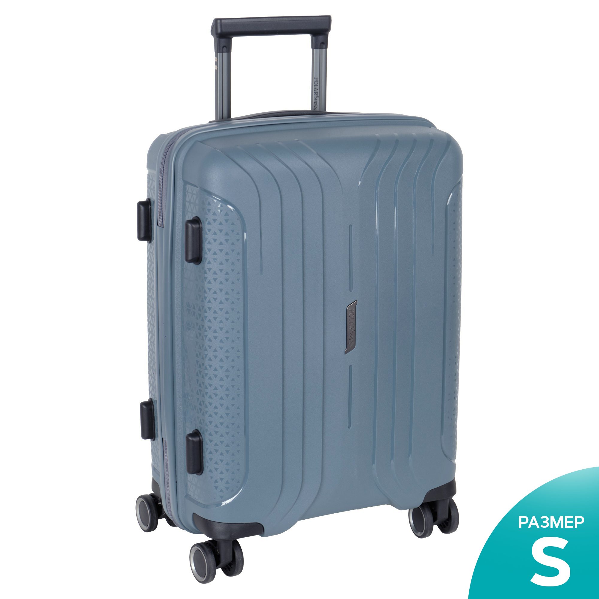 Чемодан фирмы Polar на четырех прорезиненных колесиках. Чемодан выполнен из PP-пластика (Полипропилен). Полипропилен обладает высокой прочностью, эластичностью и высокой ударостойкостью. Внутри подкладка из полиэстра. Одна секция чемодана с креплением резинками для одежды. Вторая секция застегивается на молнию для удобства упаковки вещей. Есть кодовый замок TSA.