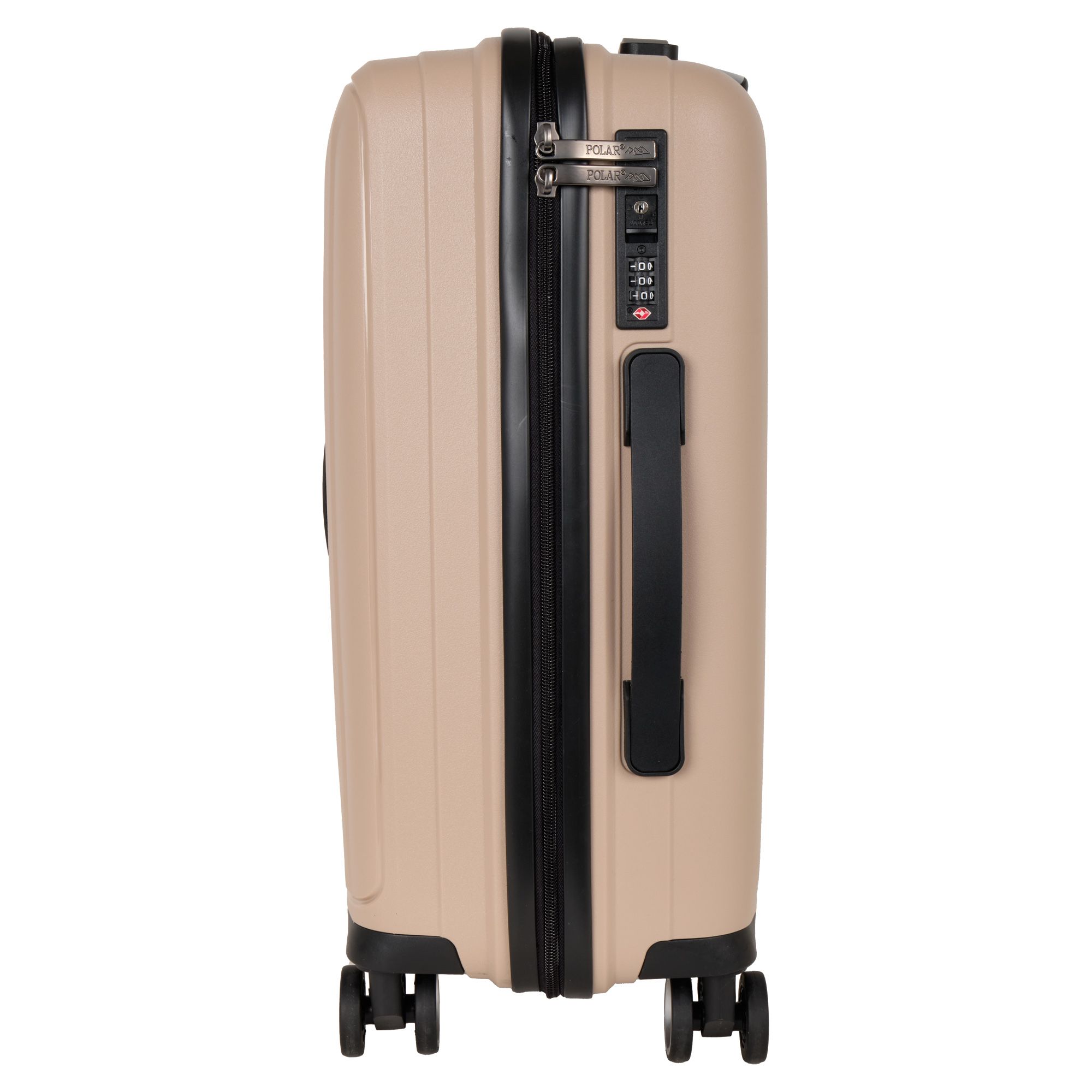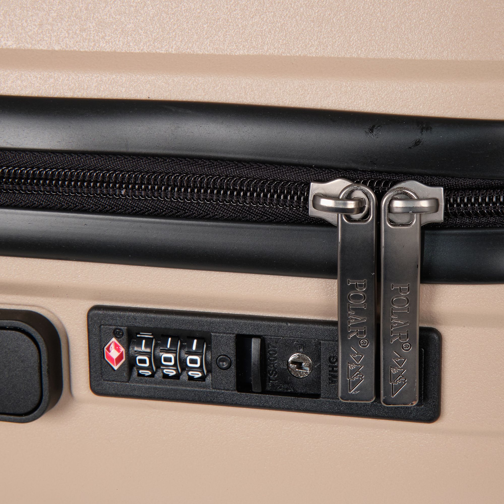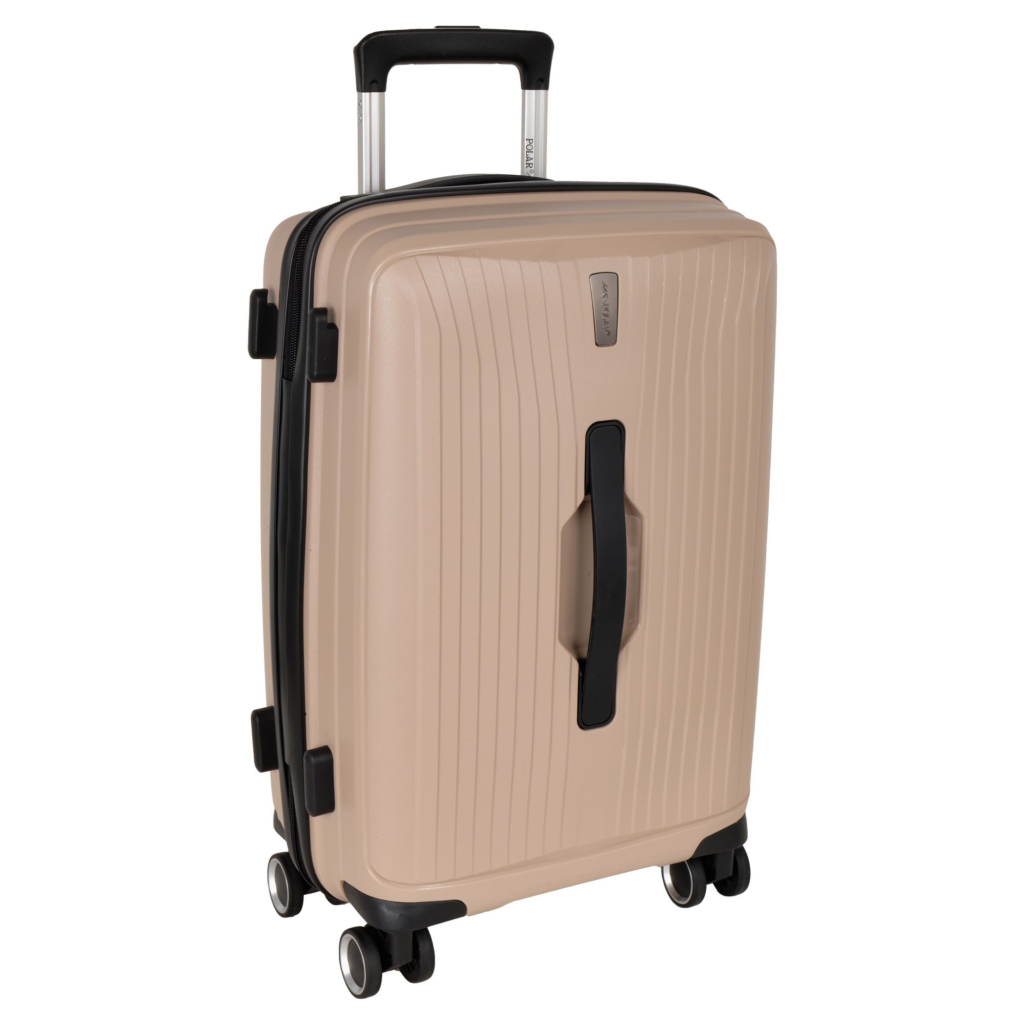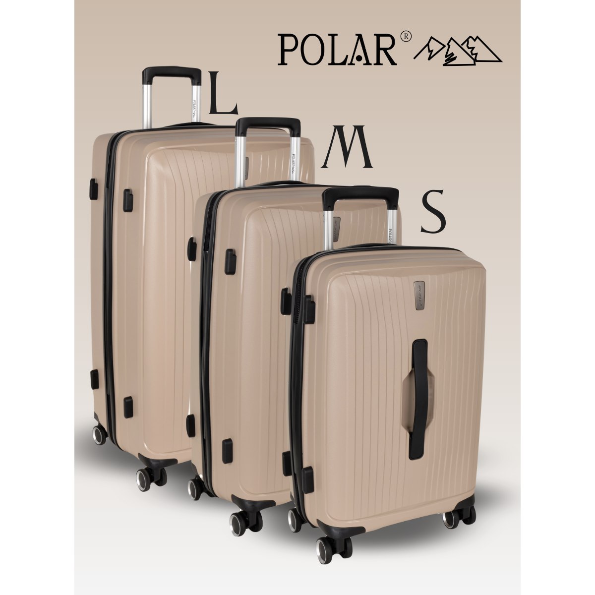 Чемодан малый фирмы POLAR, размер S, выполнен из PP (полипропилен). Основное отделение разделено на две части. Одно имеет фиксирующие ремни, второе на молнии. Выдвигающаяся ручка расположена внутри корпуса чемодана, что способствует большей прочности и защите от ударов при разгрузке/погрузке чемодана. Выдвигающаяся ручка фиксируется в трех  положениях. Есть кодовый замок. Надежные 4 колеса.