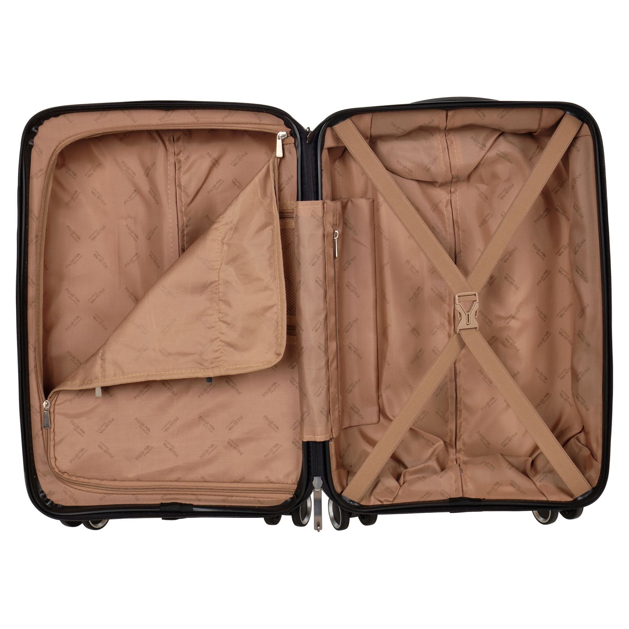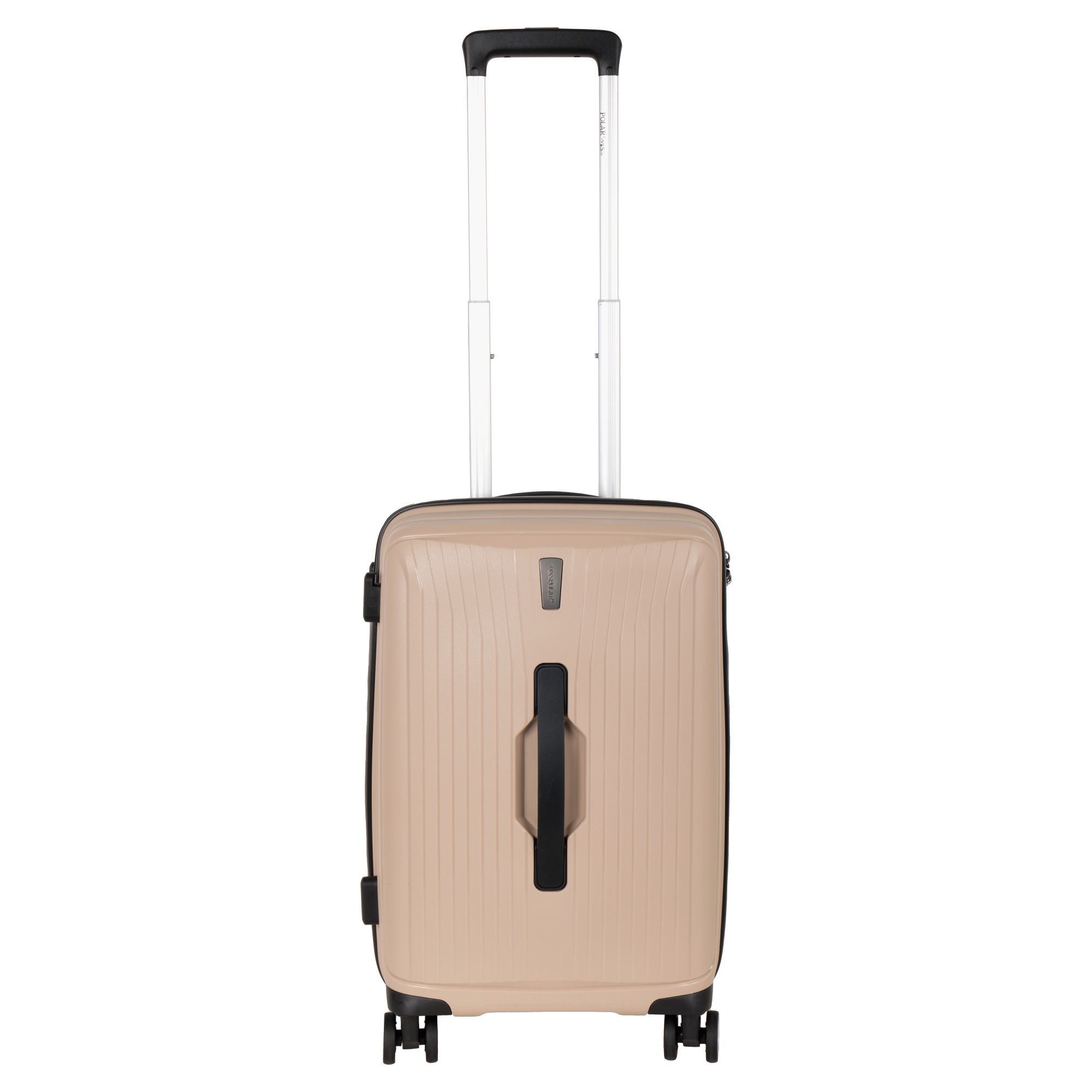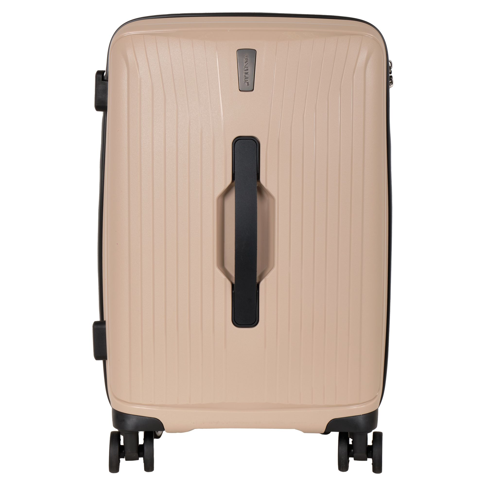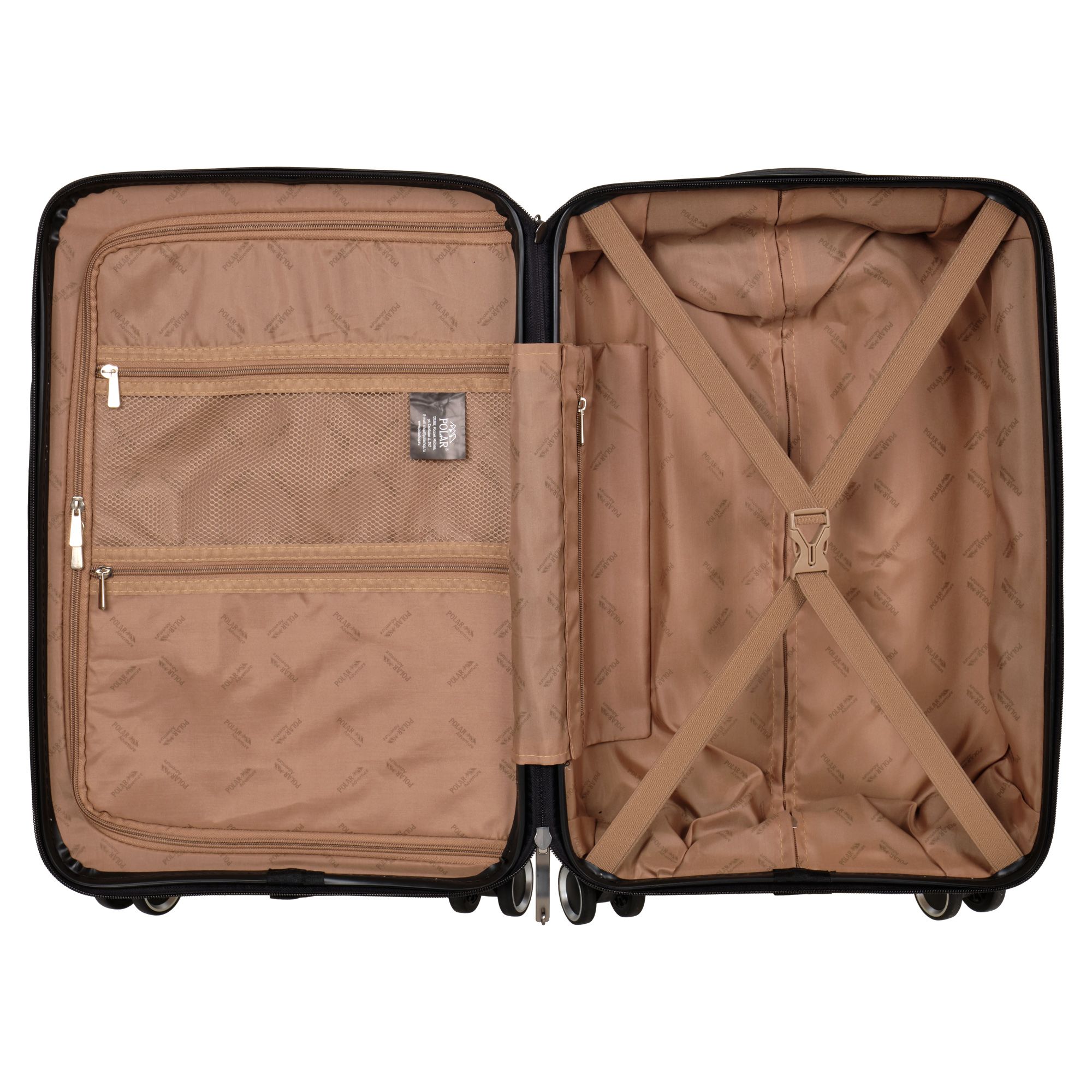 Чемодан малый фирмы POLAR, размер S, выполнен из PP (полипропилен). Основное отделение разделено на две части. Одно имеет фиксирующие ремни, второе на молнии. Выдвигающаяся ручка расположена внутри корпуса чемодана, что способствует большей прочности и защите от ударов при разгрузке/погрузке чемодана. Выдвигающаяся ручка фиксируется в трех  положениях. Есть кодовый замок. Надежные 4 колеса.