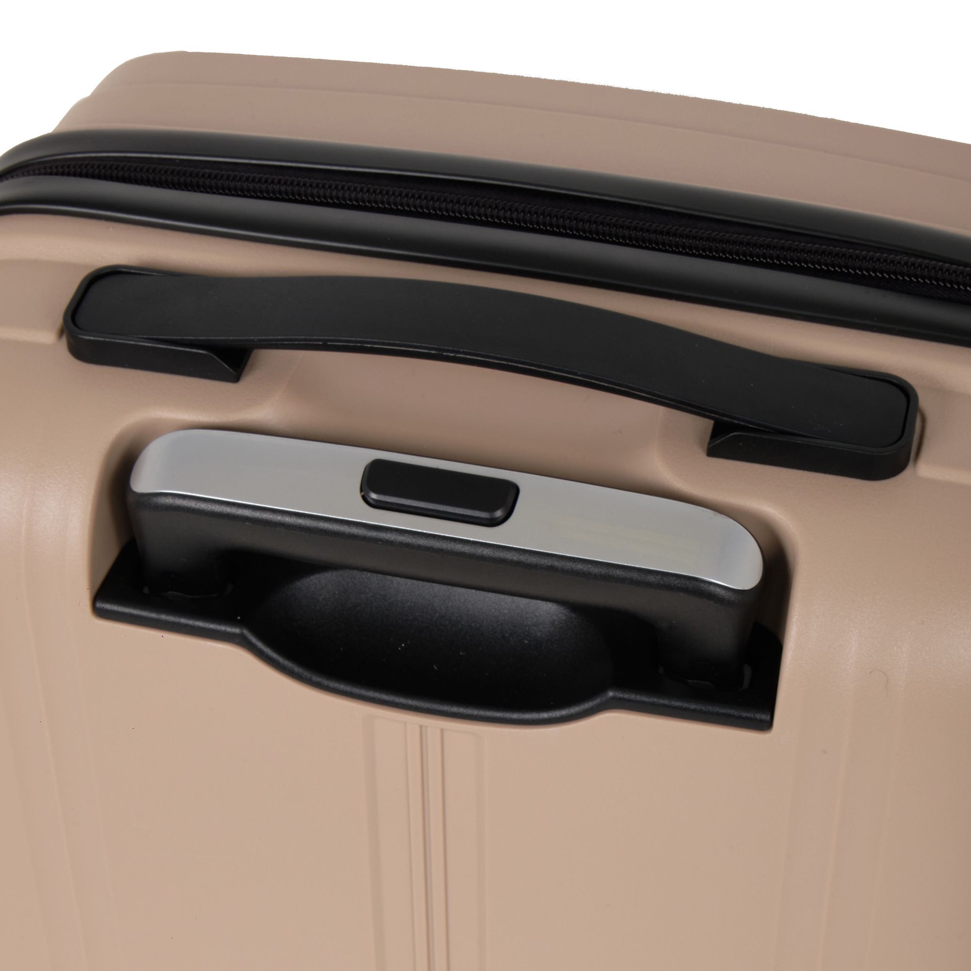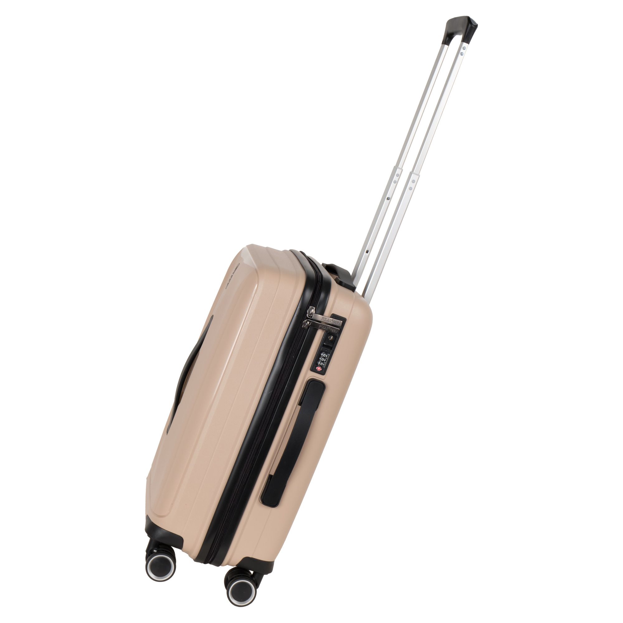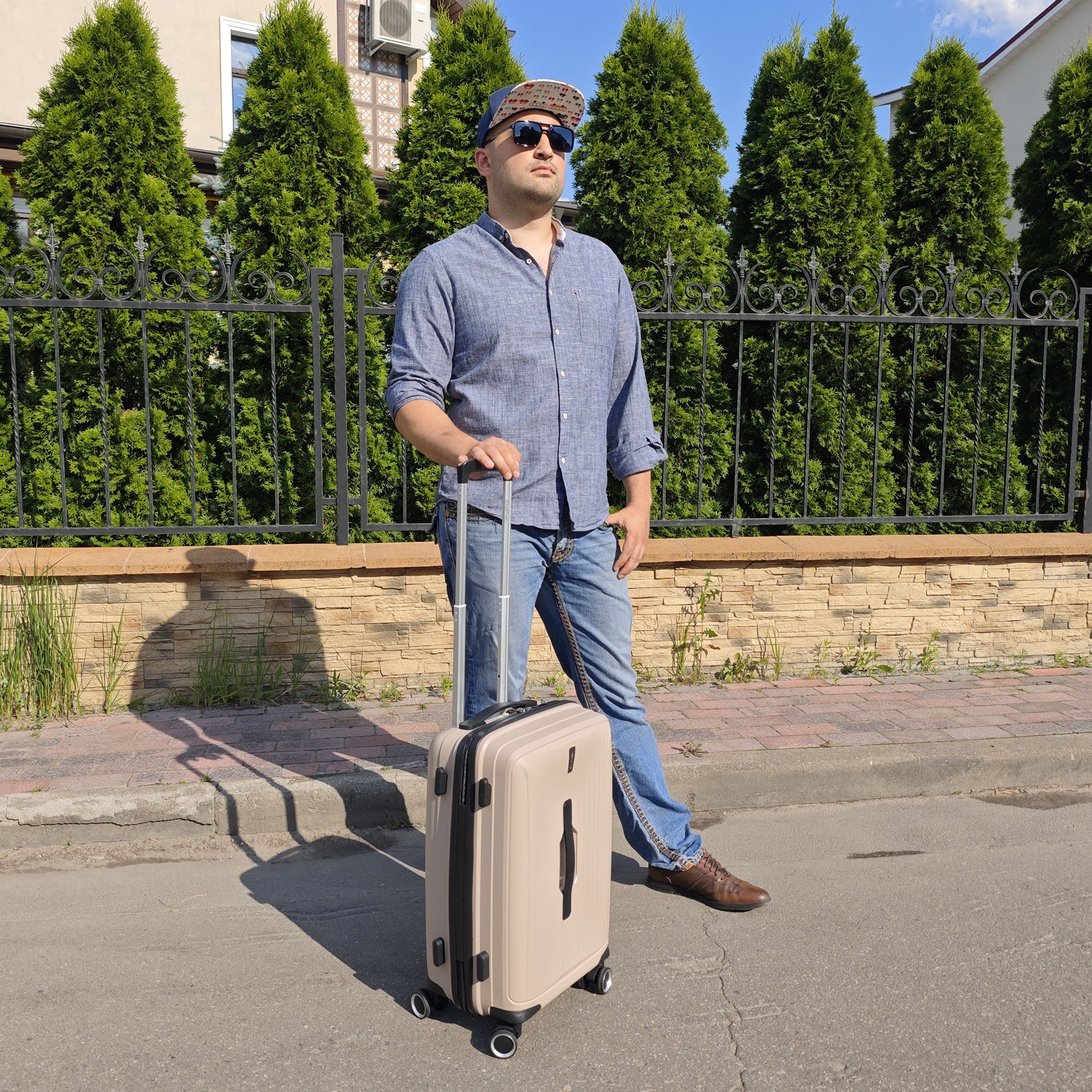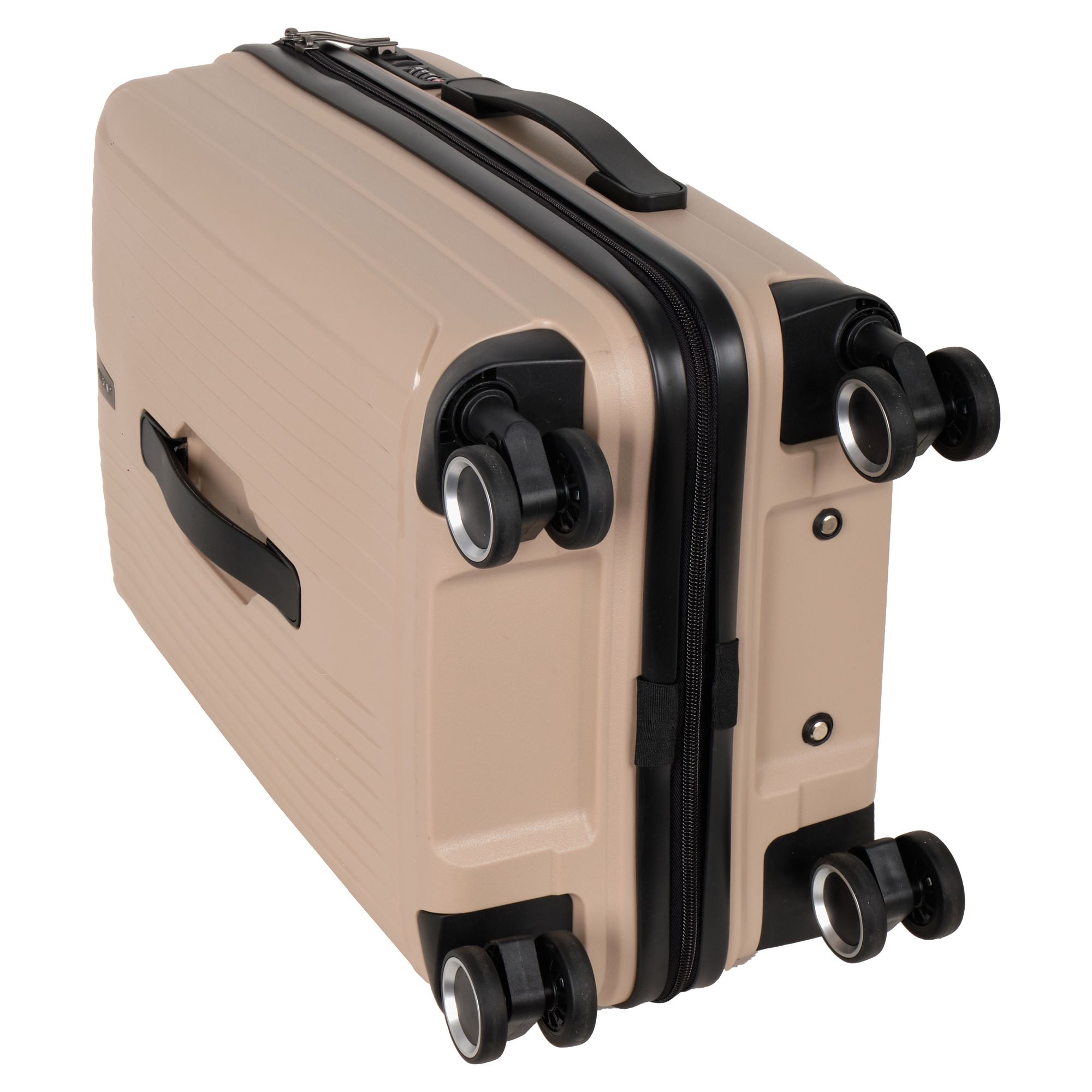 Чемодан малый фирмы POLAR, размер S, выполнен из PP (полипропилен). Основное отделение разделено на две части. Одно имеет фиксирующие ремни, второе на молнии. Выдвигающаяся ручка расположена внутри корпуса чемодана, что способствует большей прочности и защите от ударов при разгрузке/погрузке чемодана. Выдвигающаяся ручка фиксируется в трех  положениях. Есть кодовый замок. Надежные 4 колеса.