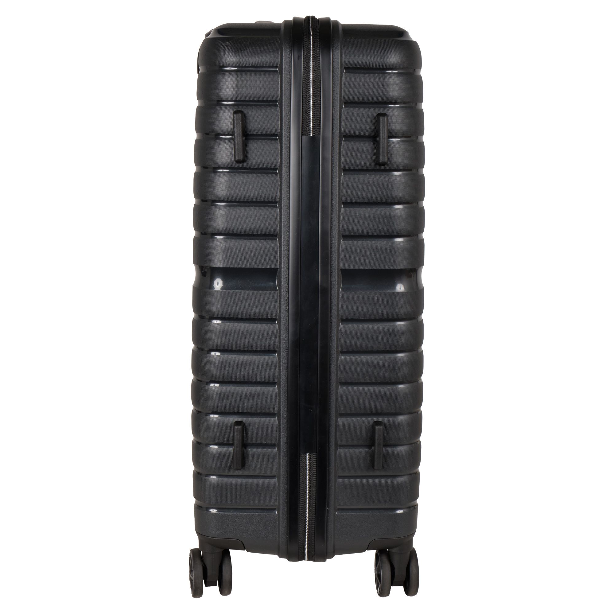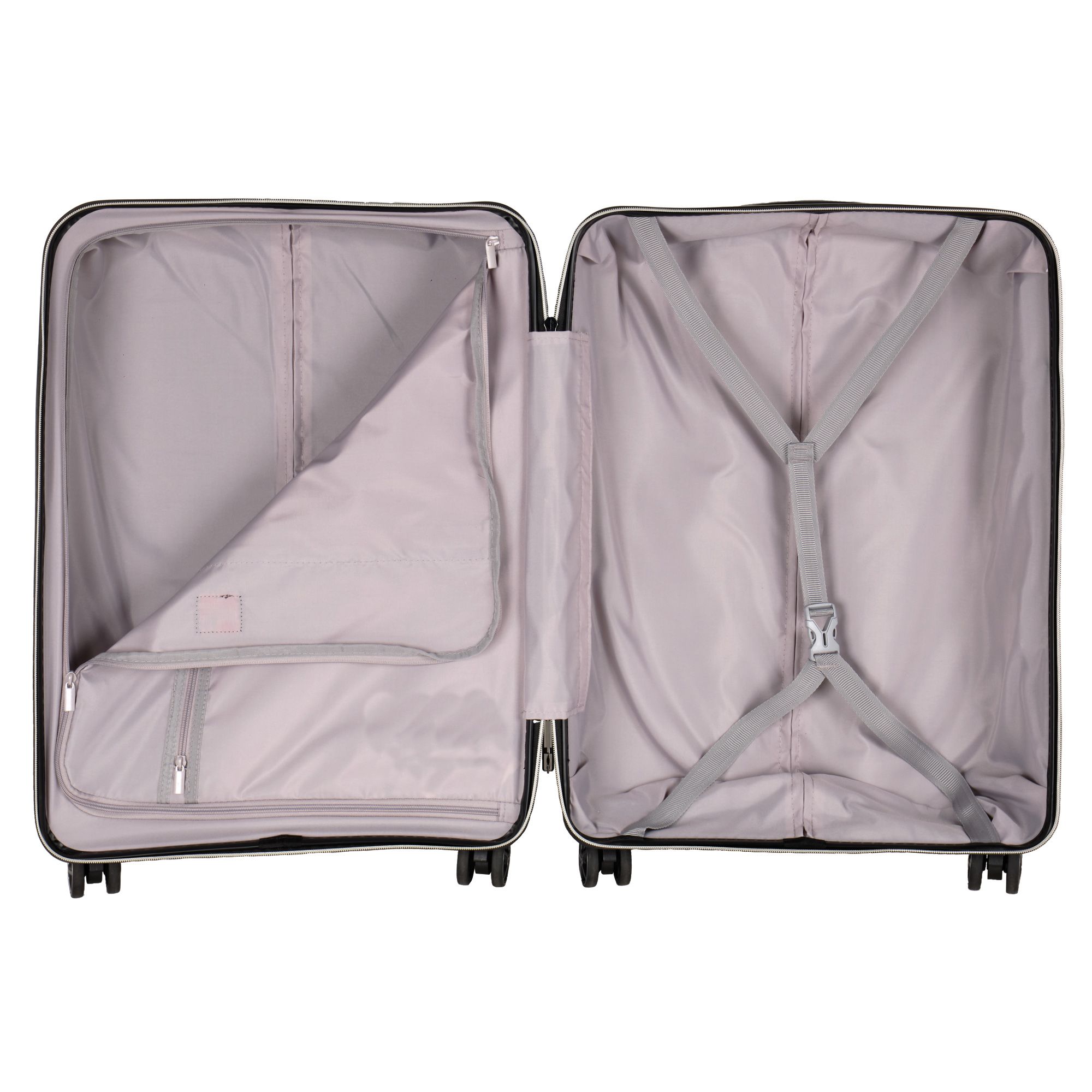 Чемодан фирмы Polar на четырех прорезиненных колесиках. Чемодан выполнен из PP-пластика (Полипропилен). Полипропилен обладает высокой прочностью, эластичностью и высокой ударостойкостью. Внутри подкладка из полиэстра. Одна секция чемодана с креплением резинками для одежды. Вторая секция застегивается на молнию для удобства упаковки вещей. Есть кодовый замок TSA. Выдвижная ручка, максимальная высота которой составляет 105 см.