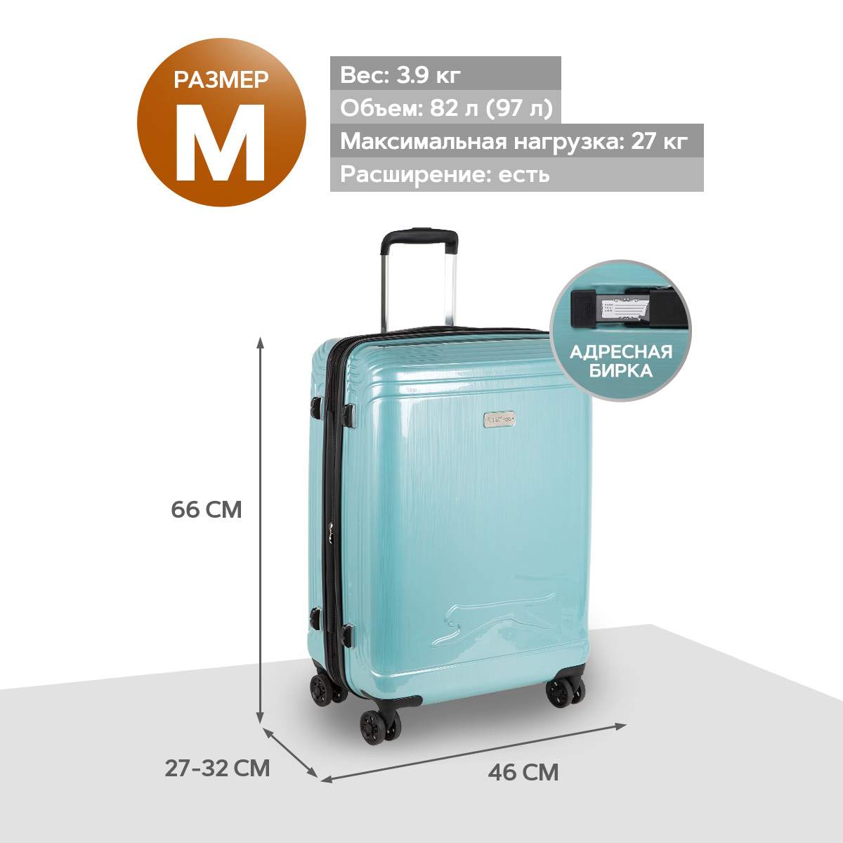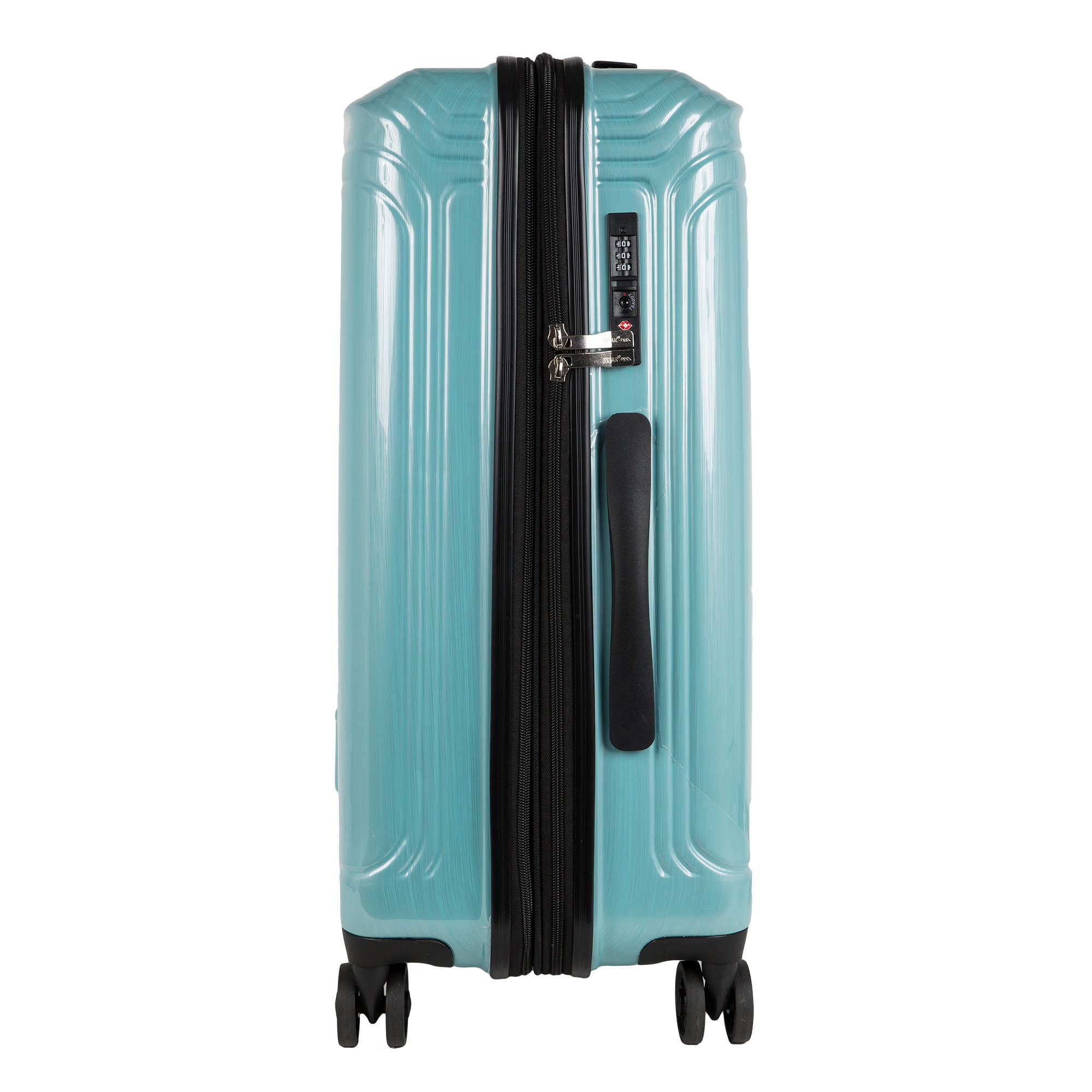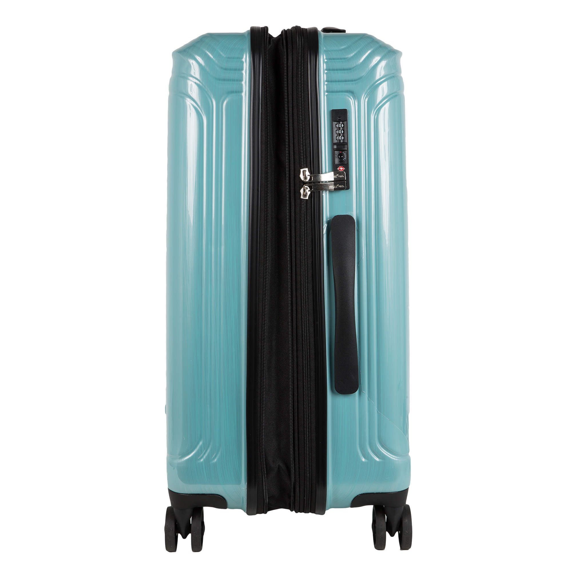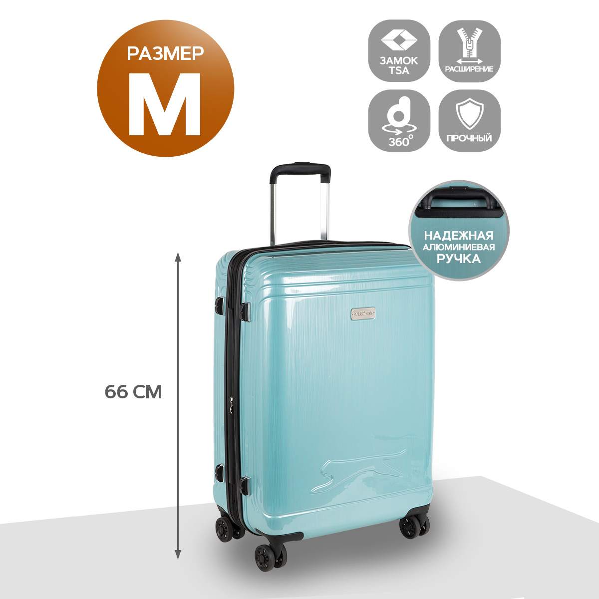Средний пластиковый чемодан Спиннер 24". Основное отделение разделено на две части. Одно имеет фиксирующие ремни, второе на молнии. Выдвигающаяся ручка расположена внутри корпуса чемодана, что способствует большей прочности и защите от ударов при разгрузке/погрузке чемодана. Выдвигающаяся ручка фиксируется в двух положениях. Чемодан увеличивается в объеме за счет раздвижения молнии. Есть встроенный кодовый замок с таможенным ключом TSA. Надежные 4 колеса диаметром 4.8 см.