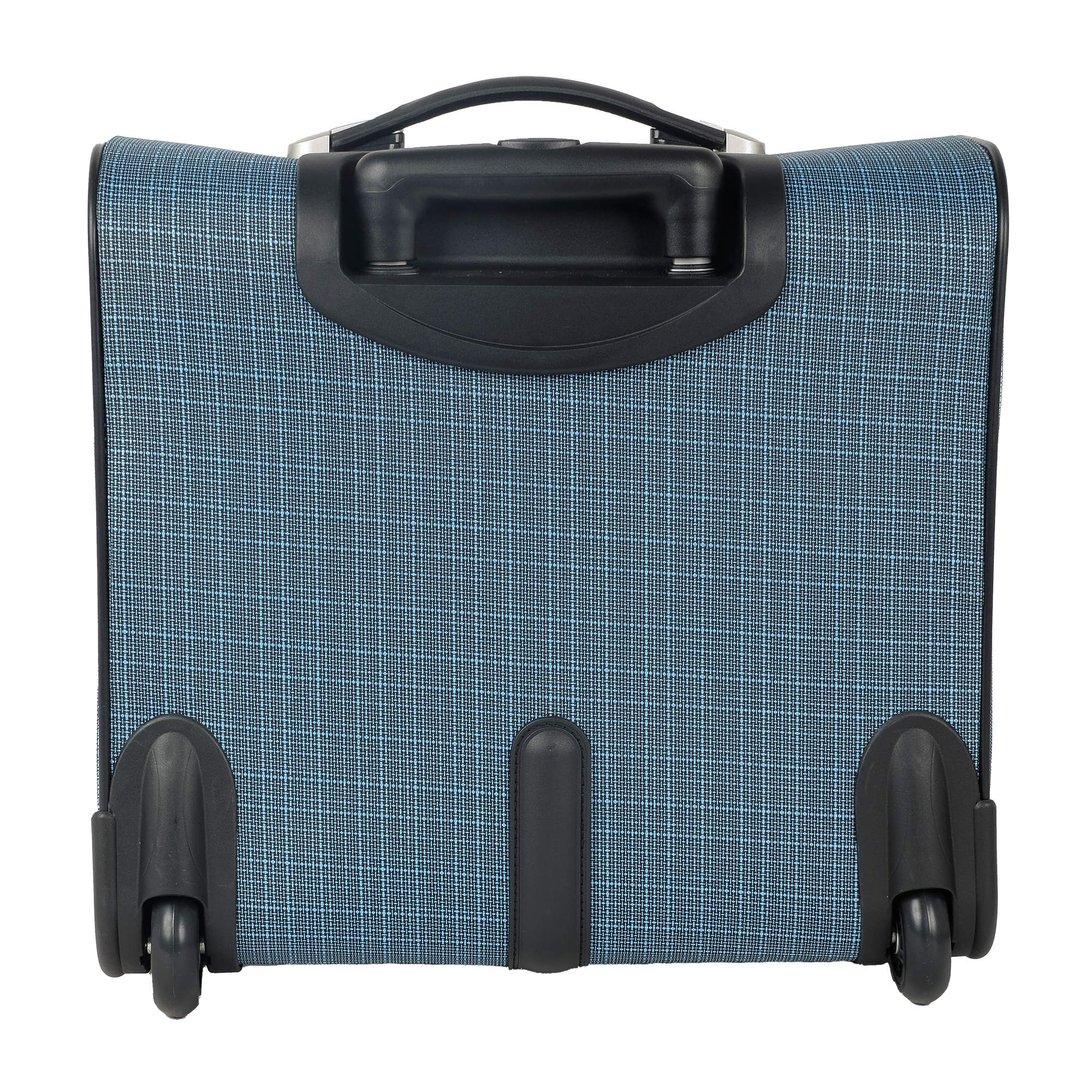 Чемодан от компании "Polar" на двух колёсах выполнен из прочного материала жаккарда. Подходит как ручная кладь. Чемодан закрывается на молнию, присутствует также встроенный кодовый замок.Внутри есть одно большое отделение , в котором присутствуют ремни для фиксации вещей. Снаружи расположен объёмный карман на молнии для мелких вещей. У чемодана есть небольшая ручка для переноски и металлическая ручка, которая выдвигается на 67 см.