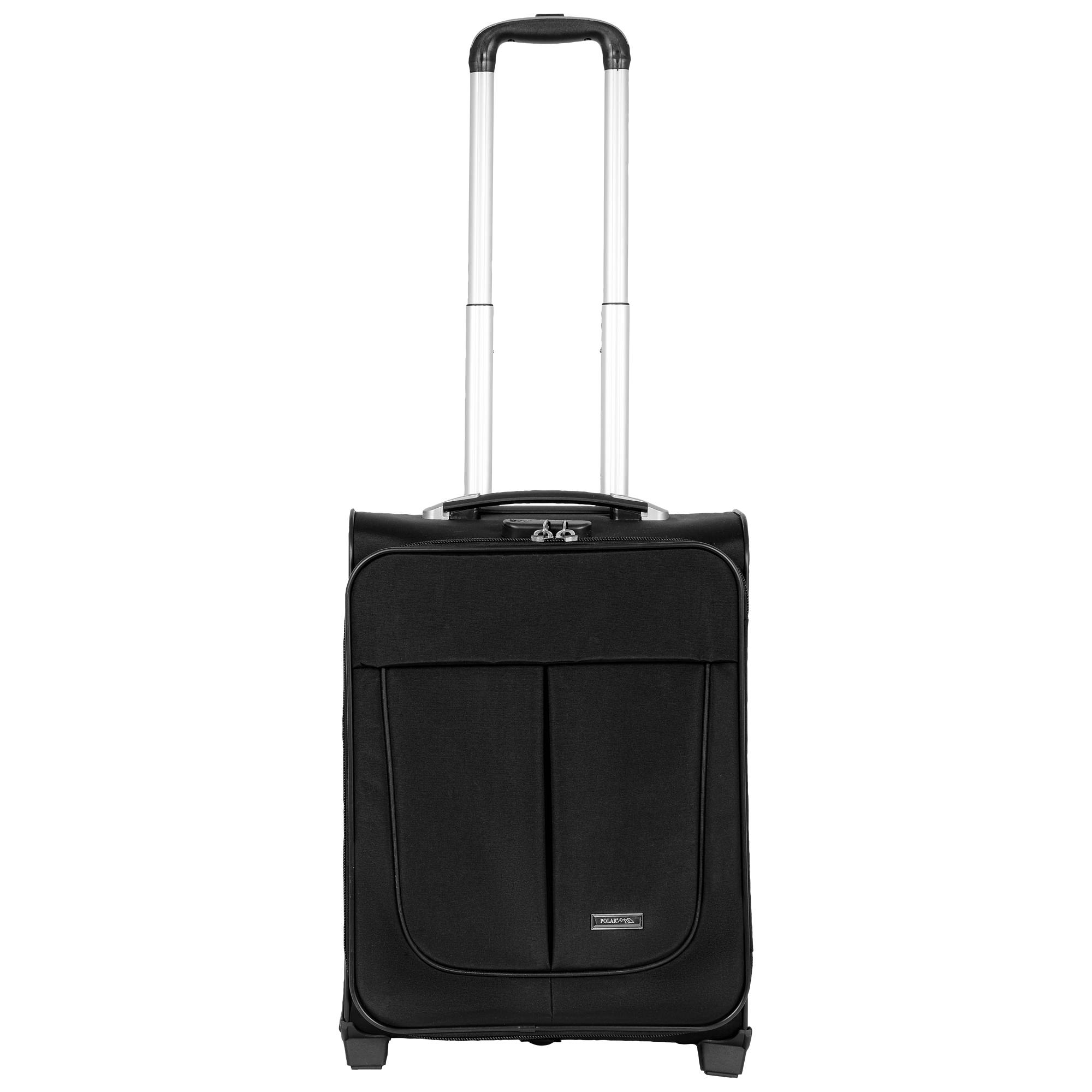 Чемодан от компании "Polar" на двух колёсах выполнен из прочного материала (нейлона и полиэстера). Чемодан закрывается на молнию, присутствует  также встроенный кодовый замок.Внутри есть одно большое отделение , в котором присутствуют ремни для фиксации вещей, отделение для ноутбука и маленький карман на молнии для документов. Снаружи расположен объёмный карман на молнии для мелких вещей. У чемодана есть небольшая ручка для переноски и металлическая ручка, которая выдвигается на 50см.