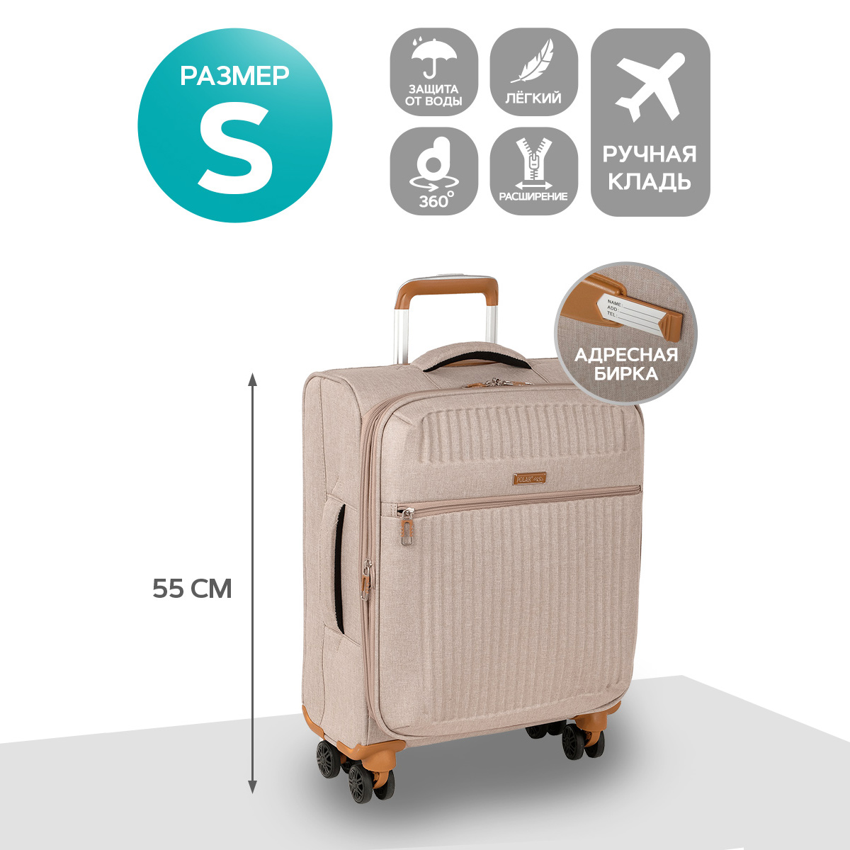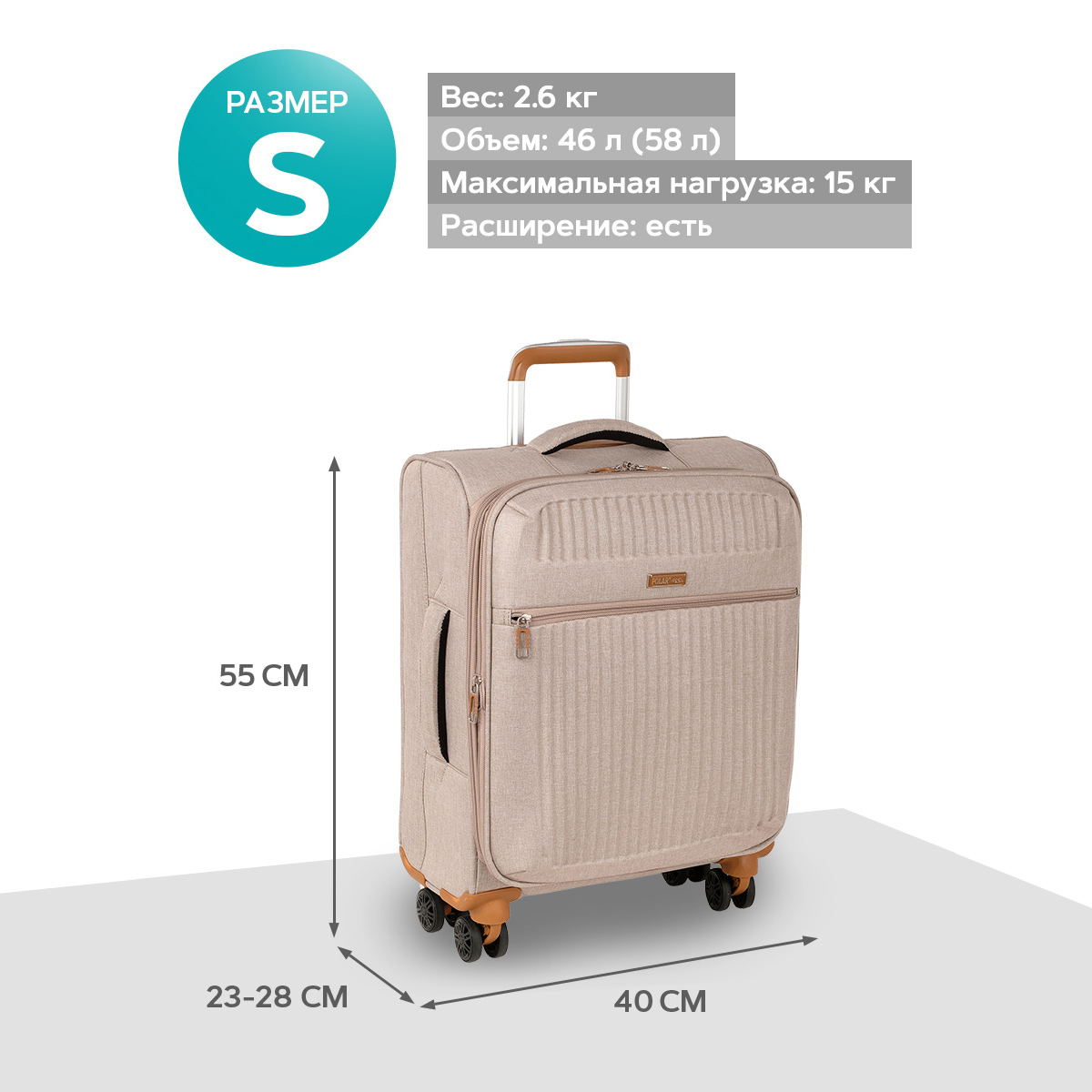 Суперлегкий чемодан POLAR, выполнен из плотного водоотталкивающего полиэстера, устойчивого к загрязнениям.