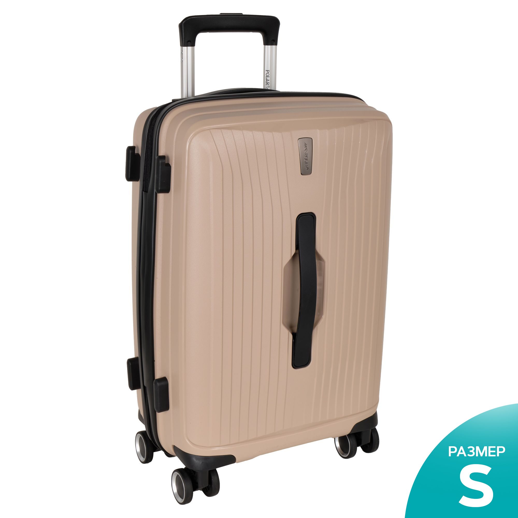 Чемодан малый фирмы POLAR, размер S, выполнен из PP (полипропилен). Основное отделение разделено на две части. Одно имеет фиксирующие ремни, второе на молнии. Выдвигающаяся ручка расположена внутри корпуса чемодана, что способствует большей прочности и защите от ударов при разгрузке/погрузке чемодана. Выдвигающаяся ручка фиксируется в трех положениях. Есть кодовый замок. Надежные 4 колеса.