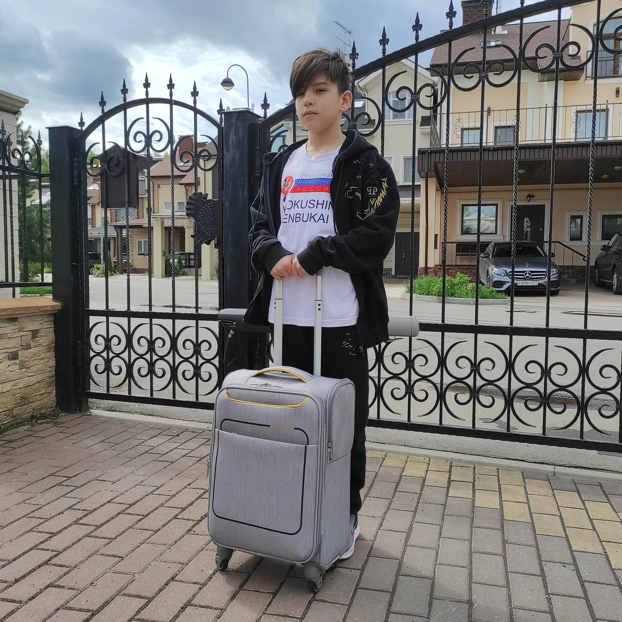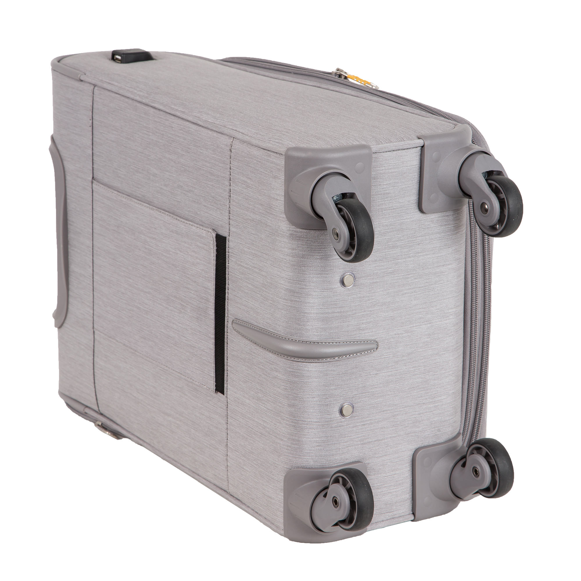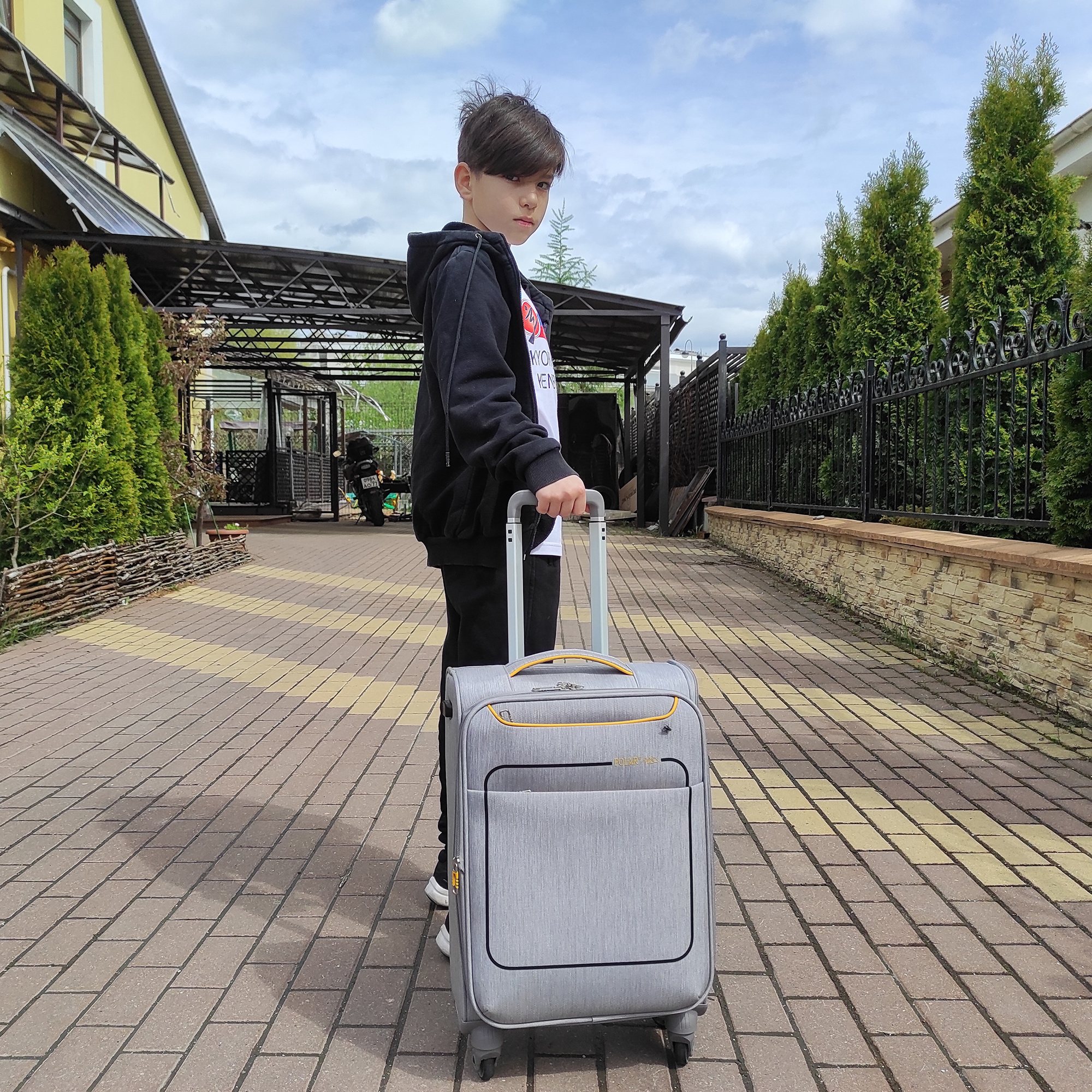 Чемодан фирмы Polar. Подходит как Ручная кладь. Внутри имеются фиксирующие ремни и карман на молнии. Так же внутри есть два сетчатых кармана с внешним выходом USB для подзарядки от powerbank. Основное отделение можно увеличить в объеме, расстегнув молнию, при этом чемодан увеличивается в глубину на 5 см. Максимальный объем при увеличении 45.6 л.. Ручка выдвигается в два сложения до 105 см и расположена внутри корпуса чемодана. Снаружи на передней стенке — два больших кармана на молнии и один боковой карман.На задней стенке чемодана предусмотрено крепление для выдвижной ручки большого чемодана. Надежные четыре колеса на подшипниках, вращаются на 360° градусов.