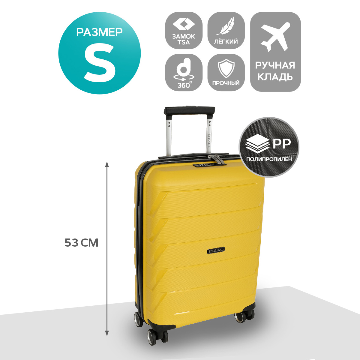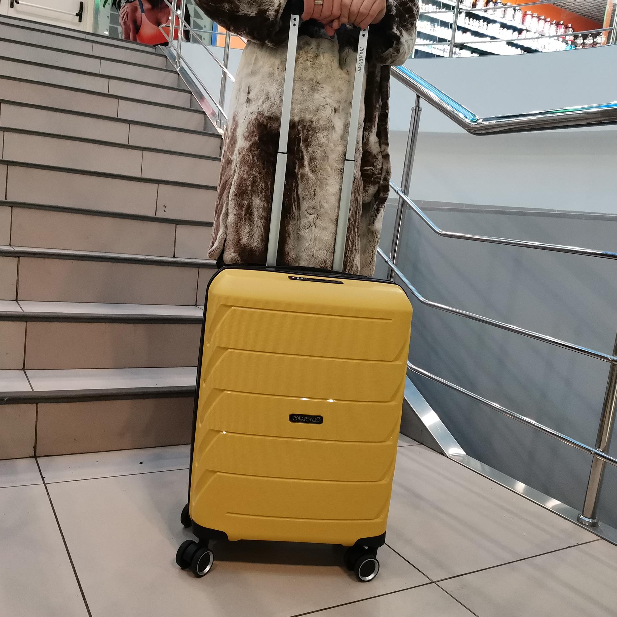 Чемодан малый фирмы POLAR, размер S, выполнен из PP (полипропилен). Основное отделение разделено на две части. Одно имеет фиксирующие ремни, второе на молнии. Выдвигающаяся ручка расположена внутри корпуса чемодана, что способствует большей прочности и защите от ударов при разгрузке/погрузке чемодана. Выдвигающаяся ручка фиксируется в двух положениях. Есть кодовый замок. Надежные 4 колеса.