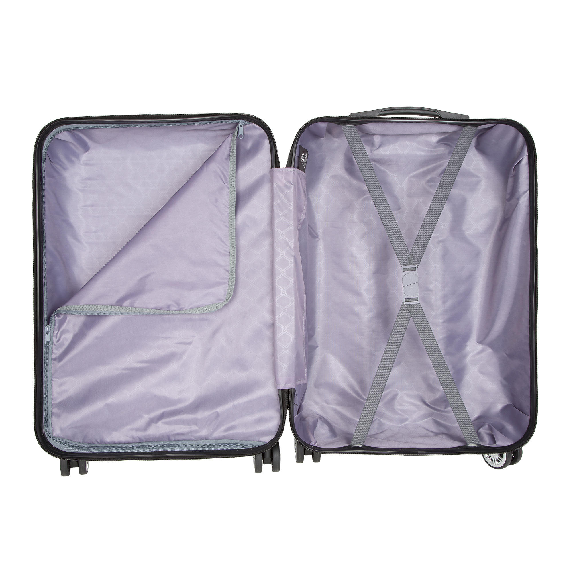 Чемодан на четырех колесиках со встроенным замком TSA и выдвижной тележкой. Внутри подкладка из полиэстра.