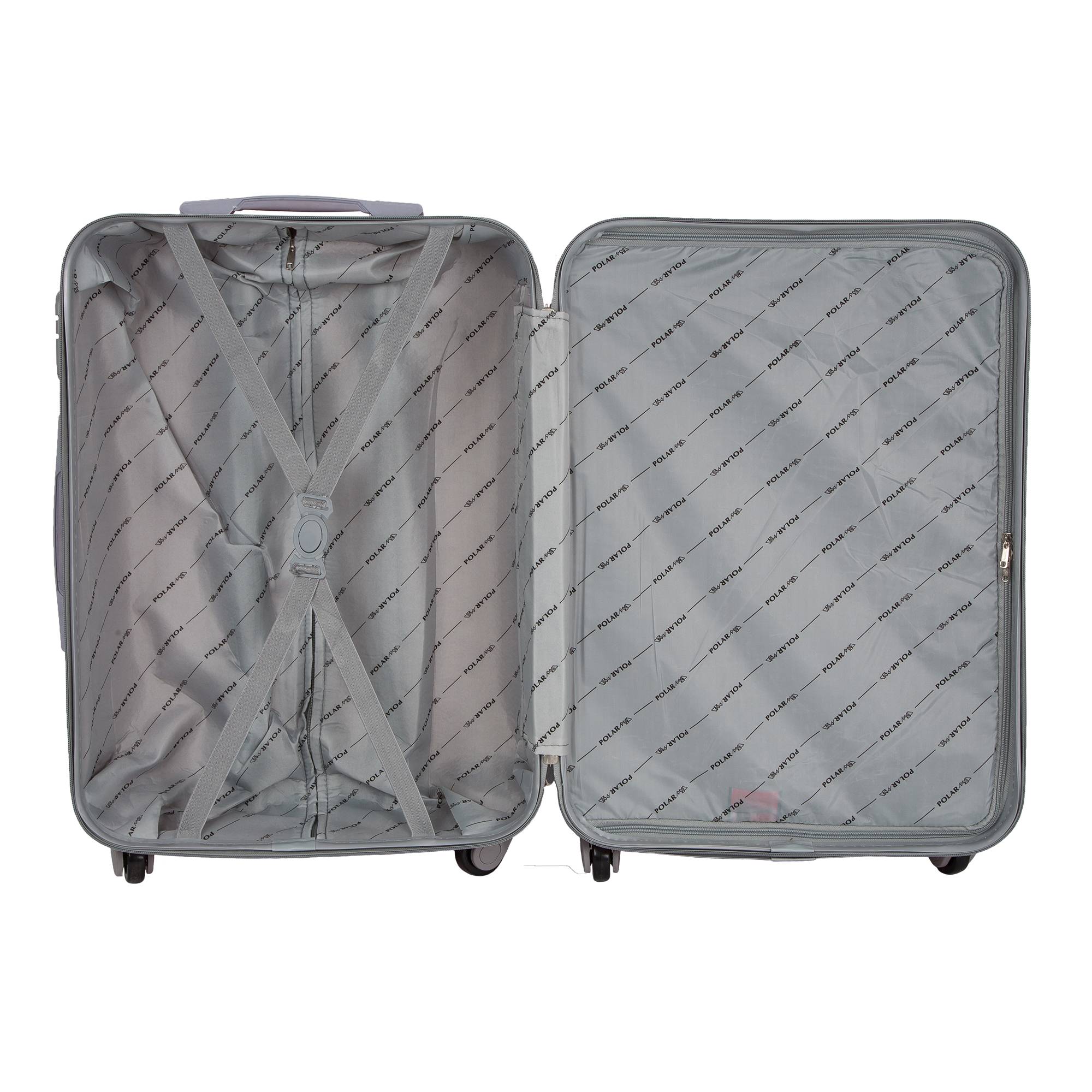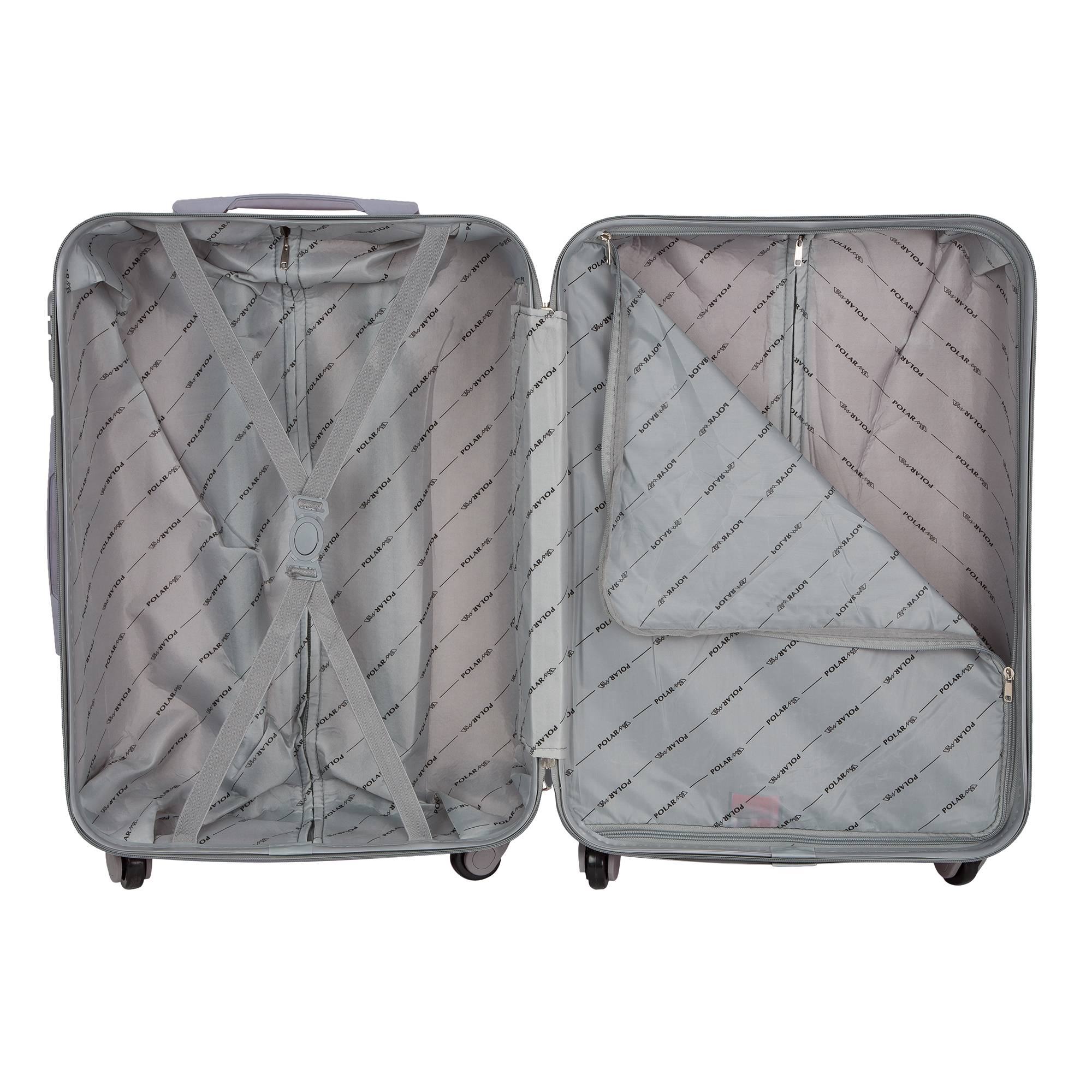 Одна секция чемодана с креплением резинками для одежды.Вторая секция застегивается на молнию для удобства упаковки вещей.