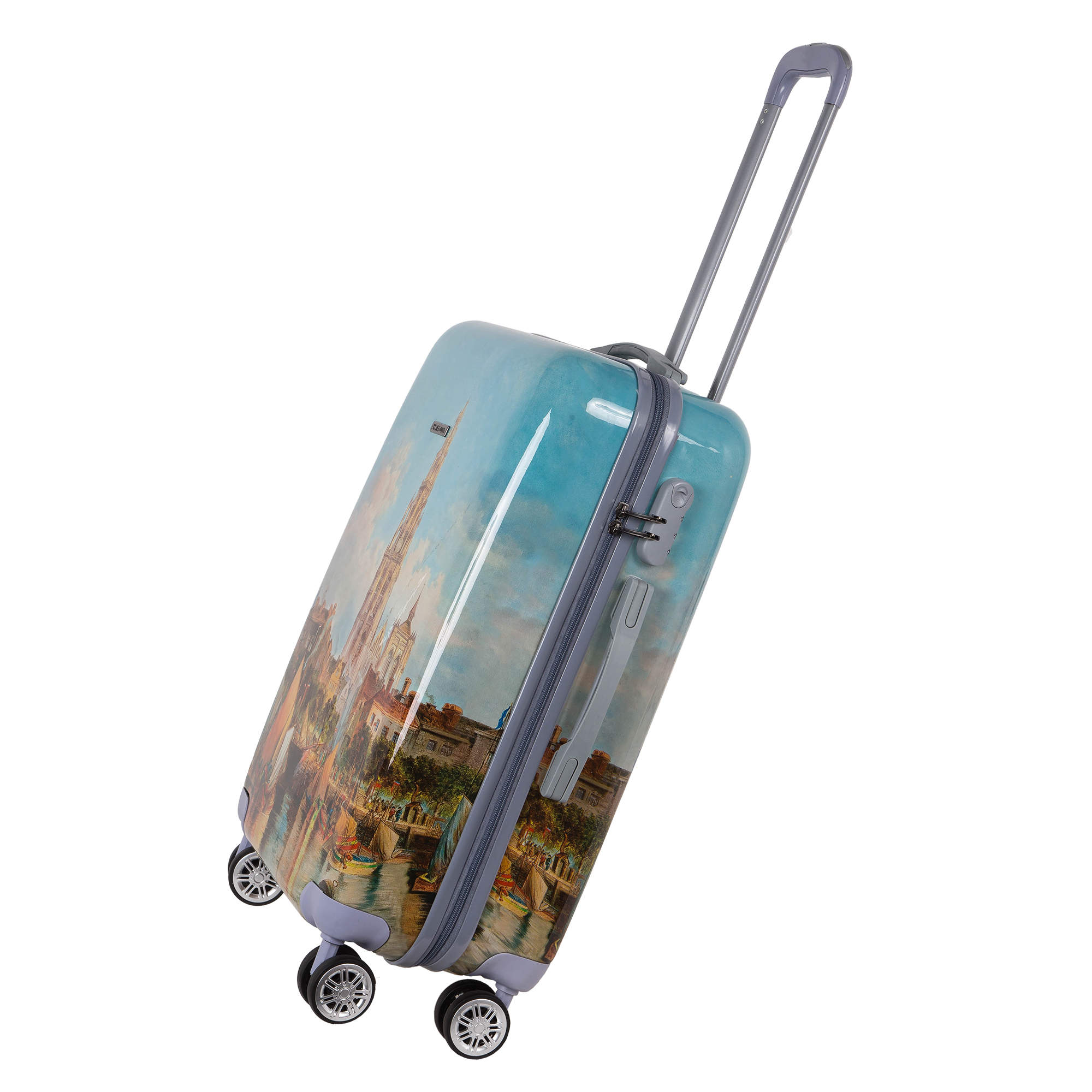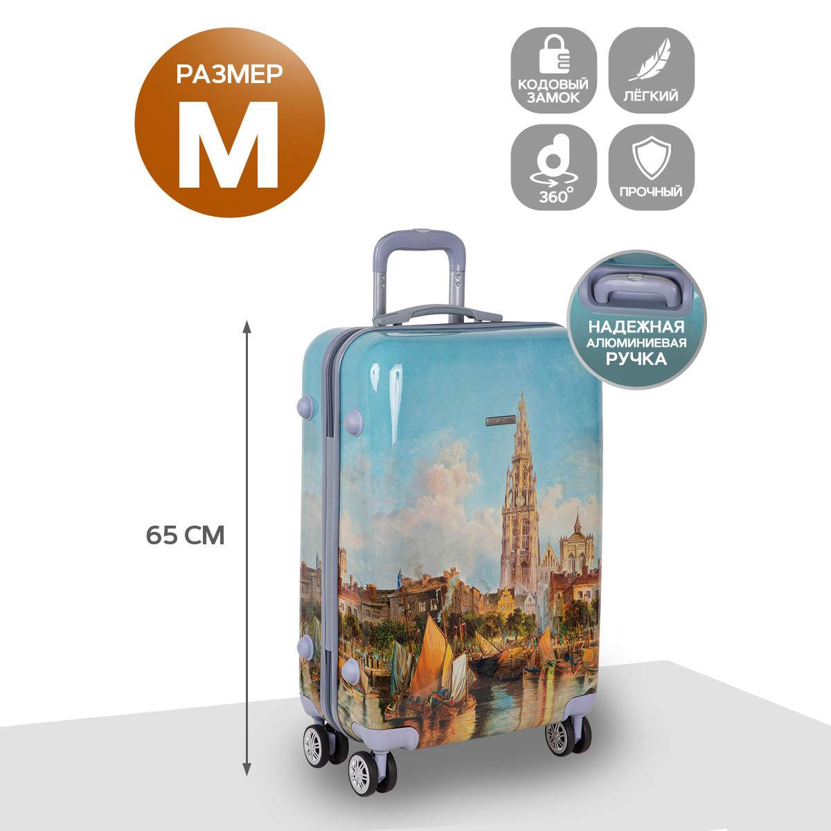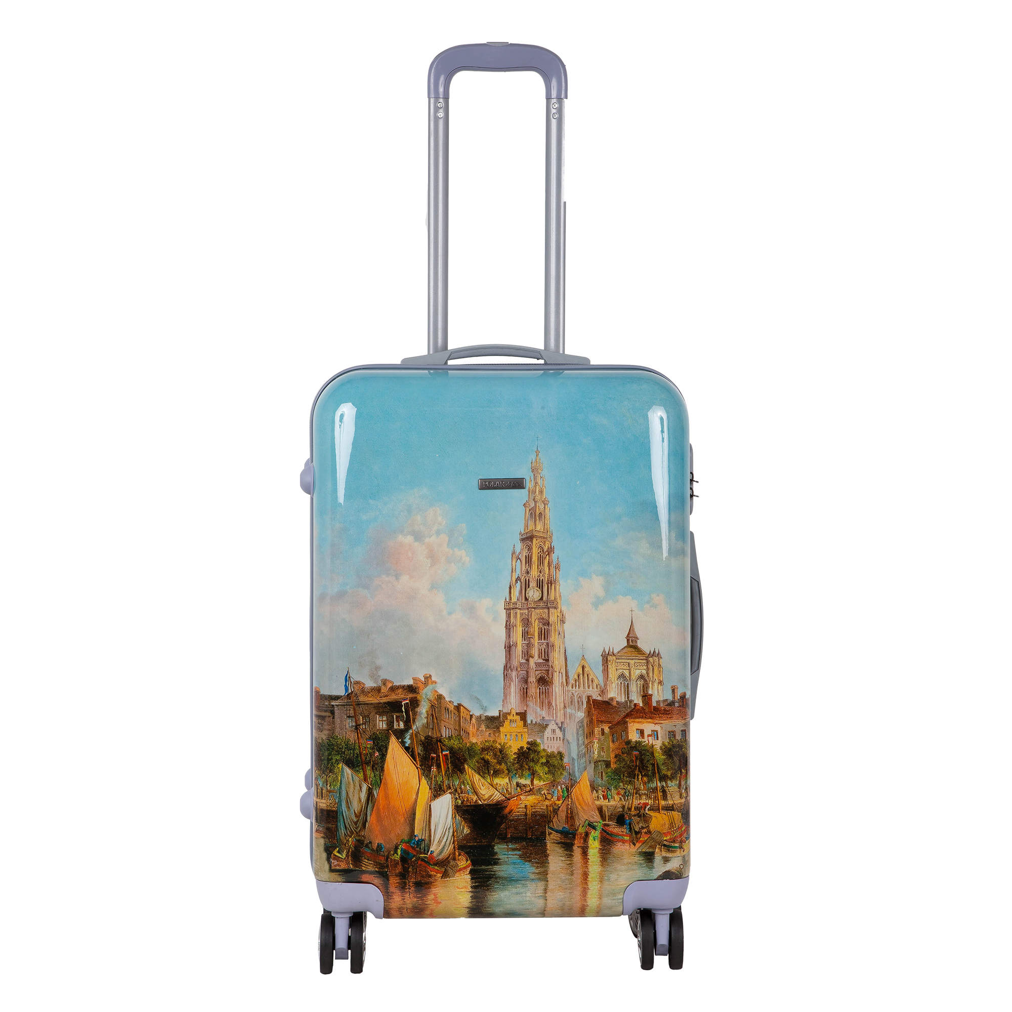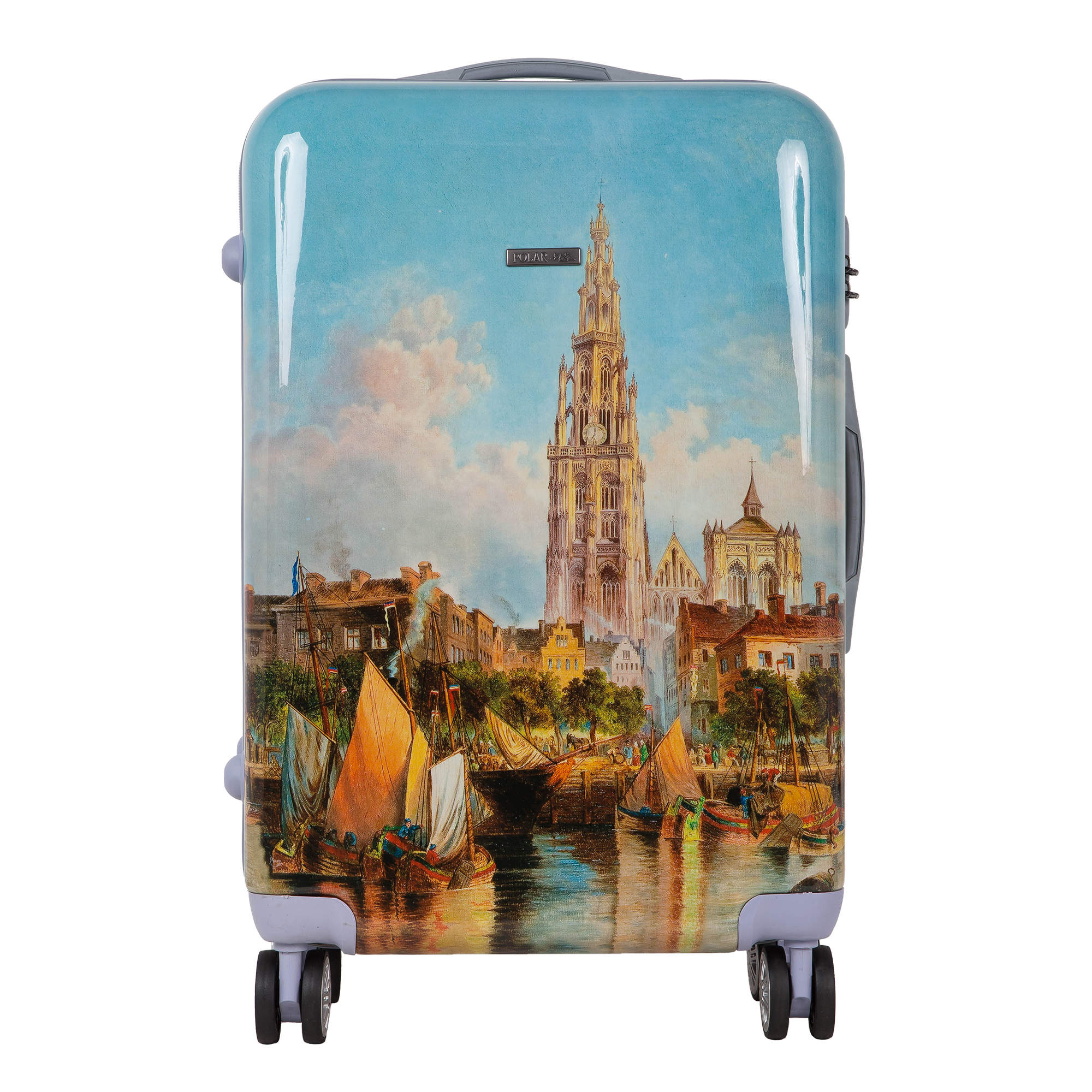 Чемодан фирмы POLAR, выполнен из ABS-пластика. Основное отделение разделено на две части. Одно имеет фиксирующие ремни, второе на молнии. Выдвигающаяся ручка расположена внутри корпуса чемодана, что способствует большей прочности и защите от ударов при разгрузке/погрузке чемодана. Выдвигающаяся ручка фиксируется в двух положениях. Есть кодовый замок. Надежные 4 колеса диаметром 4.8 см.