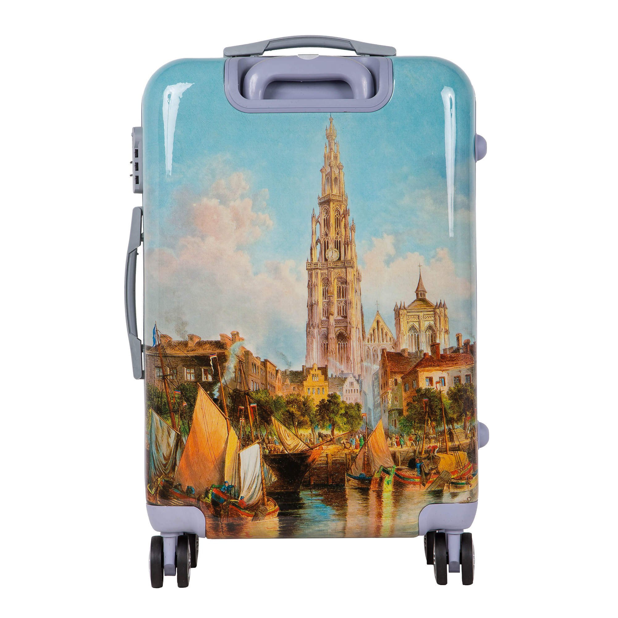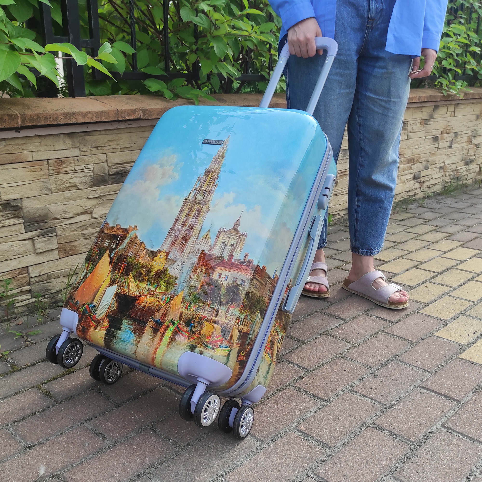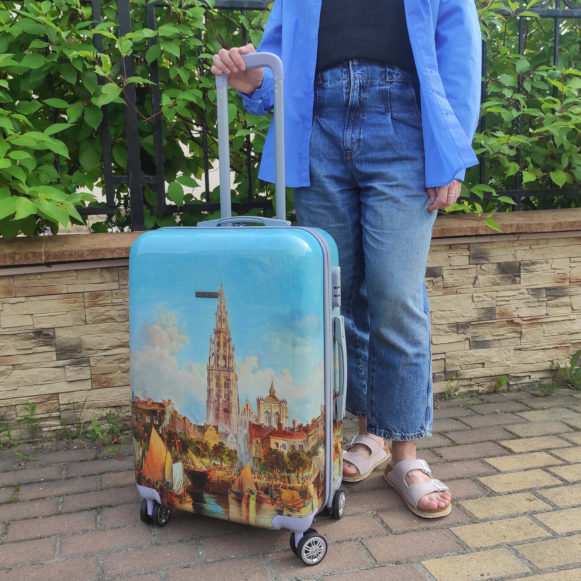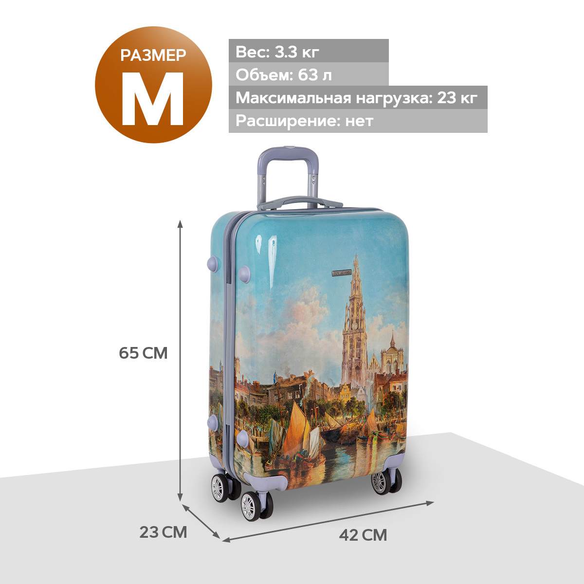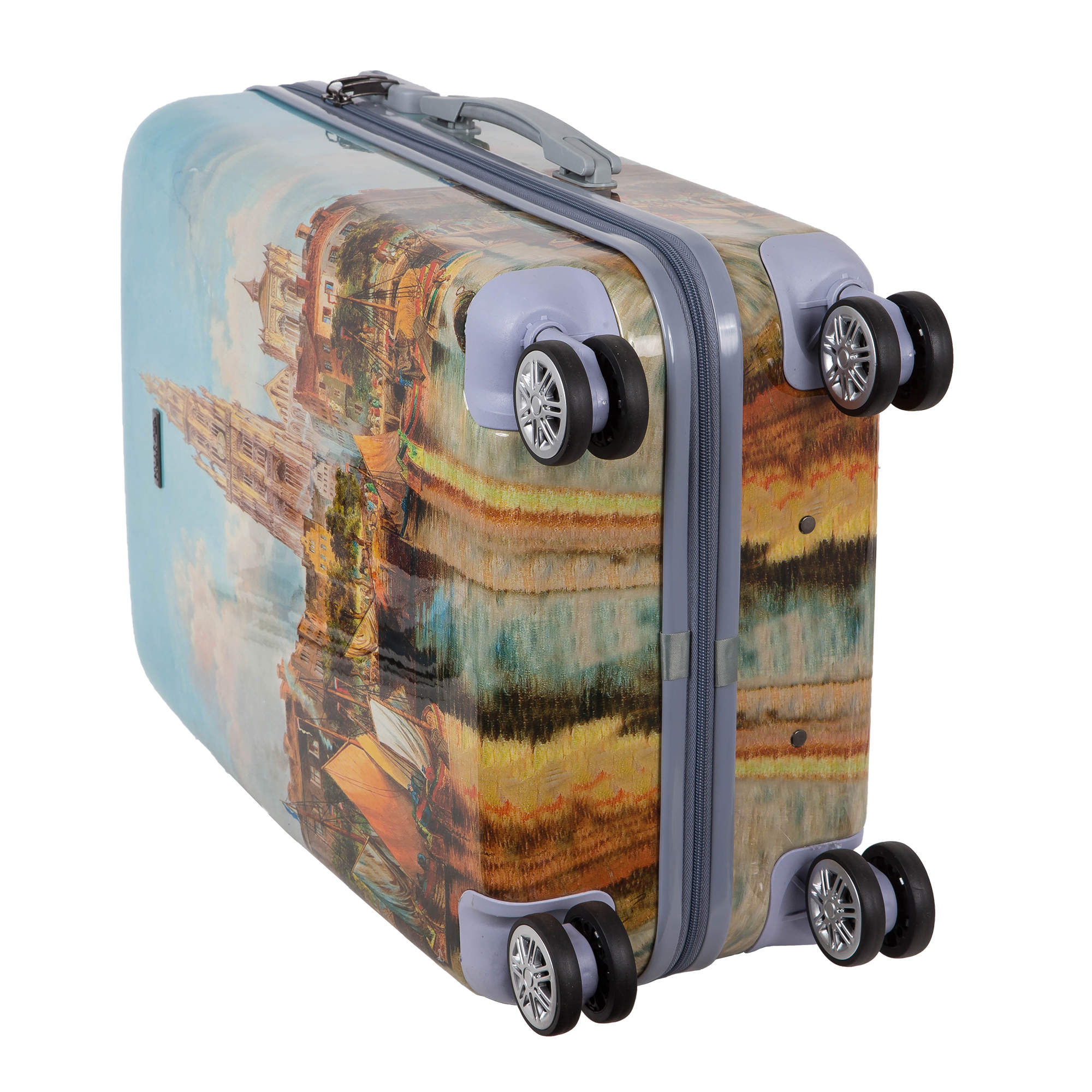 Чемодан фирмы POLAR, выполнен из ABS-пластика. Основное отделение разделено на две части. Одно имеет фиксирующие ремни, второе на молнии. Выдвигающаяся ручка расположена внутри корпуса чемодана, что способствует большей прочности и защите от ударов при разгрузке/погрузке чемодана. Выдвигающаяся ручка фиксируется в двух положениях. Есть кодовый замок. Надежные 4 колеса диаметром 4.8 см.