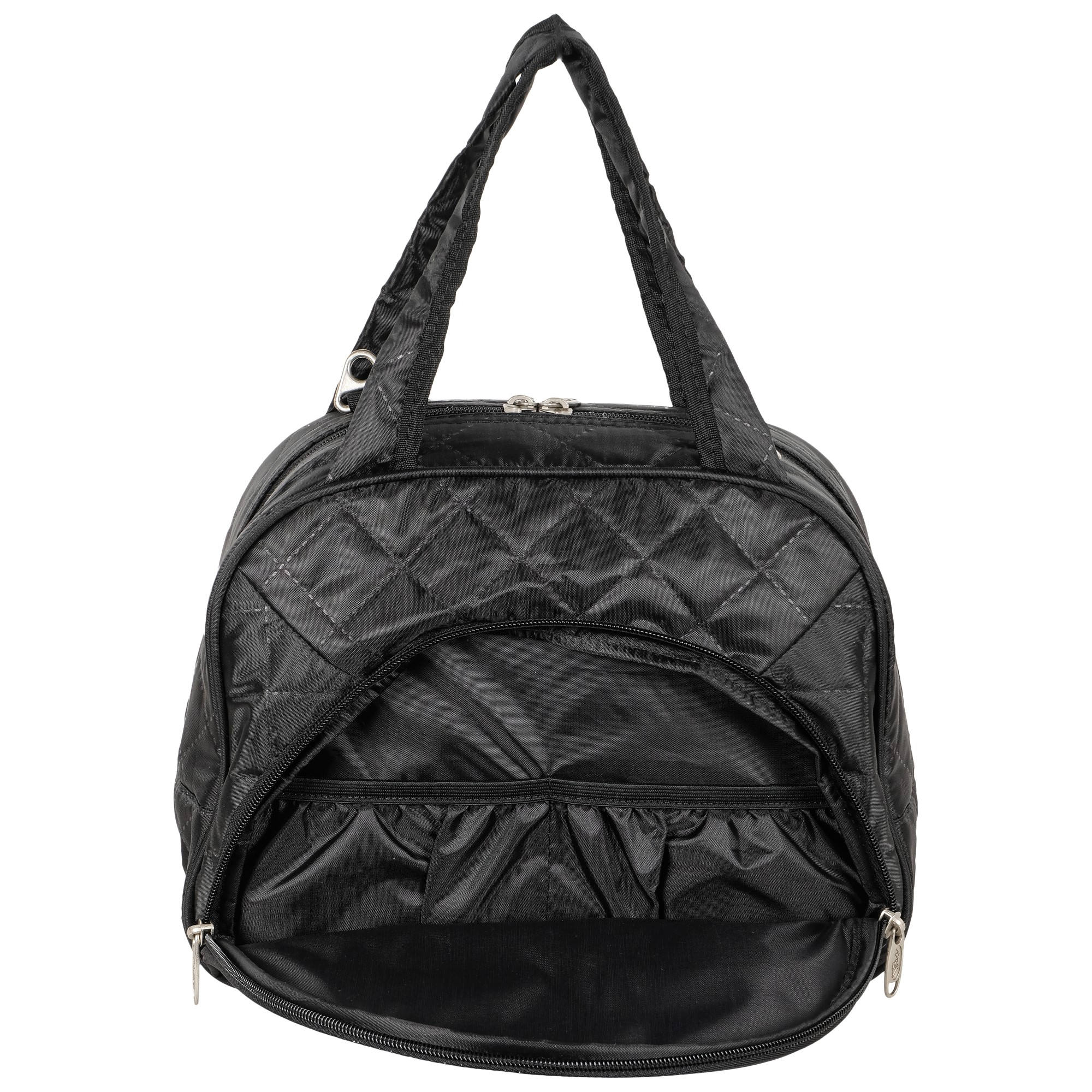 На задней стенке сумки предусмотрено крепление на ручку чемодана.
