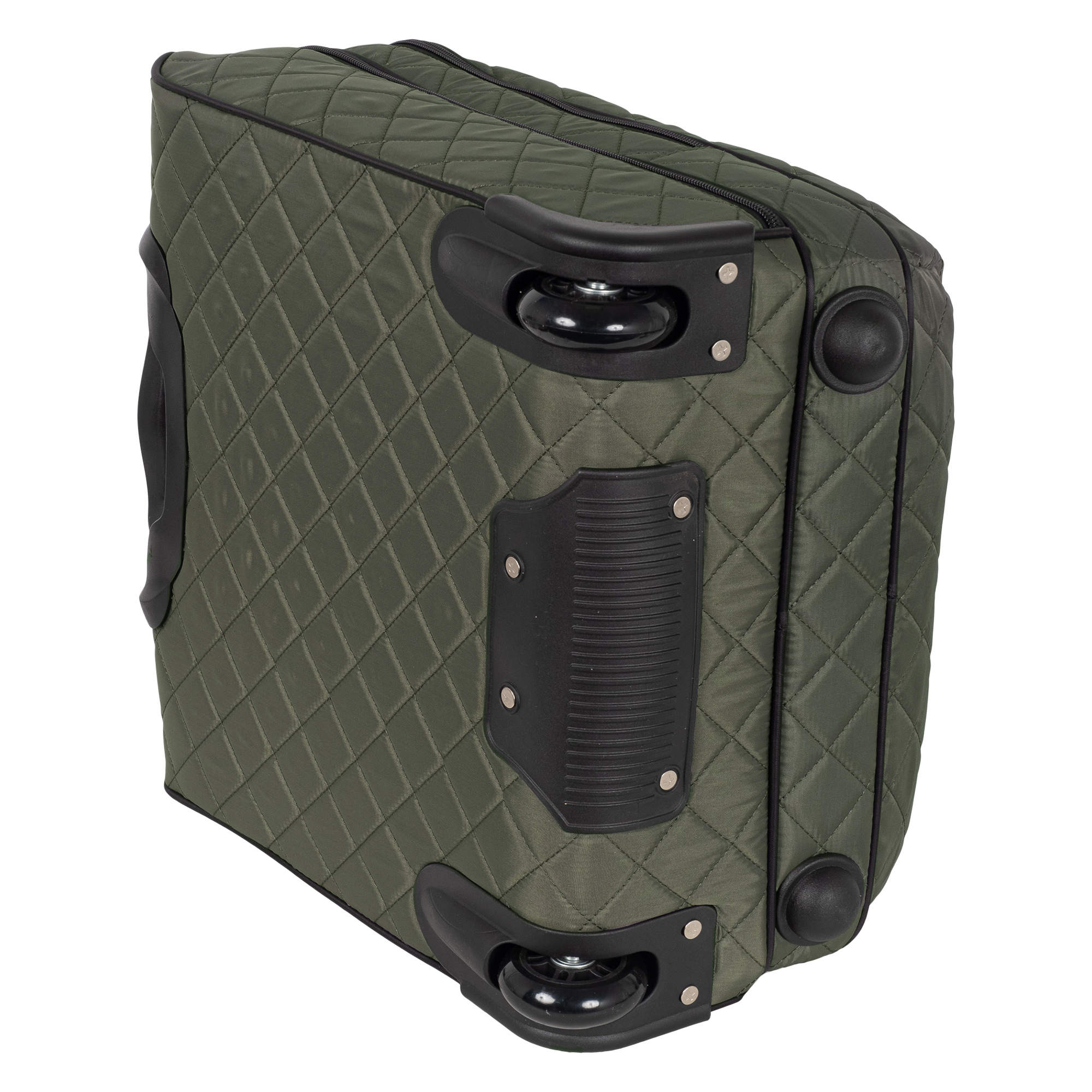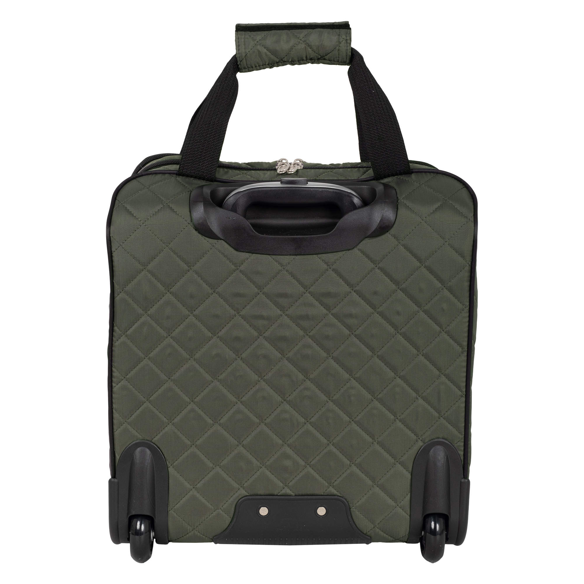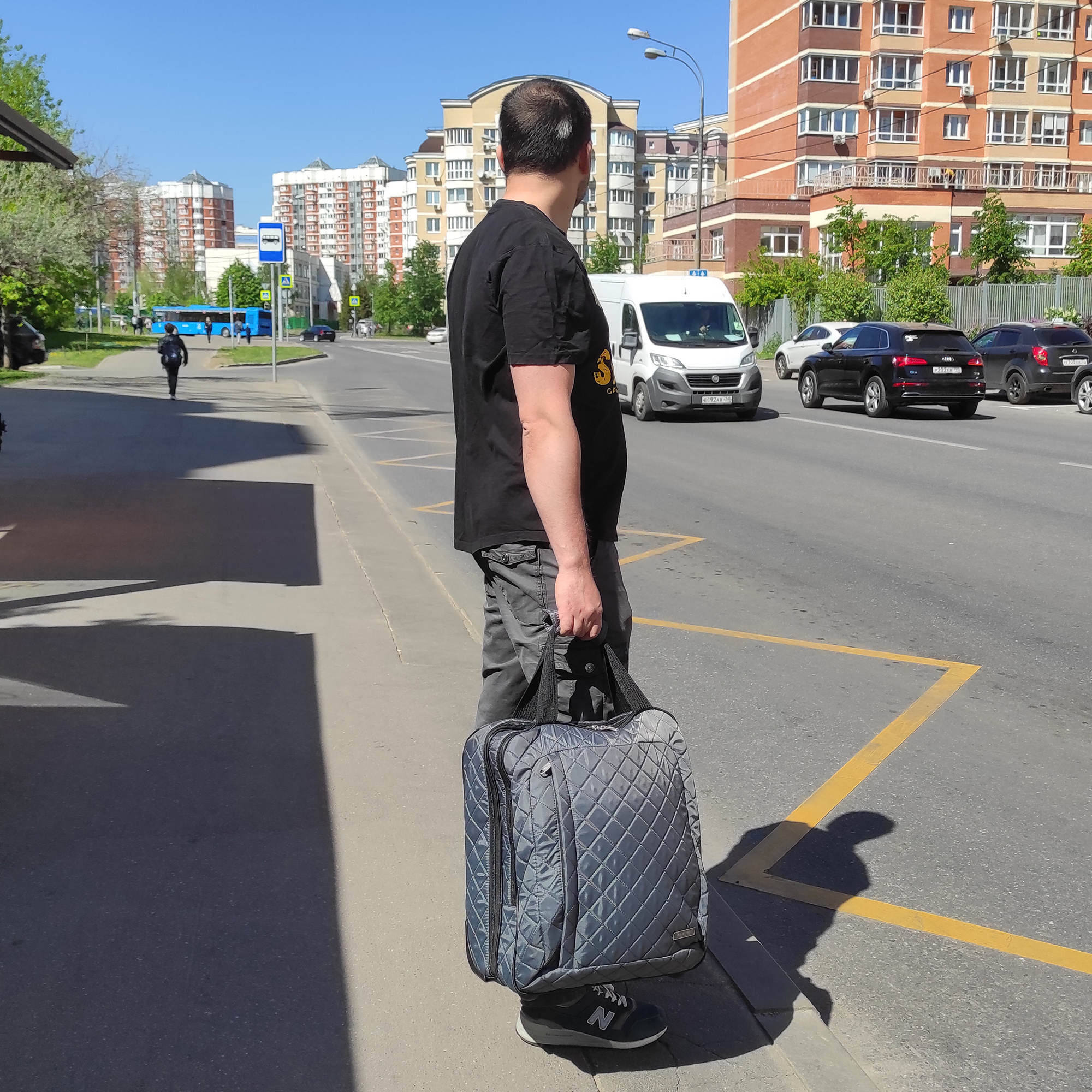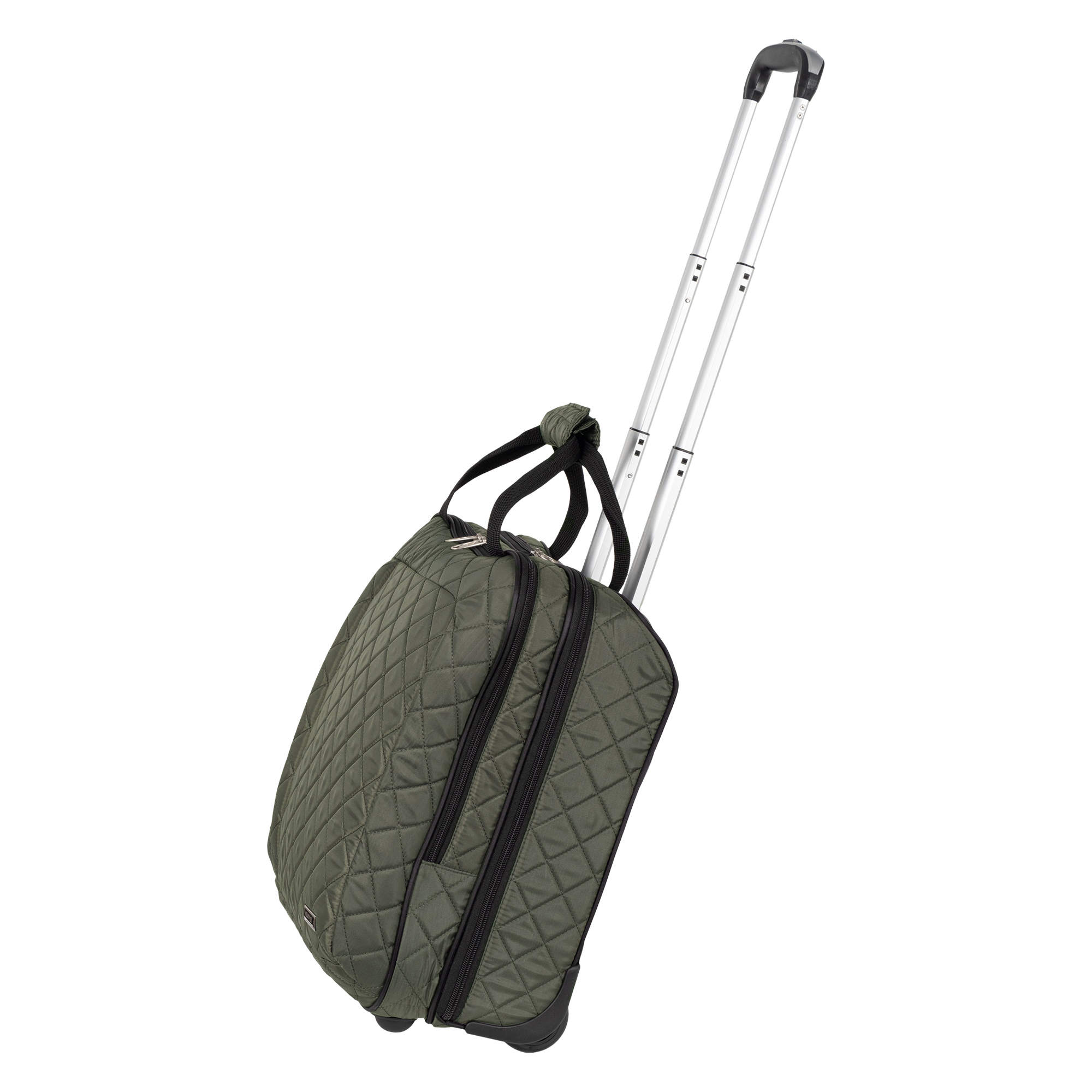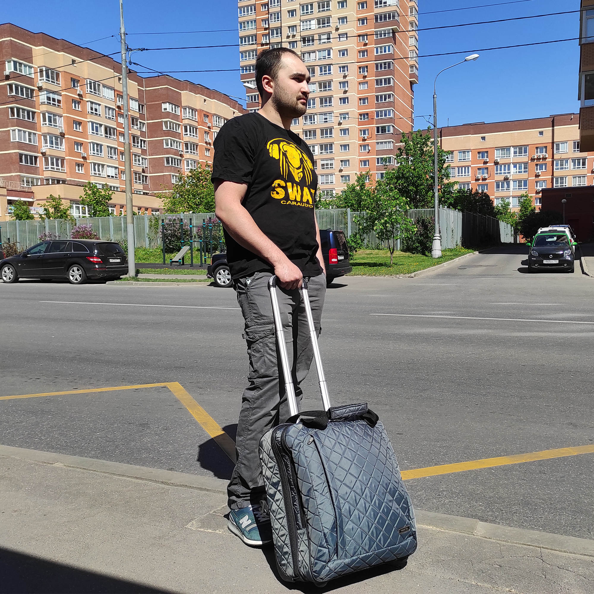 Колеса прорезиненные, дно дополнительно защищено от истирания. Сумка устойчиво стоит на ножках. Модель подходит под требования для ручной клади в большинство авиакомпаний.