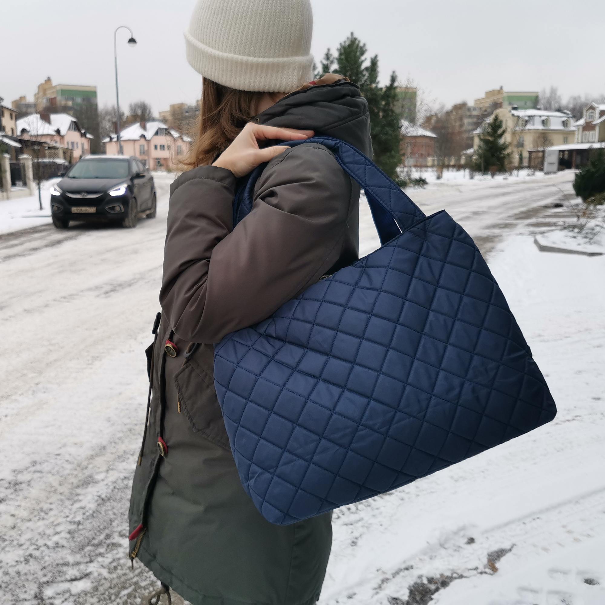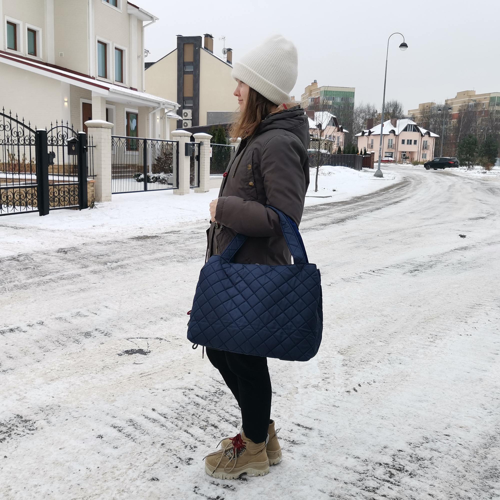 Сумка выполнена из стеганного текстиля красивых расцветок и имеет водоотталкивающую пропитку. Модель отлично держит форму, ткань устойчива к загрязнениям и при необходимости легко чистится.