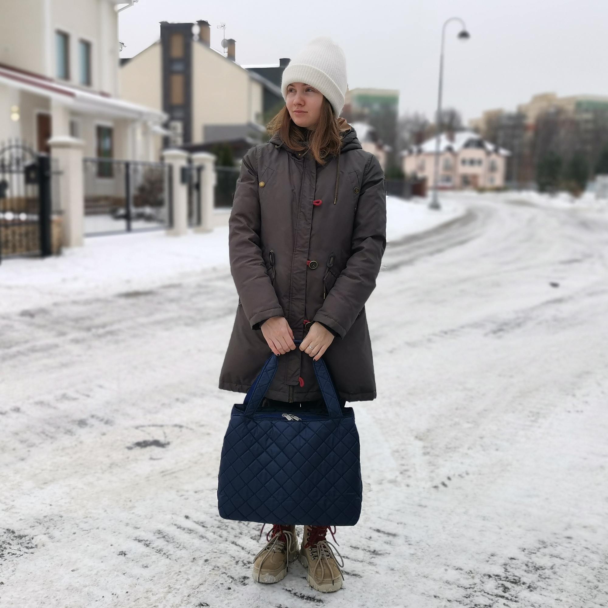 Сумка очень легкая, ее вес всего 400 грамм, очень качественно сшита, все швы ровные, на плотной подкладке. Сумка выдерживает вес до 10 кг.