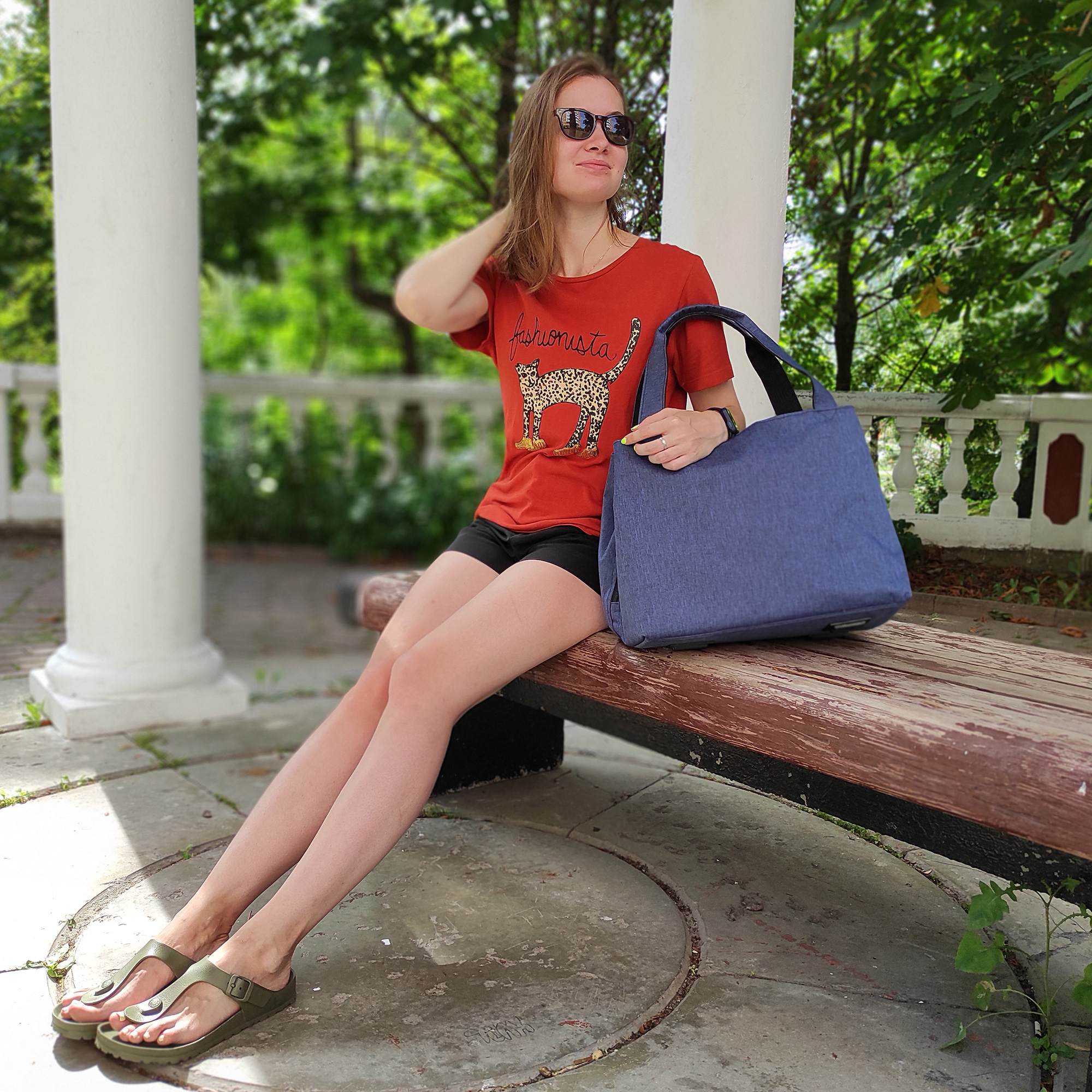 Сумка очень легкая, ее вес всего 400 грамм, очень качественно сшита, все швы ровные, на плотной подкладке. Сумка выдерживает вес до 10 кг.