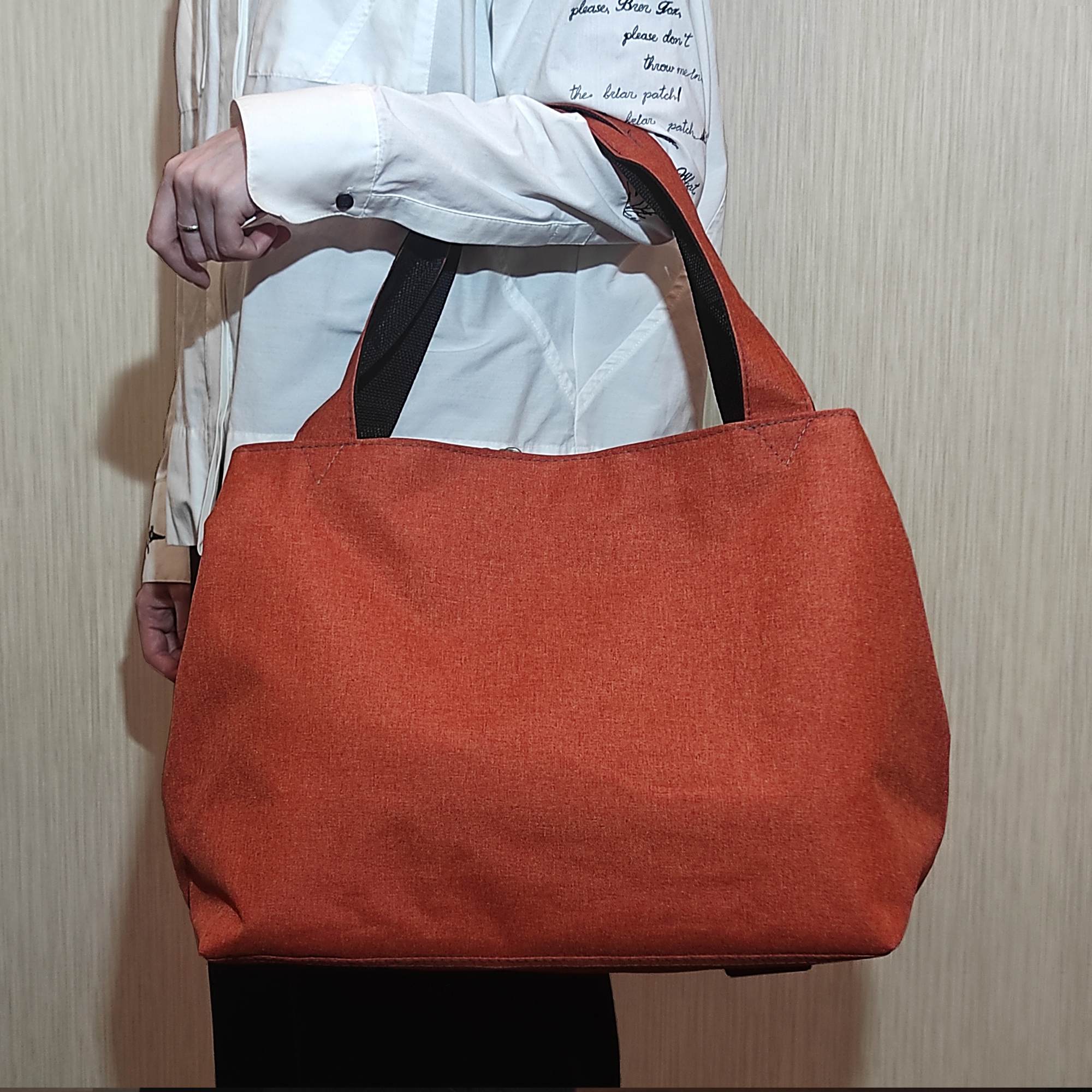 Сумку очень удобно носить в руке, а при желании накинуть на плечо. Ручки мягкие, высота ручек 26 см.