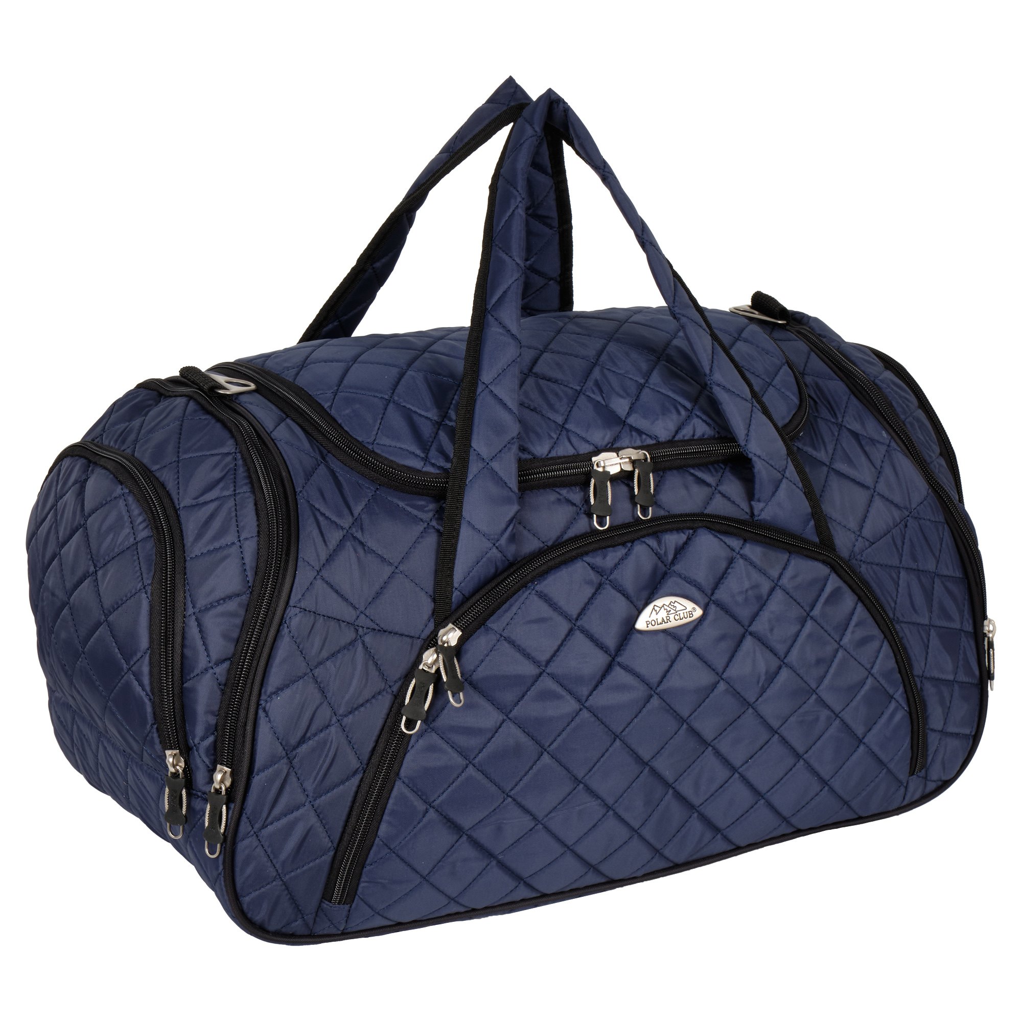 Вместительная и удобная дорожная сумка Polar . Материал - Стеганый Полиэстер с подложкой синтепона.Основное отделение закрывается на молнию. Один из боковых карманов предназначен для обуви. Дополнительно снаружи большой карман на молнии спереди сумки и небольшие карманы по бокам. Сумка имеет мягкую конструкцию. В комплекте регулируемый съемный плечевой ремень.