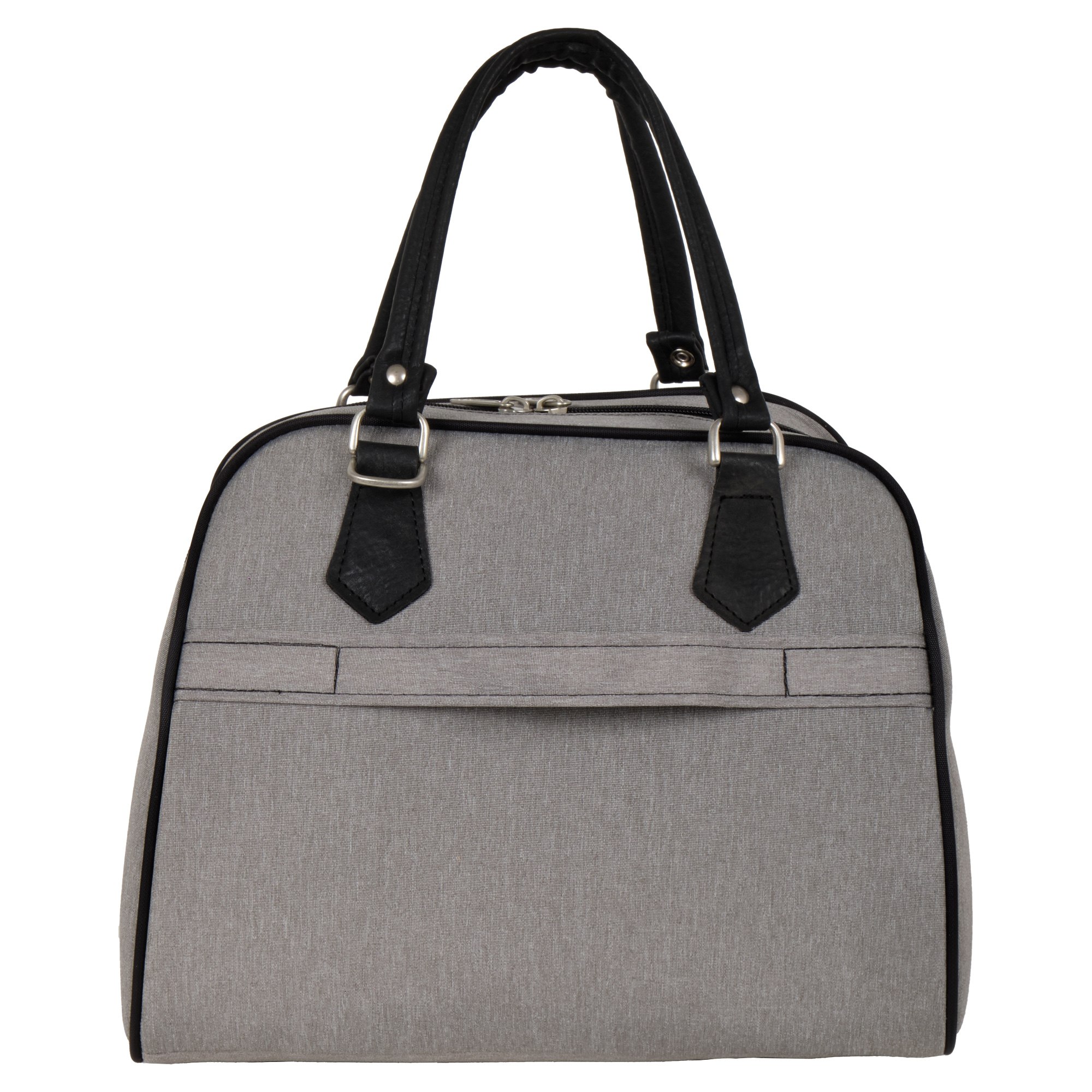На задней стенке сумки предусмотрено крепление на ручку чемодана, но если вы застегнете молнию, то получите дополнительный карман.