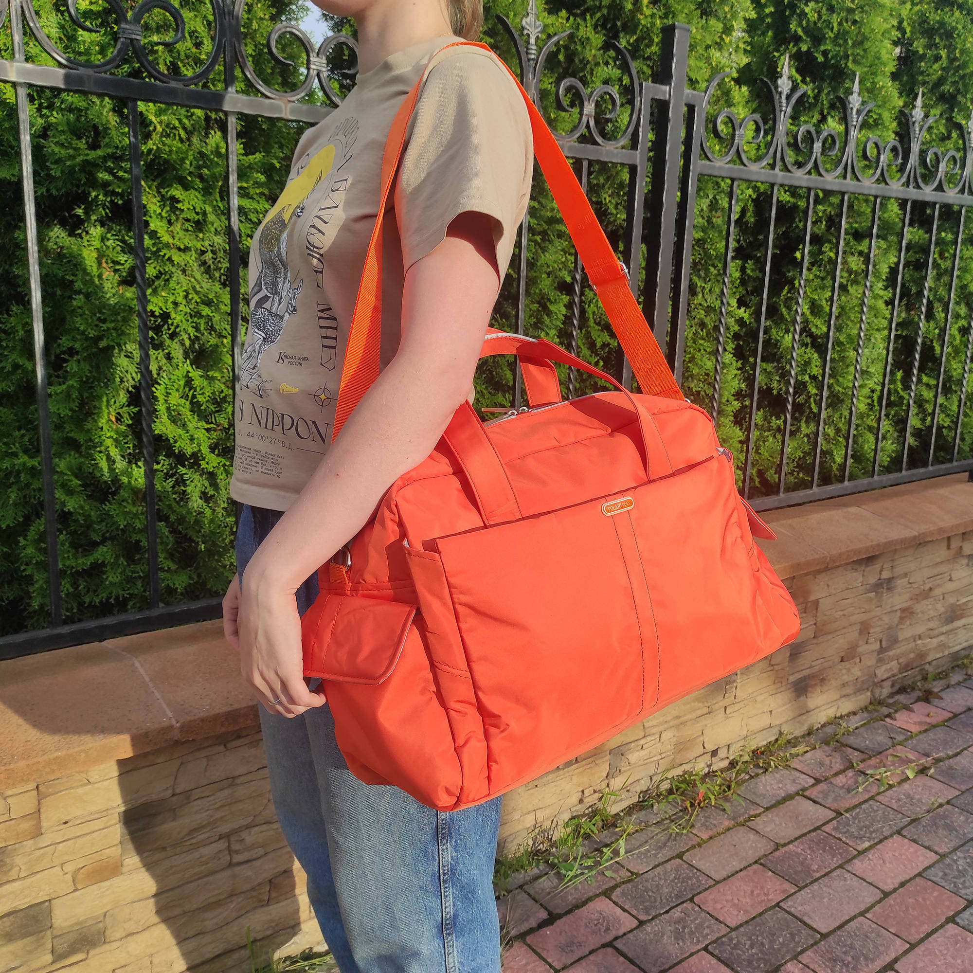 Спортивная сумка Polar из нейлона. Сумка универсальная для спорта. Одно большое отделение -внутри два открытых кармана для телефона и ключей также мелких принадлежностей. Карман из сетки. Два карман сбоку сумки. Два кармана на молнии спереди и сзади сумки. В комплект входит съемный плечевой ремень. Высота ручек 16 см.