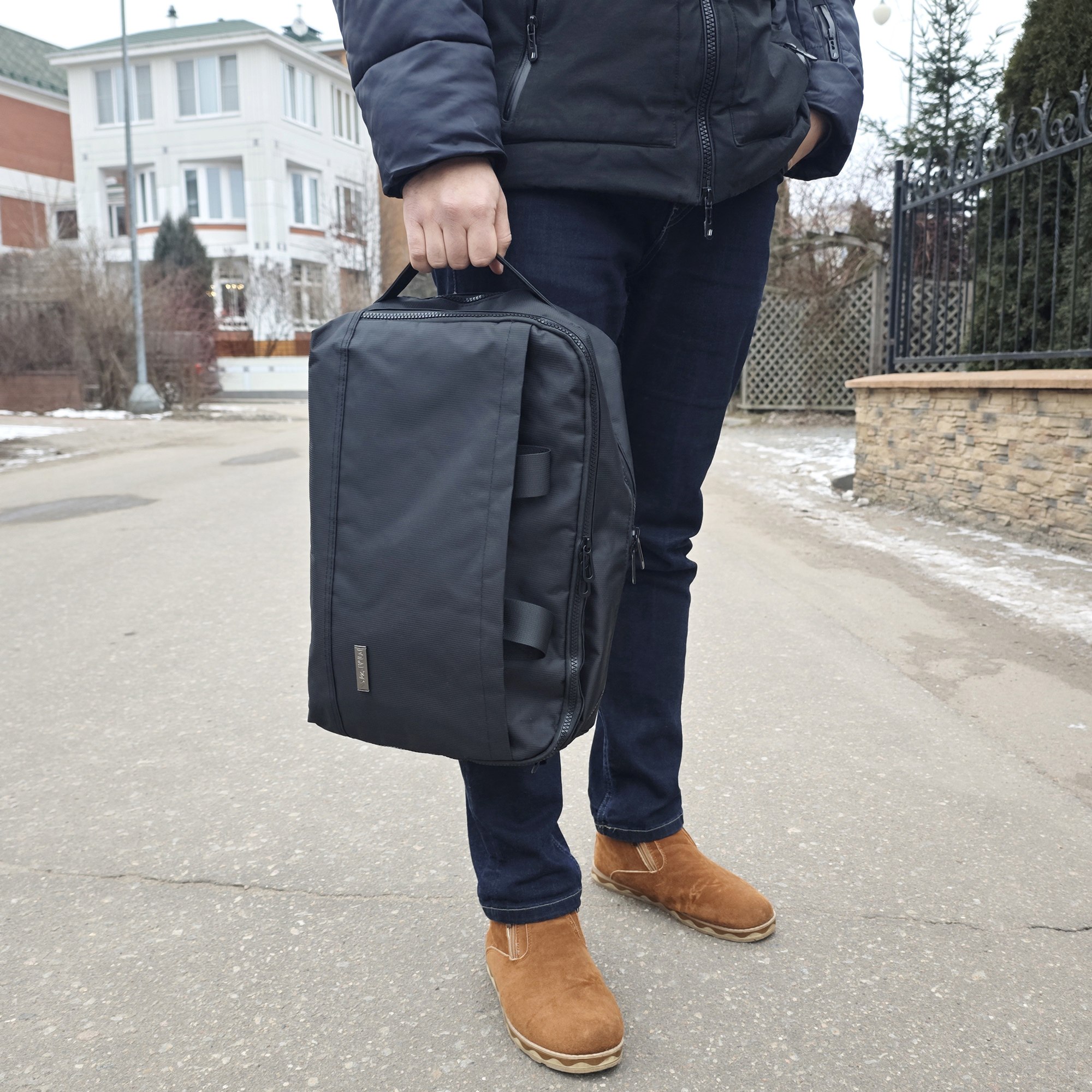 Cумка-рюкзак фирмы Polar ваш идеальный помощник для активной жизни. Она сочетает стильный дизайн, функциональность, которые подойдут для самых разных задач: от походов в спортзал и прогулок по городу до путешествий и рабочих поездок. 2 в 1: рюкзак и сумка через плечо. Удобная трансформация позволяет носить аксессуар так, как вам удобнее: на спине, длина лямок 90 см или через плечо длина ремня 130 см. Высота ручек 15 см. Боковой карман для бутылки с водой или зонтика. В него легко помещаются ноутбук диагональю 14,1, спортивная форма, или вещи для поездки. На задней стенке рюкзака предусмотрено крепление на ручку чемодана и потайной карман на молнии.