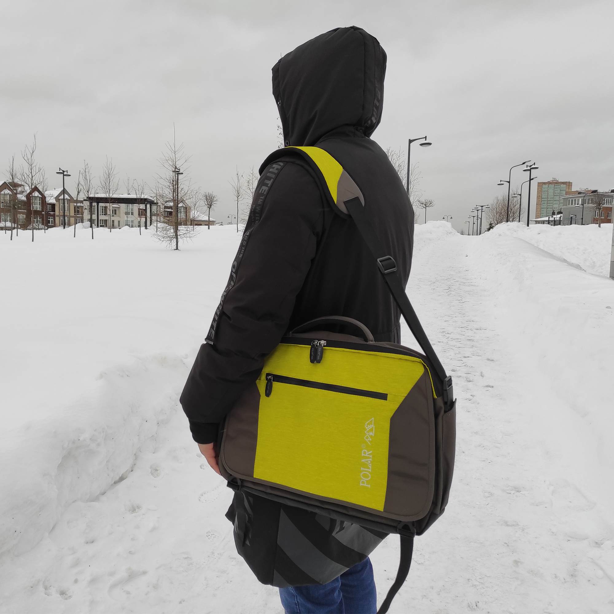 Планшет фирмы Polar. Основное отделение закрывается на молнию. Внутри - один карман на молнии. Специальное отделение для ноутбука до 15" дюймов и отделение для планшета. Спереди сумки имеются три кармана на молнии и дополнительно сверху закрываются клапаном, на клапане небольшой карман на молнии. Карман сзади сумки предусмотрен для фиксирования планшета на ручке чемодана. Имеется регулируемый плечевой ремень с удобным мягким наплечником.