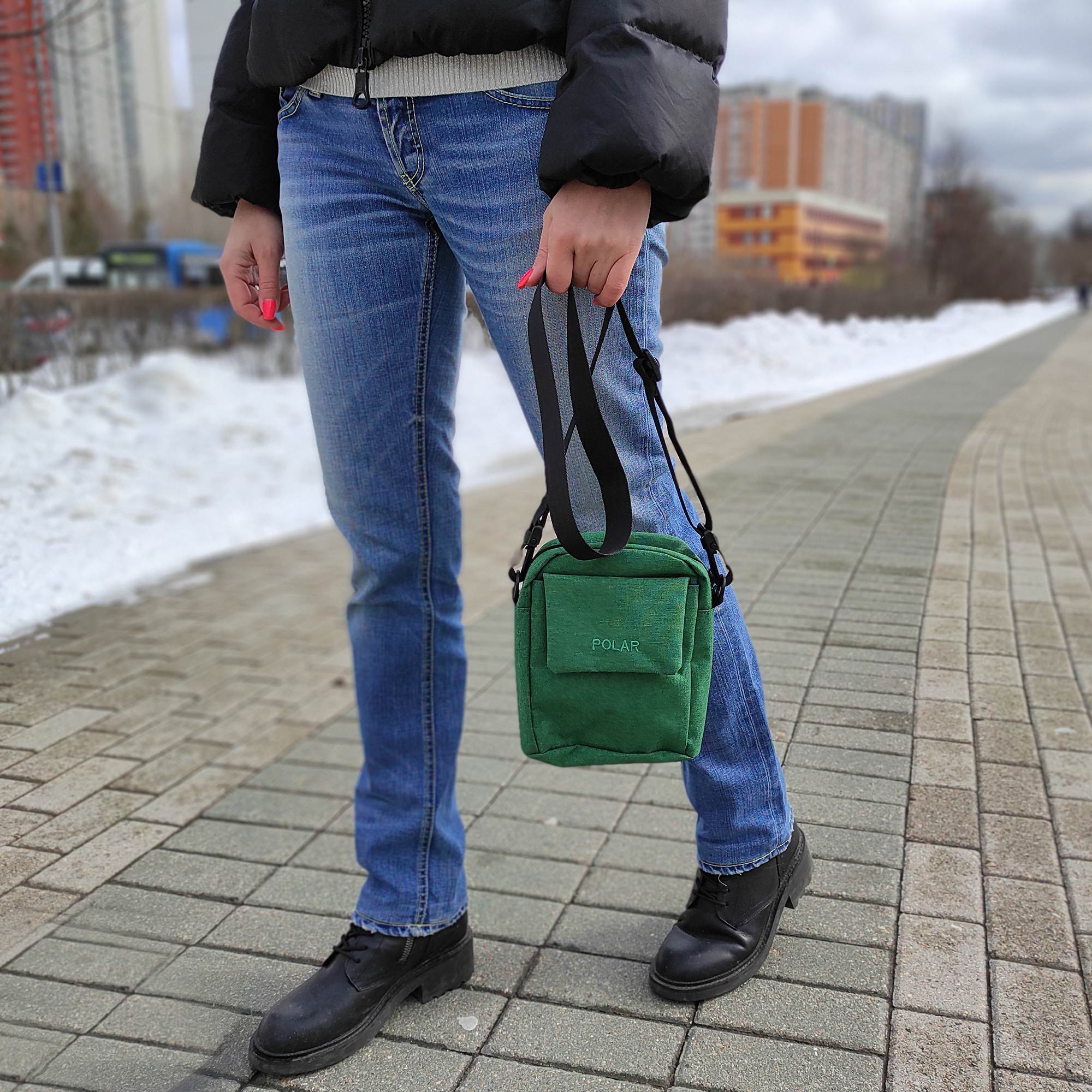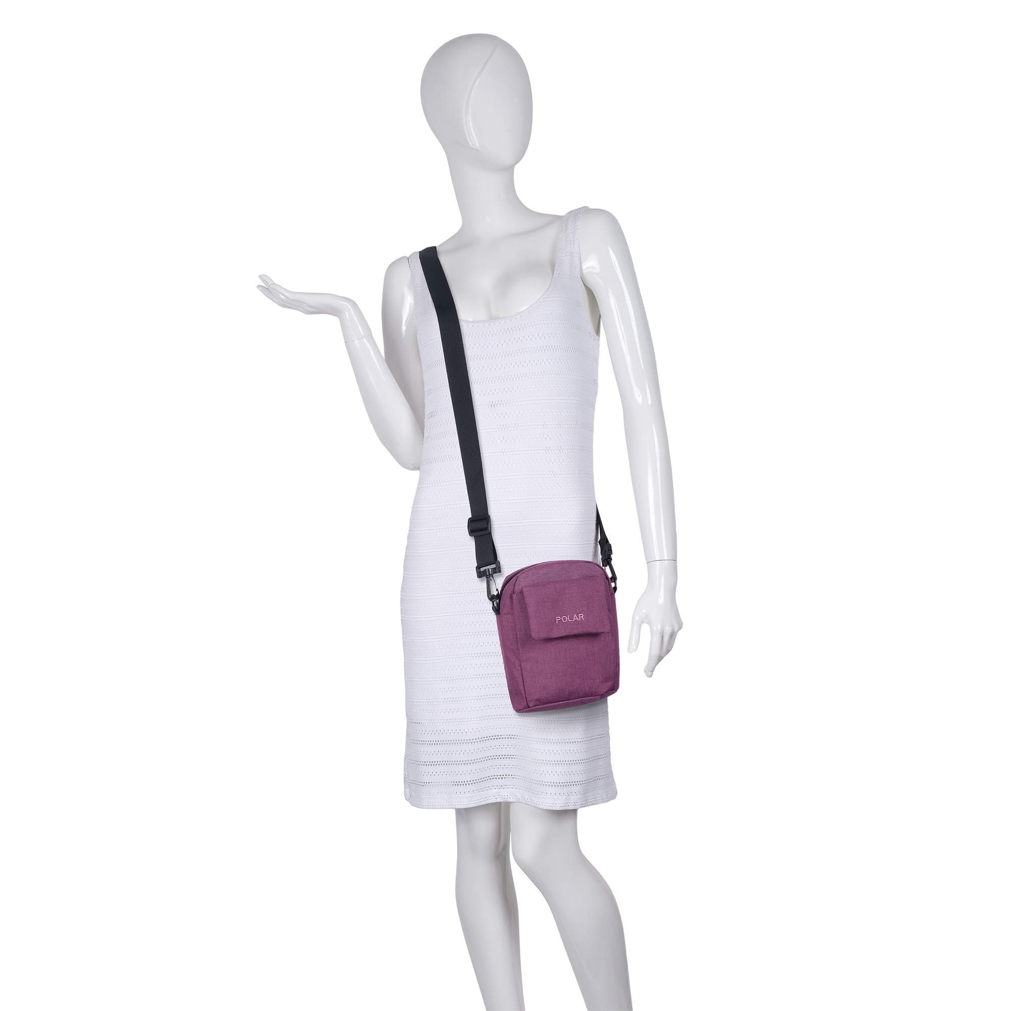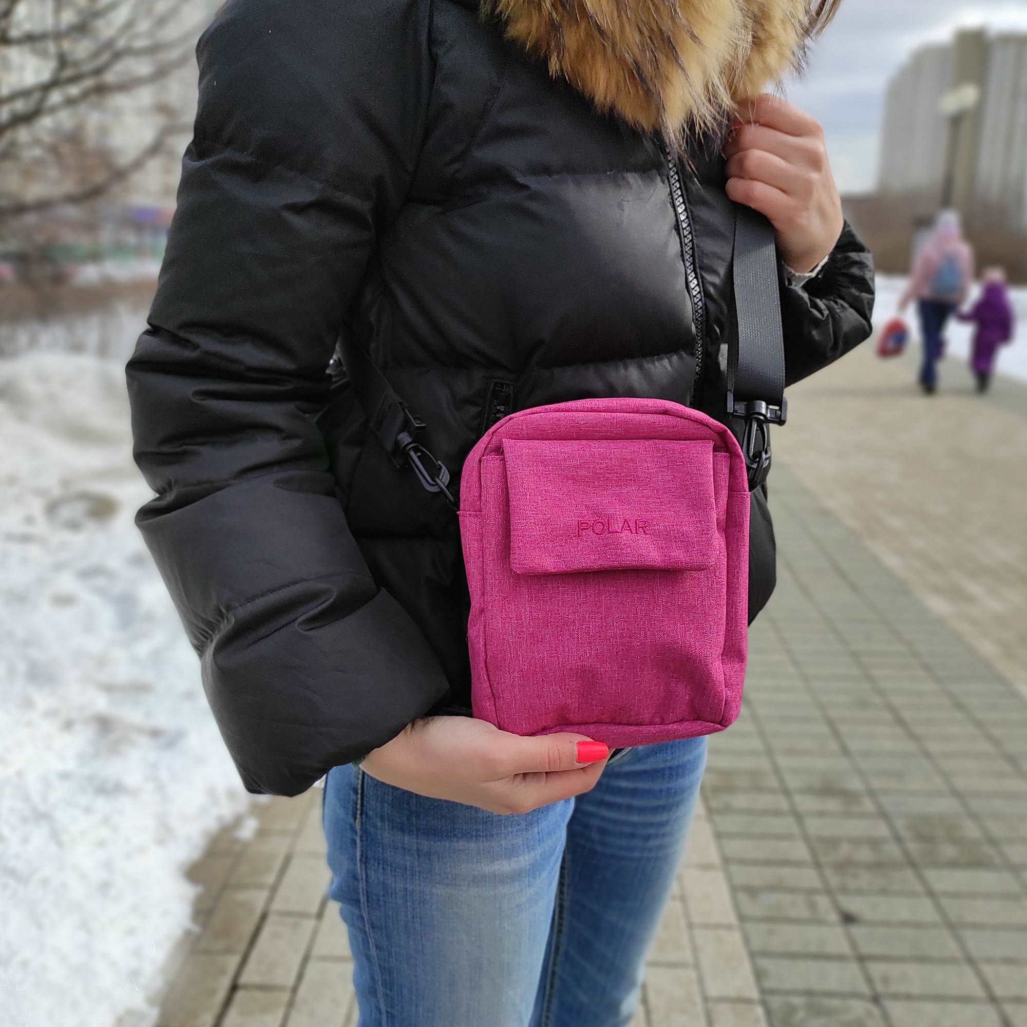 Сумка фирмы Polar изготовлена из полиэстера. Основное отделение закрывается на молнию. Впереди один кармана на металлической кнопке и один на молнии сзади сумки. Имеется плечевой регулируемый ремень, максимальная длина 133 см.