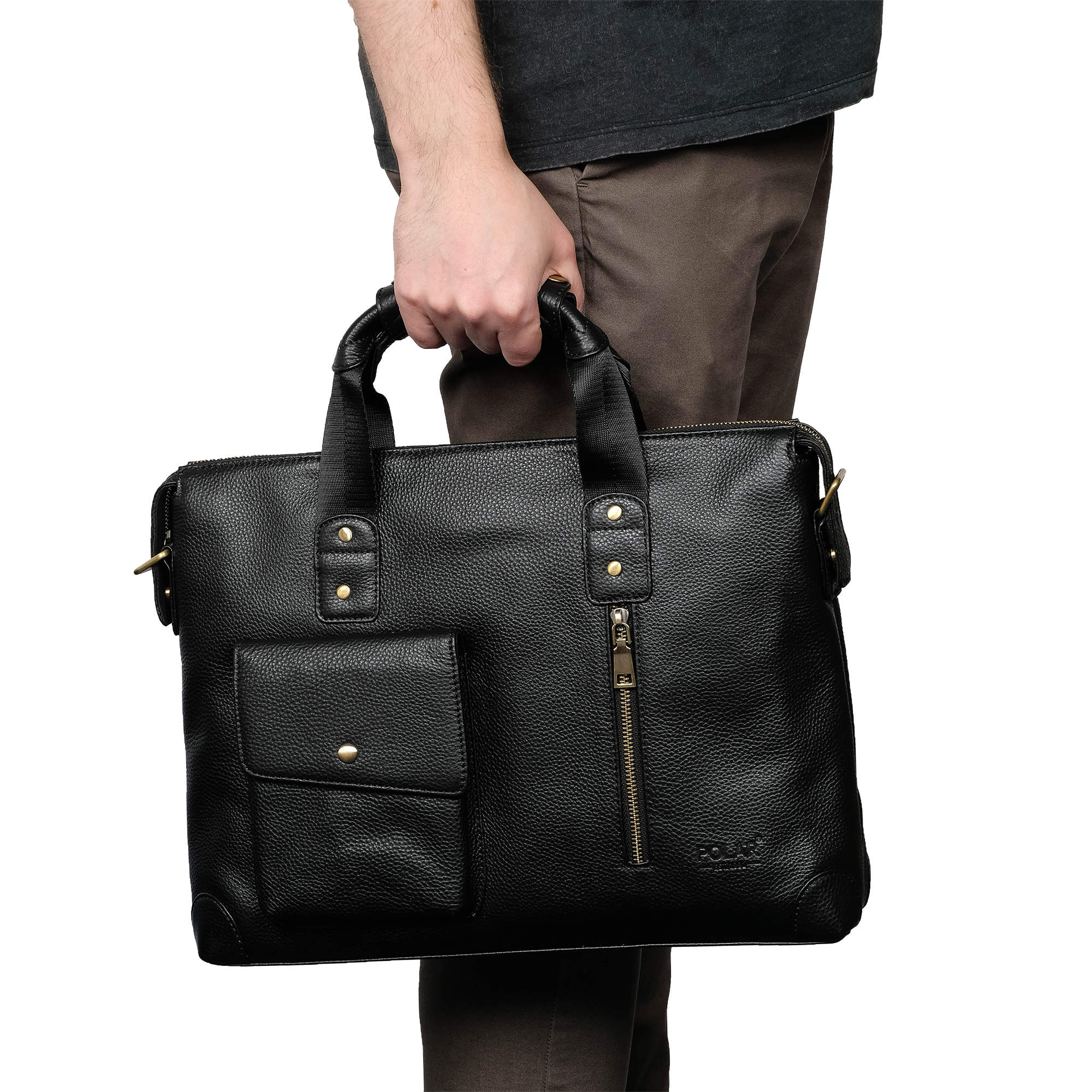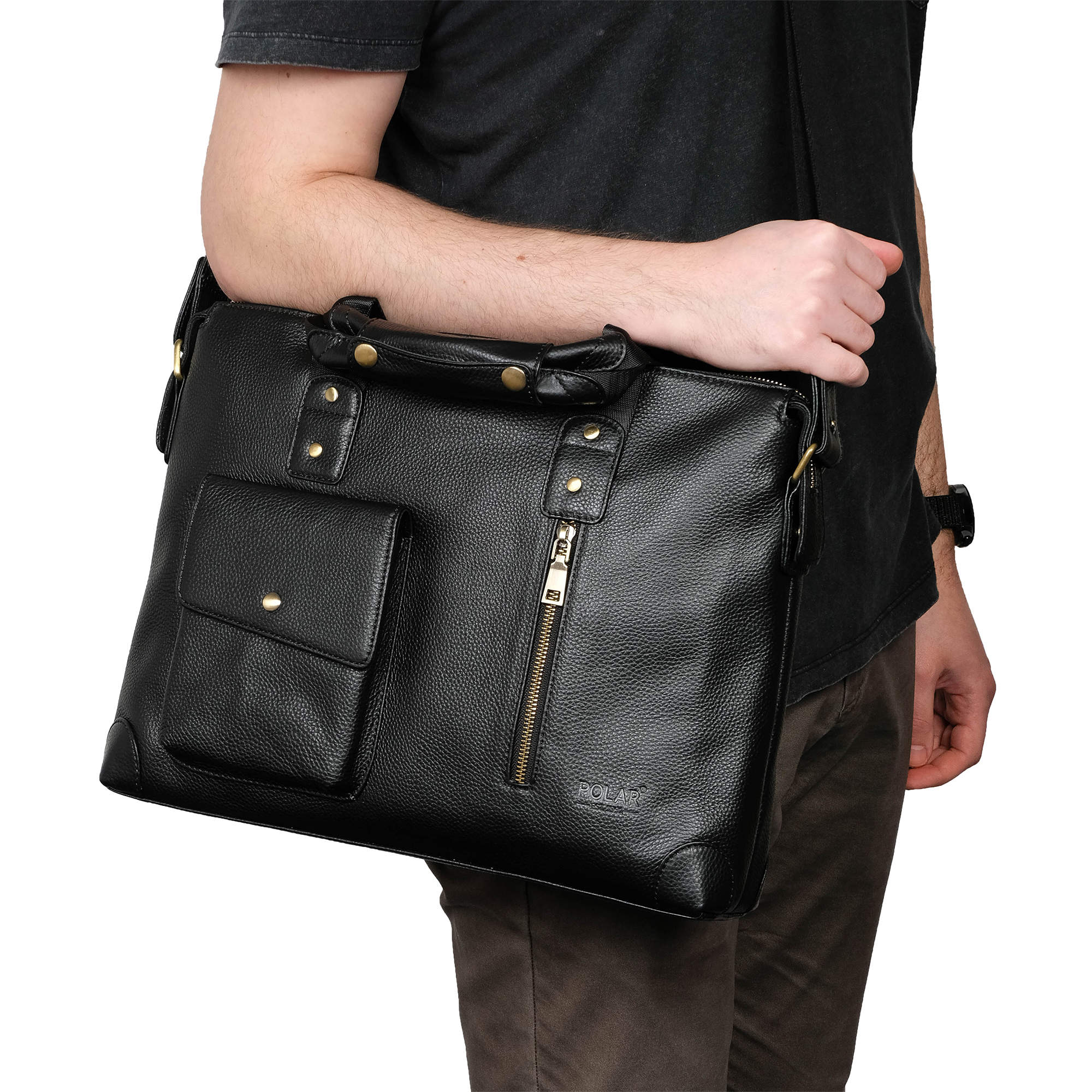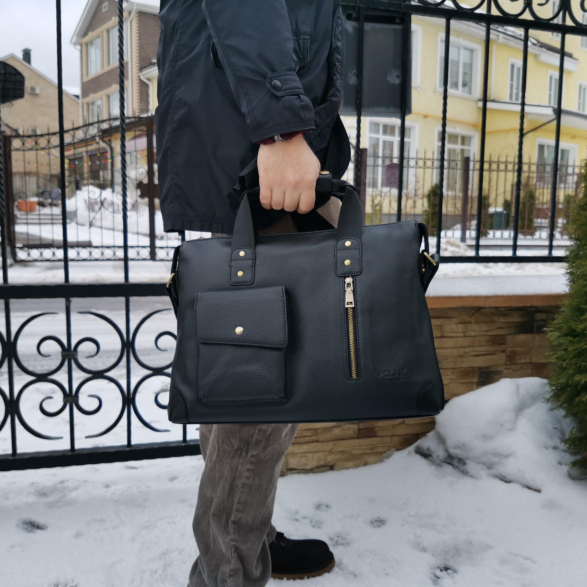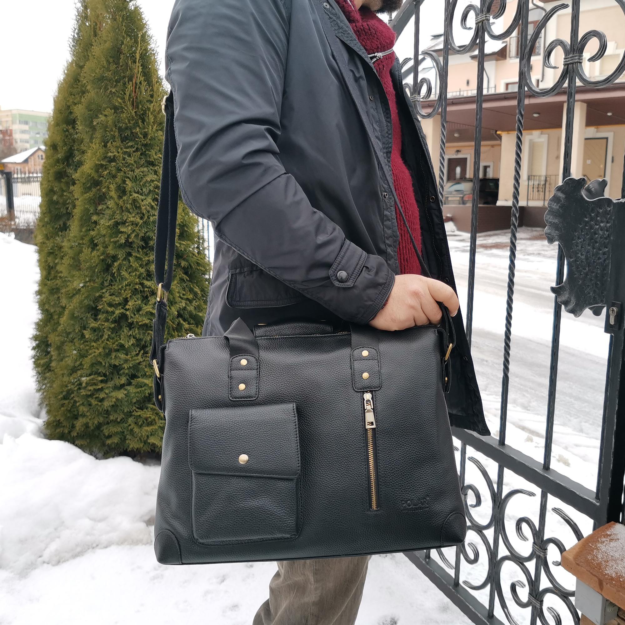 Сумка мужская Polar выполнена из натуральной кожи. Основное отделение закрывается на молнию. Внутри — отделение поделено на две части, карман на молнии и два открытых кармашка. Отделение под ноутбук диагональю 14 -15 дюймов. Снаружи — карман закрывается клапаном на магнитную кнопку и вертикальный карман на молнии. Карман на молнии сзади сумки. Съемный, удобный плечевой ремень, который регулируется по необходимой Вам длине 155см.
