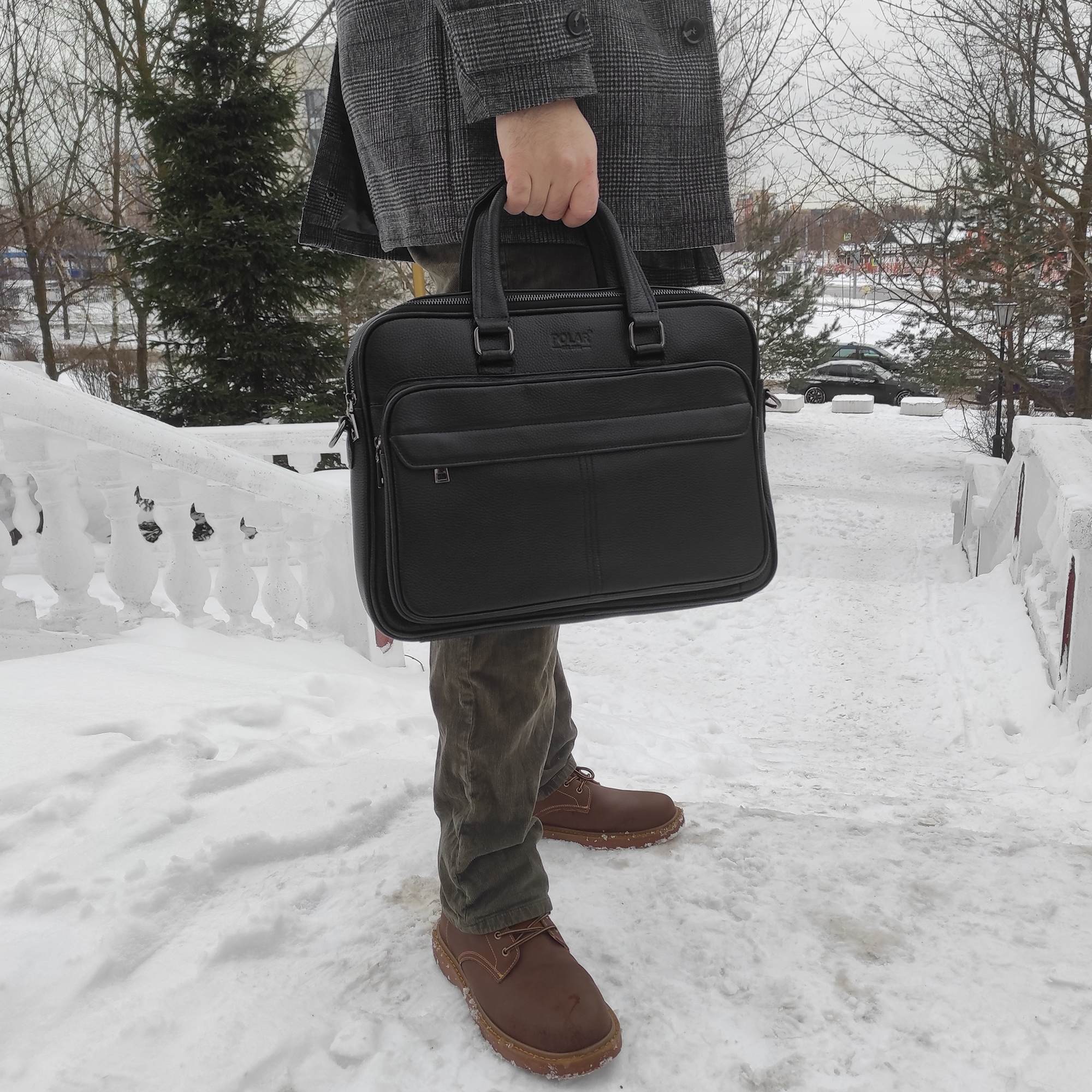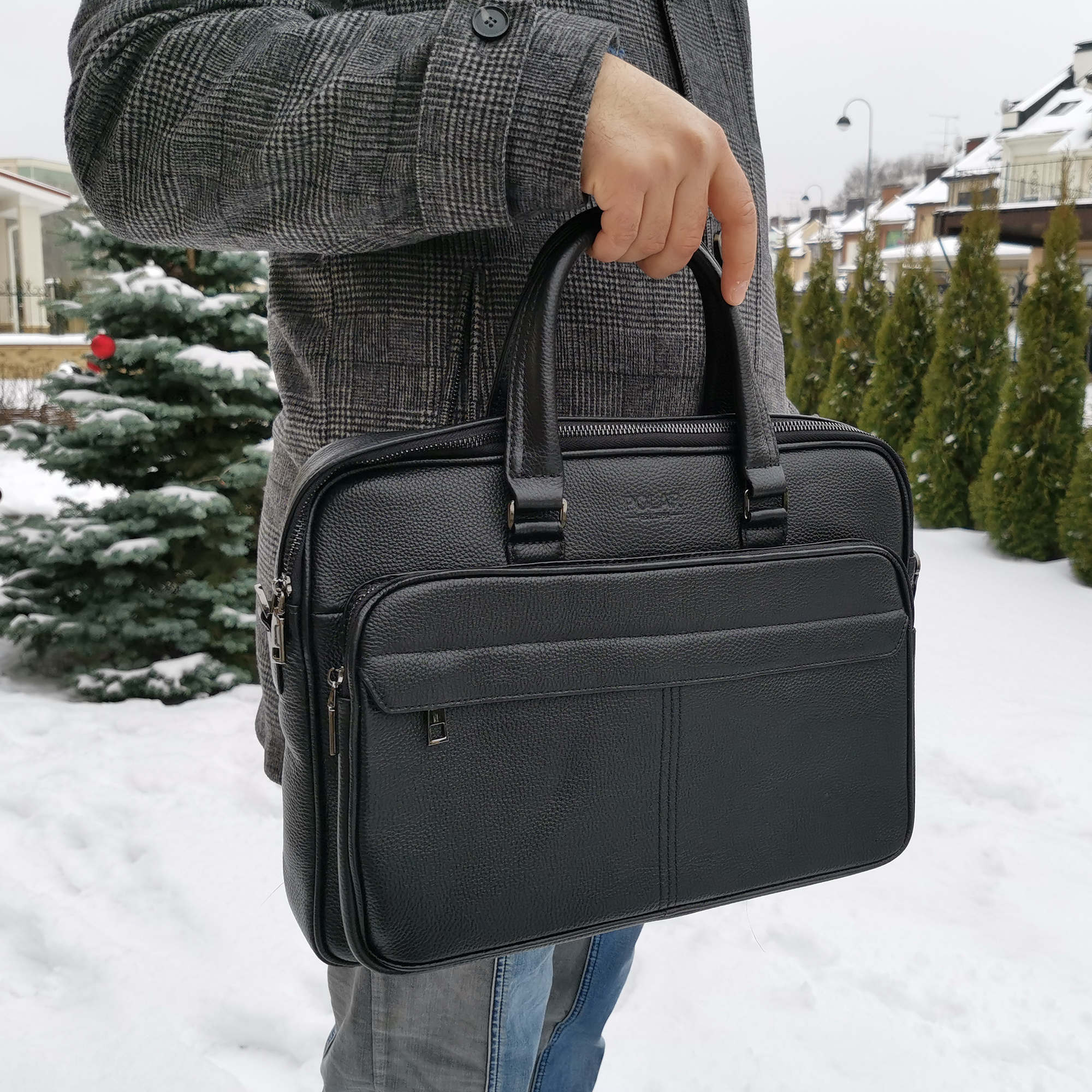 Мужской портфель фирмы Polar выполнен из натуральной кожи. Портфель имеет одно основное отделение, которое закрывается на металлическую молнию. Внутри есть отделение для электронных устройств или ноутбука с диагональю до 15” и открытый кармашек. Модель вмещает формат A4 . Спереди есть большой вместительный карман на молнии. Сзади сумки есть также карман на молнии. Высота ручек 15 см, в комплекте есть регулируемый наплечный ремень, максимальная длина 140 см.